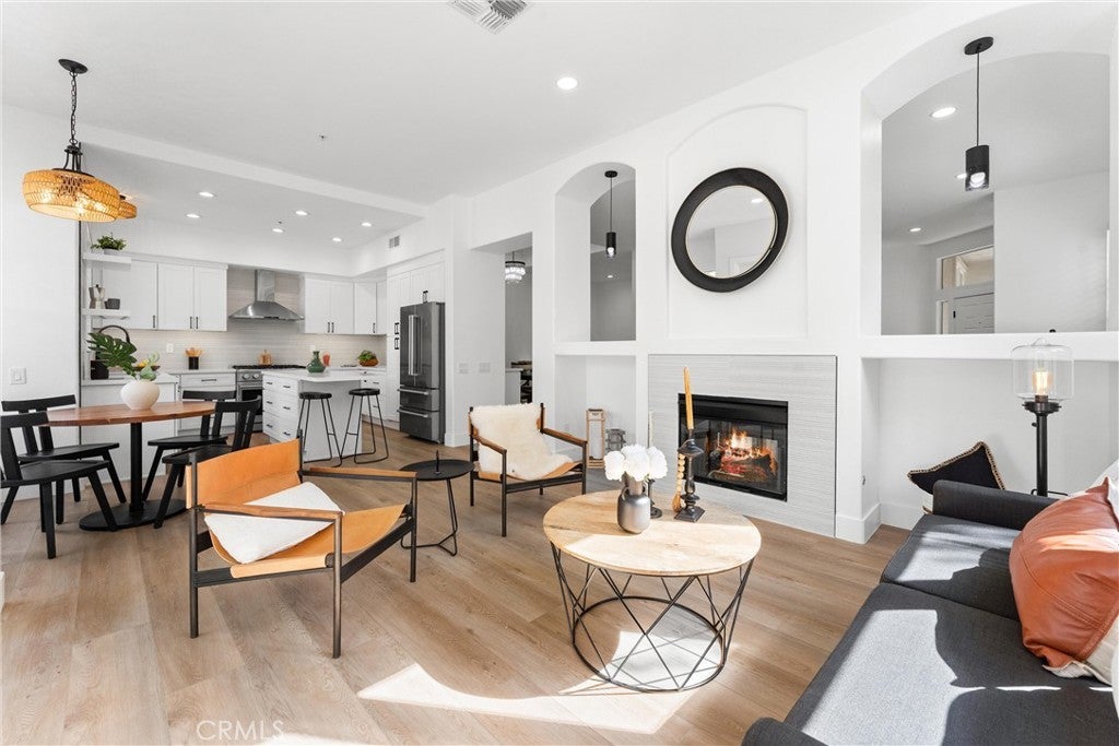 Prestigious End unit, luxury condo in the highly sought after gated community of Firenza. Fully updated from top to bottom with high end luxurious finishes. Open the door to soaring ceilings and bright open floor plan. Walk into the fully remodeled kitchen featuring All new Thor appliances. Enjoy the beautiful view out the kitchen and family room windows. This home has a bedroom and full bathroom on the main level or a convenient office if you prefer. Downstairs features two full suites. Primary bedroom has a gorgeous fireplace, two huge walk in closets and luxurious bath with large shower and soaking tub. Primary bedroom has French doors that open up to a large private gorgeous patio. Home is close to Anaheim hills golf course, oak canyon nature center, award blue ribbon schools. It is a pool, spa community.