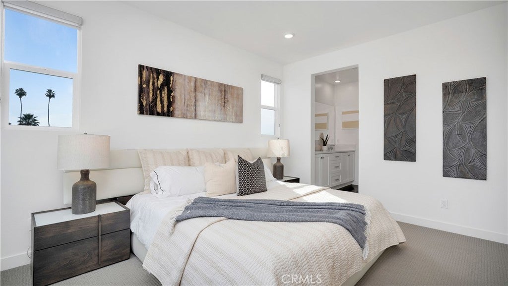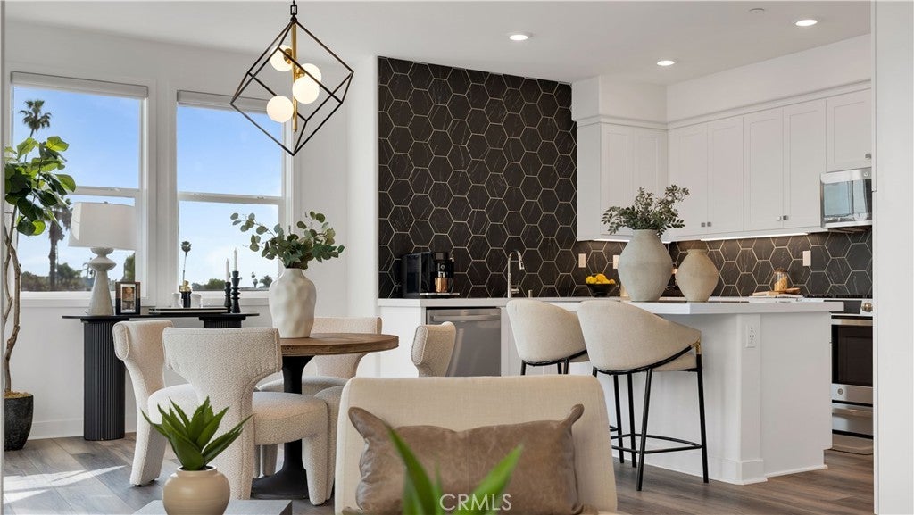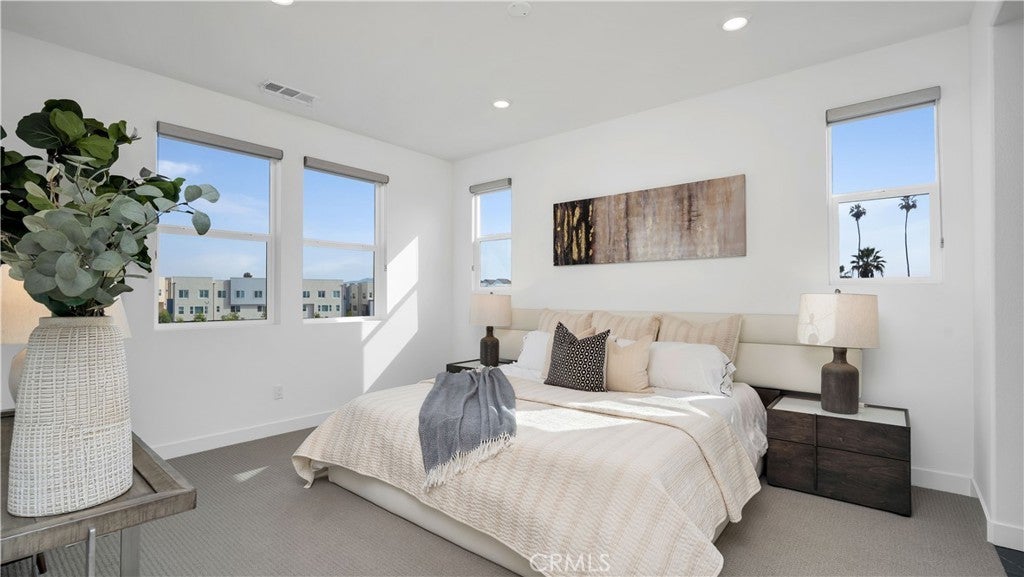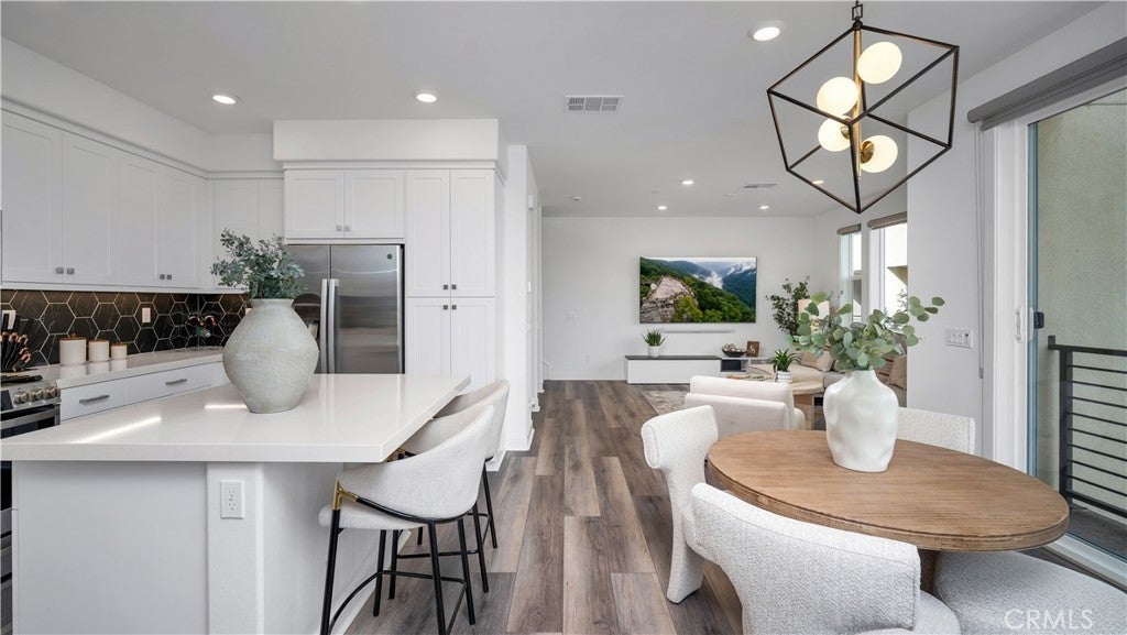 Welcome to 1669 W Lincoln Ave, a pristine tri-level condo built in 2024 and barely lived in, offering a modern, turnkey lifestyle in Anaheim’s highly desirable Emerald Pointe community. Designed for today’s discerning buyer, this home blends contemporary style with functional living. The second floor serves as the main living area and features an open-concept floor plan flooded with natural light through large windows, creating a bright, airy, and inviting atmosphere. The chef’s kitchen is a true centerpiece, boasting quartz countertops, stainless steel appliances, a large eat-in island, black custom backsplash, and chic pendant lighting. Step out from the dining area onto your private balcony ideal for morning coffee, evening relaxation, or entertaining guests. Upstairs, the luxurious primary suite offers a spa-inspired walk-in shower, dual vanities, and generous closet space, creating a serene retreat. The second bedroom enjoys its own private bathroom, perfect for guests or roommates. Premium luxury vinyl flooring flows throughout the main areas, while plush carpeting adds warmth and comfort to the bedrooms and stairs. Additional features include an attached two-car garage and the peace of mind that comes with living in a gated community. Residents enjoy resort-style amenities including a sparkling pool, spa, and beautifully landscaped green spaces, providing the perfect balance of relaxation and recreation. Conveniently located, this home is just minutes from Disneyland, Angel Stadium, the Honda Center, and major freeways, making travel across Orange County effortless. Trendy dining, shopping, and entertainment options are just moments away, giving you the vibrant lifestyle you crave. 1669 W Lincoln Ave offers modern, stylish living with resort-like amenities and an unbeatable location. With its light-filled spaces, high-end finishes, and thoughtful design, this home is a rare opportunity to enjoy comfort, luxury, and convenience all in one.