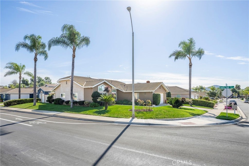 Spacious Single Story in the desirable Escondido Country Club neighborhood. Located on a corner lot whith scenic hill views from the front. Home features an open floor plan with 3 bedrooms and 2 baths, feels larger than its 1875 sq. ft. Light and bright with vaulte ceilings and a Skylight. Kitchen with granite, stainless steel appliances, pantry and gas range is open to the family room. Vaulted ceilings in the family room, living room and primary bedroom. Fireplace in the living room. Formal dining room. Primary bedroom has spacious walk-in closet. Primary bath has dual sinks and separate tub and shower. Inside Laundry room with electric or gas hook-ups and laundy sink. Private backyard with room for children to play. Home is spacious and clean. 2 Car attached garage with direct access. No HOA or CC&R