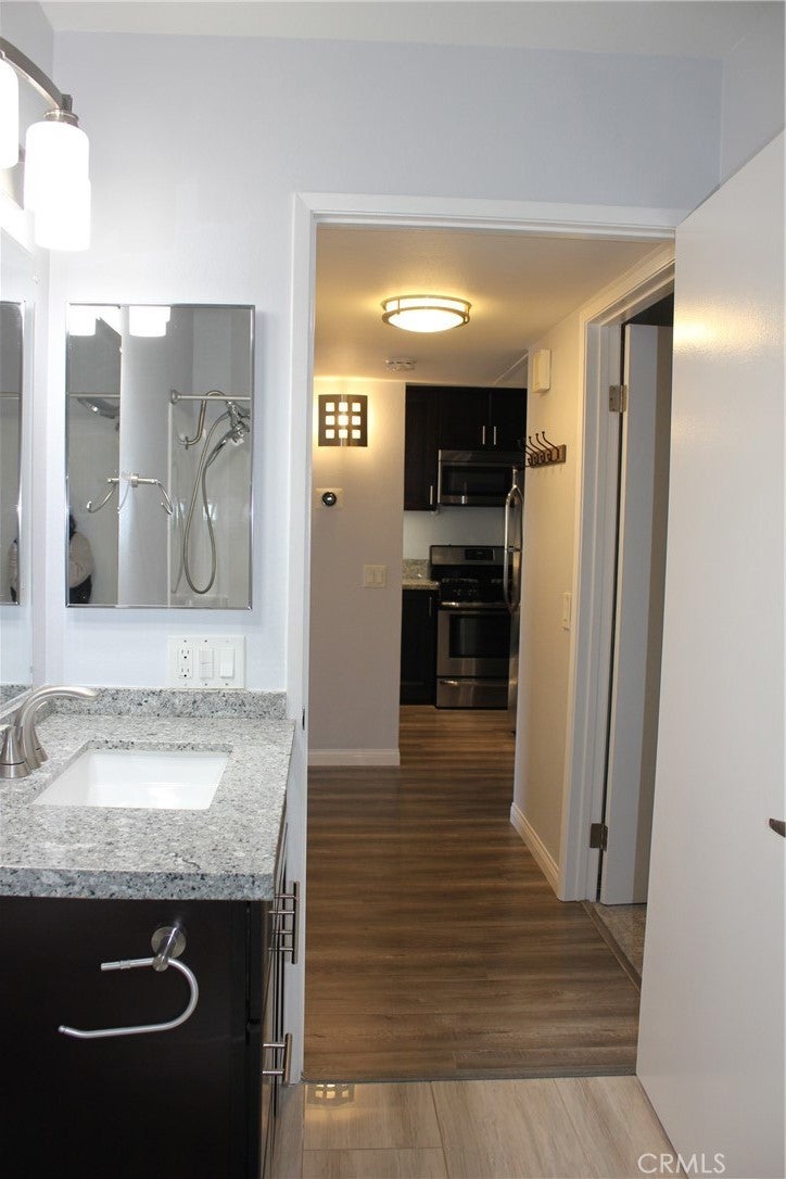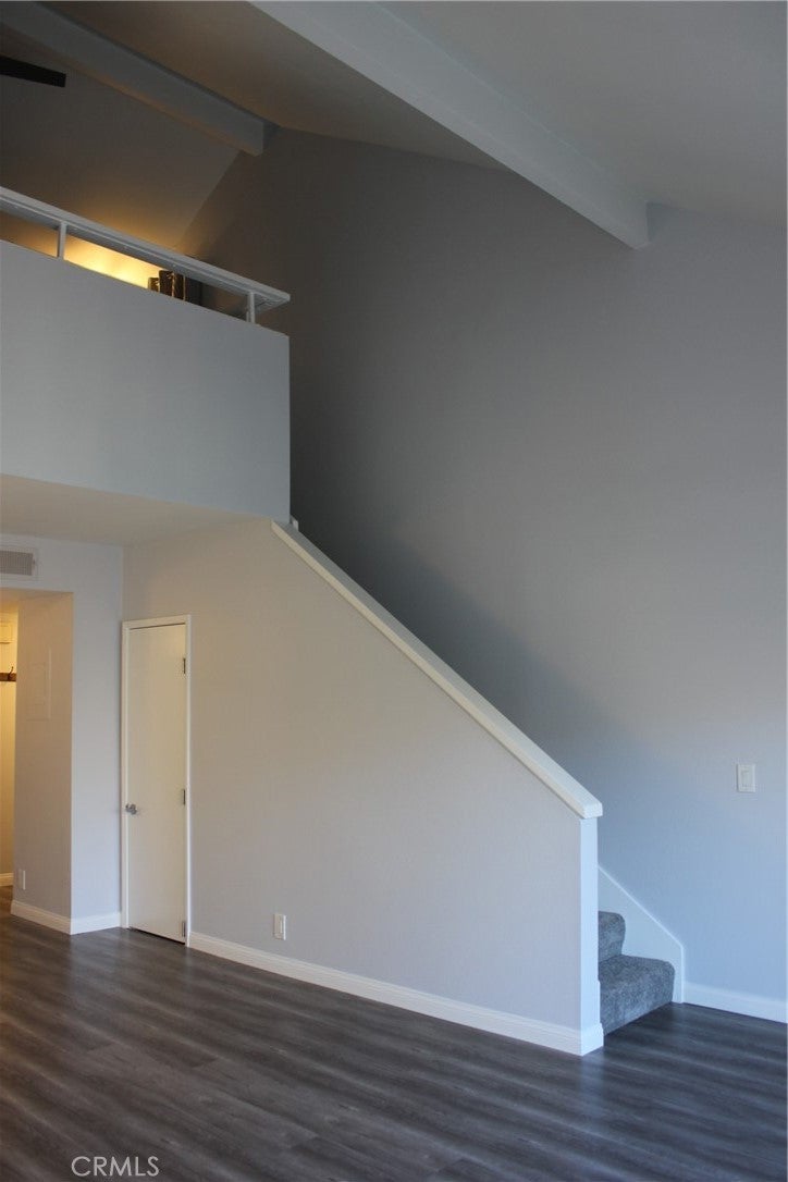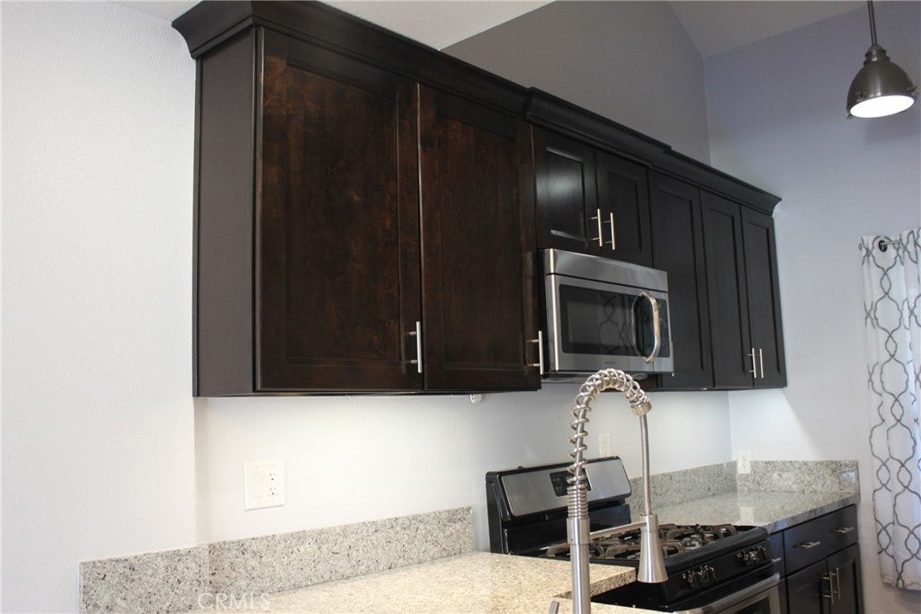 Beautifully upgraded, immaculate Orange Tree condo. This 1 bedroom condo is one of the largest single bedroom units with an upstairs loft that could be used as a 2nd bedroom or office. The elegantly remodeled kitchen features granite counters, under cabinet LED lighting, stainless steel sink & faucet, upgraded cabinets, self closing drawers, stainless steel refrigerator, gas stove, microwave, dishwasher & stackable washer & dryer. The entry, kitchen, living room & hallway feature beautiful grey wood laminate flooring. The living room features a cathedral ceiling, sliding glass doors leading to the balcony overlooking the stream below. The bathroom features a shower, tub, high end marble tile flooring, upgraded cabinets & sink hardware, mirror, towel fixtures & lighting. The bedroom, staircase & loft feature new plush carpeting. This incredible unit has upgraded interior doors with brushed nickel hardware. Designer lighting was used throughout the home. There are modern remote controlled ceiling fans in the bedroom & loft. The interior has been freshly painted with neutral color schemes of grey & white. This home also features a large bedroom closet with mirrored wardrobe door. There is also a large storage closet in the hallway and another generous sized closet under the staircase. The home also features a nest thermostat control system with forced air heating and air conditioning. Association amenities include 2 pools & spas on each end of the complex,6 lighted tennis courts, several basketball courts, a gym and clubhouse. The clubhouse includes a full kitchen and is furnished for meetings, parties or family reunions for a deposit. There is local bus service on Irvine Center Dr to the Spectrum for food, entertainment and shopping. It is also conveniently located near Northwood Town Center, UCI, Irvine Community College, Oak Creek Golf Course & freeways. This Information is deemed reliable, but not guaranteed. The Listing Agent & Broker have not verified the information. The Buyer & their agent are advised to investigate all aspects of the property, home, neighborhood, school boundaries, etc. to their satisfaction.