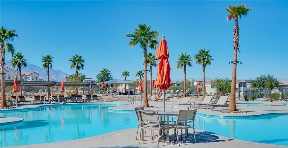 Location, location, location! Nestled in one of Palm Desert’s newest and most desirable communities—University Park—this stylish Solace model blends modern design with everyday comfort in a peaceful, tranquil setting. The home welcomes you into a casual dining area that opens seamlessly to a spacious great room with sliding-door access to the courtyard—perfect for indoor-outdoor living. The U-shaped kitchen offers abundant cabinetry, a center island with breakfast bar, pantry, and energy-efficient appliances including a stove and dishwasher. Additional highlights include an everyday entry, a flex room off the porch ideal for a home office, a powder room, bedroom-level laundry, and ample storage throughout. Upstairs, an expansive loft separates two secondary bedrooms that share a full bath with dual vanity areas. The secluded primary suite features a walk-in closet and a beautifully appointed bath with dual-sink vanity, luxe shower, and private water closet. Designed with modern conveniences and water conservation in mind, this home also includes solar, helping reduce energy costs. Residents enjoy exclusive access to The Grove, offering resort-style amenities such as a clubhouse, multiple pools (adult, lap, and children), spas, fire pits, pickleball courts, ping-pong, shaded playground, and bocce ball. The location supports an active, year-round lifestyle with nearby hiking, biking, and golfing. A perfect blend of style, comfort, and resort living in the heart of Palm Desert.