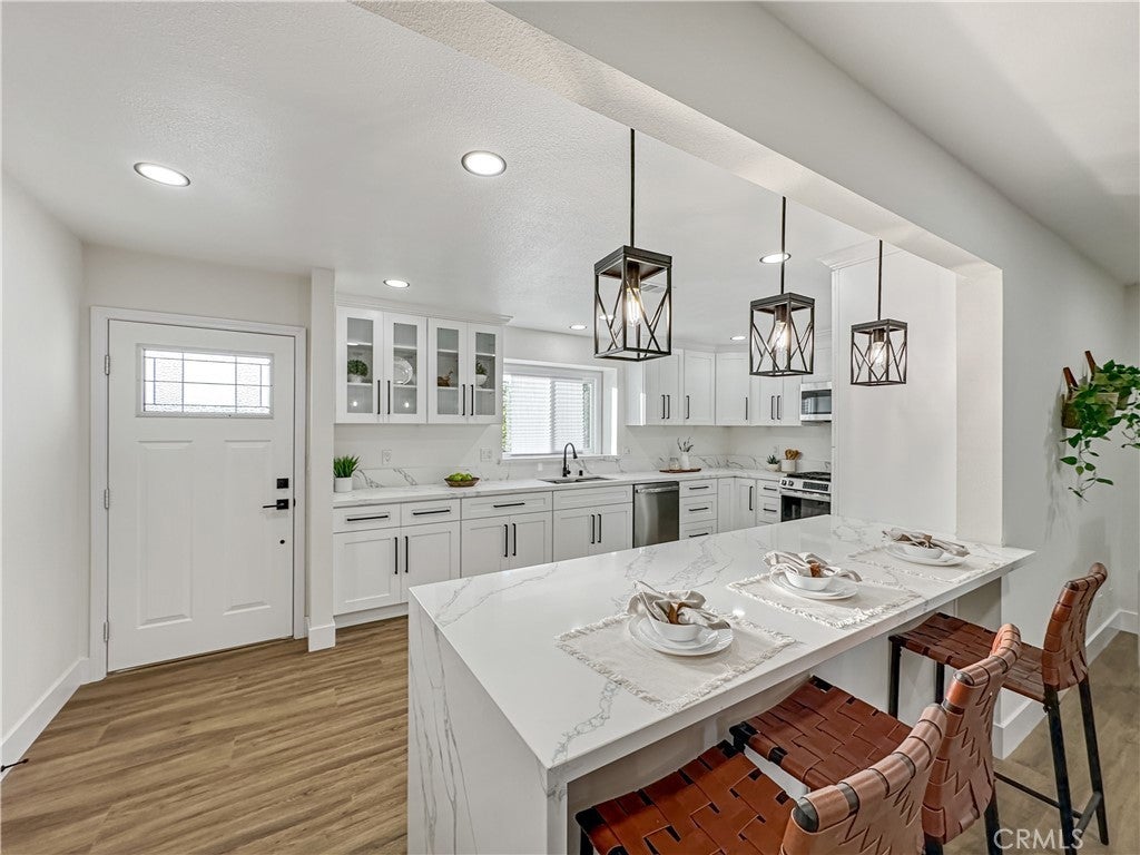 This home is 1,289 square feet on title and has a 291 square foot enclosed patio that feels like an extension of the home. This beautifully reimagined 4-bedroom, 2-bathroom single-story residence in the heart of Huntington Beach offers the perfect blend of coastal style and modern efficiency. Step inside to discover a bright and open floor plan featuring all-new luxury vinyl flooring throughout, accented by elegant 6-inch baseboards and a fresh, contemporary palette. The chef-inspired kitchen is a true standout, boasting brand-new quartz countertops and crisp white shaker cabinets equipped with soft-close doors and drawers for a premium feel. Every detail has been addressed for peace of mind and comfort, including all-new windows, new interior and exterior doors with updated hardware, and a new garage door with a modern opener. Behind the scenes, the home features a near-new AC and heating system along with updated ductwork. Both bathrooms have been tastefully updated, highlighted by custom seamless shower doors that add a touch of spa-like luxury. Located in a quiet, sought-after neighborhood just minutes from the beach, world-class shopping, and top-rated schools, this turn-key property is ready for you to move in and enjoy the quintessential California lifestyle.