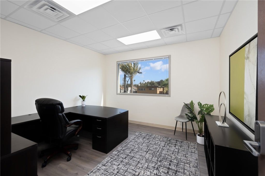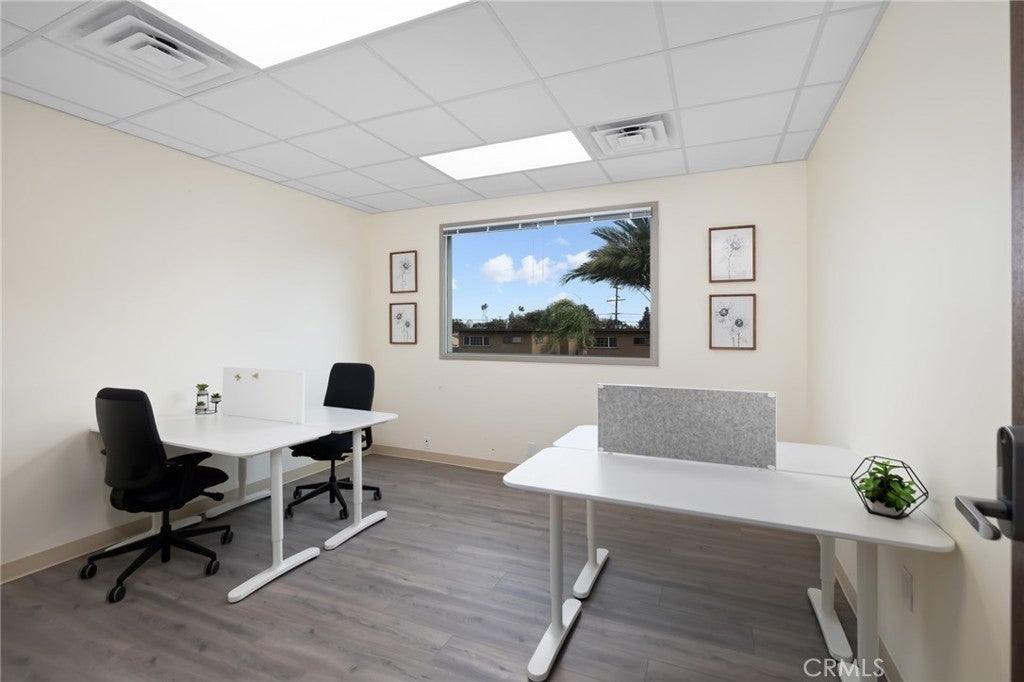 Multiple private suites offer a flexible and professional workspace solution with our large office building. We provide privacy, functionality, and comfort, making them suitable for various businesses and professionals, from startups and small businesses to freelancers and remote workers. Which provides privacy, security, and a dedicated environment for focused work. Each private suite is fully furnished to support the occupant's work needs. This typically includes desks, ergonomic chairs, storage solutions (like cabinets and shelving), and sometimes additional furniture like sofas or lounge chairs for comfortable client meetings. Adequate lighting is provided within each suite, combining natural light from windows and artificial lighting. These suites are equipped with essential technology infrastructure, including power outlets, data ports, and high-speed internet connections. Privacy is a key feature of private suites. Each suite is enclosed by walls or partitions, ensuring that occupants can work without distractions and conduct confidential meetings and discussions. Secure access controls, such as key cards to enhance security. This building offers amenities which include a reception area, conference rooms, kitchen facilities, and common areas for networking and relaxation. Don't miss out on this opportunity to elevate your business to new heights. Contact us today to schedule a tour and secure your spot in Suite 208. - Please note: Parking is upon request. Matterport 3D Tour Link https://my.matterport.com/show/?m=bKAA7rWqNRJ