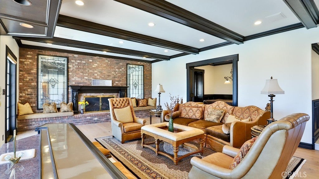 Beamed Ceilings, Balcony, Crown Molding, Granite Counters, High Ceilings, Multiple Staircases, Pantry, Recessed Lighting, Storage, Bedroom on Main Level, Main Level Primary, Wine Cellar, Walk-In Closet(s)
