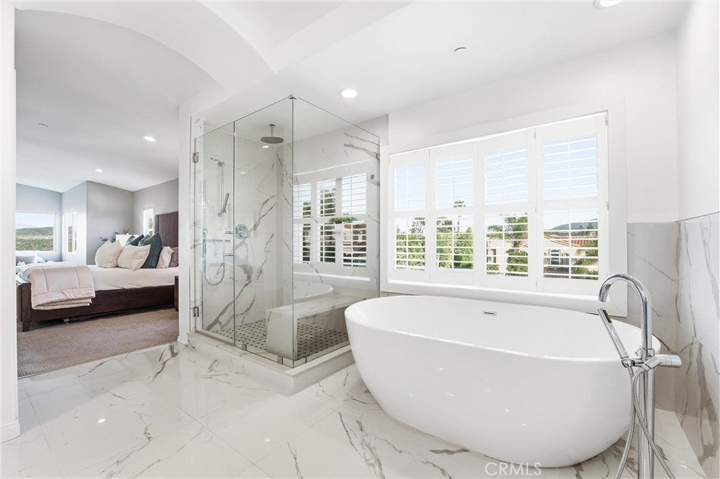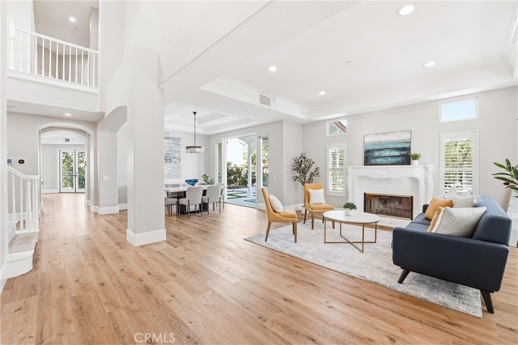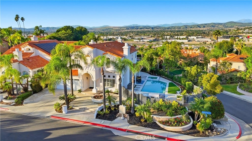 Welcome to 5489 E Suncrest Road in Anaheim Hills—a luxurious, fully remodeled corner-lot home in a gated community with sweeping views and upgrades that check every box. From a full outdoor transformation to major system overhauls, this property has been meticulously updated to offer turnkey living with resort-style amenities and timeless style. Step inside to find a spacious, sun-filled layout that blends modern comfort with elegant details. The formal living room features dramatic high ceilings and a cozy fireplace, creating an inviting space to gather or unwind. The adjacent formal dining area leads toward a sleek home office/gym and a light-filled family room and kitchen that showcase hillside views and effortless indoor-outdoor flow. The kitchen itself is equipped with quartz countertops, stainless steel appliances, and a walk-in pantry. Upstairs, you'll find a thoughtfully redesigned layout. A separate bedroom and bathroom offer ideal accommodations for guests or in-laws, while the primary suite impresses with a fireplace, walk-in closet, soaking tub, dual vanities, and a separate shower. Two additional upstairs bedrooms include ensuite bathrooms, making this a rare and highly functional home. The list of upgrades is extensive: all bathrooms were completely renovated in 2020, and the home's plumbing was replaced for peace of mind. A dedicated laundry room was added upstairs for convenience, and in 2025, the HVAC system was fully replaced. Outdoors, the transformation is stunning. The yard was fully reimagined to include a saltwater pool and jacuzzi, a built-in BBQ, custom firepit, brand-new turf, and lush privacy hedges that make your backyard feel like a secluded retreat. Located in a highly desirable, gated Anaheim Hills neighborhood, this home is close to top-rated schools, scenic parks, and everyday essentials. Whether you're looking for luxury, functionality, or a turnkey home with all the upgrades already done—5489 E Suncrest Road delivers it all.