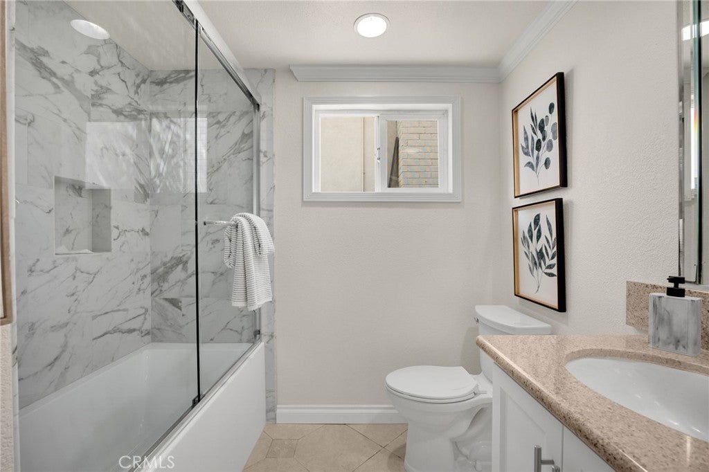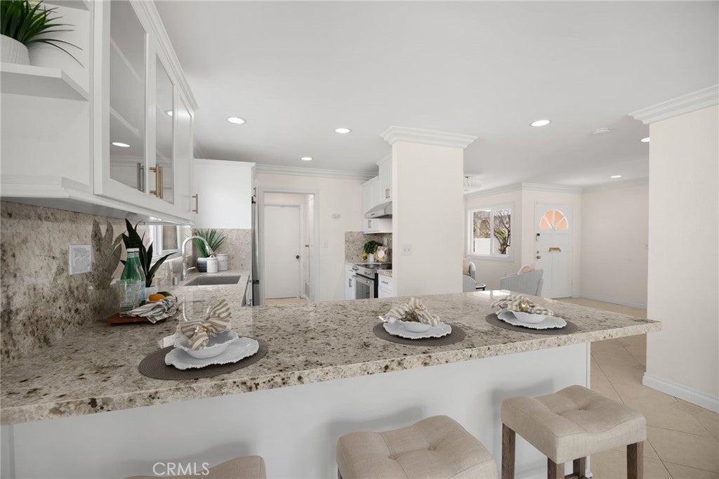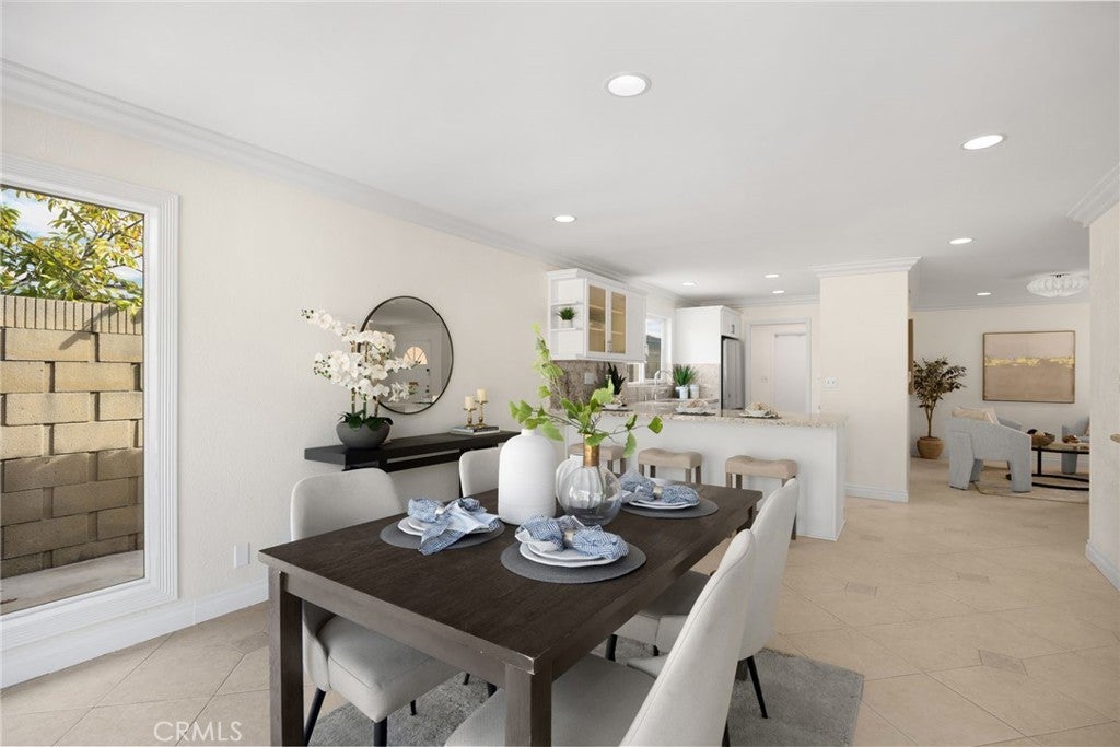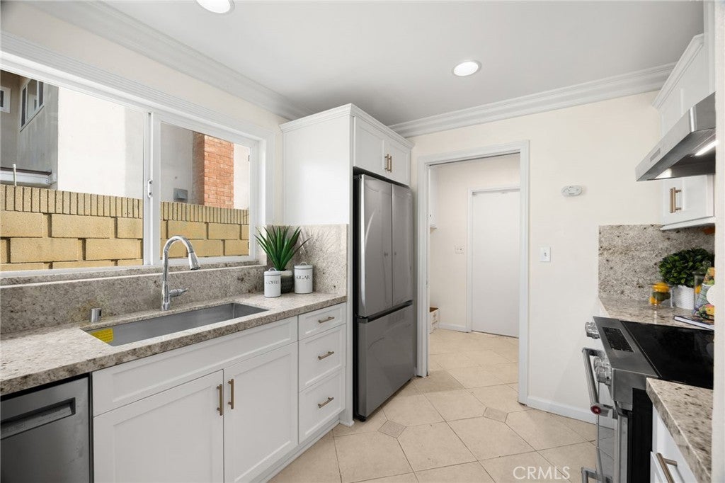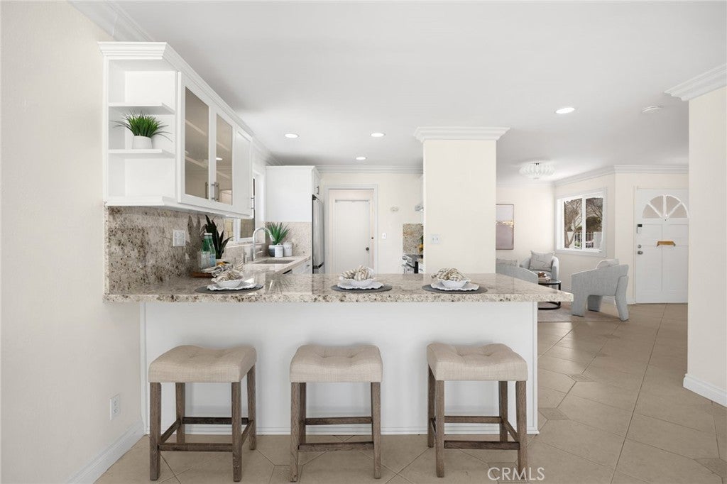 Welcome to this 4-bedroom, 2-bath home in Goldenwest Estates. Upon entering, you’re greeted by a grand living room and adjoining family room offering endless layout possibilities. This expansive space is filled with natural light from two large glass sliders and an oversized window, creating a bright, open feel that truly brings the outdoors in. A formal dining or sitting area sits just off the main living space, adding even more flexibility to the floorplan. The newly remodeled kitchen features white shaker cabinetry, new granite countertops, brand-new refrigerator and stove, and a walk-in pantry. The kitchen bar opens to the family and dining areas with direct access to the backyard—perfect for entertaining. Just off the kitchen is an inside laundry room with direct access to the two-car garage with built-in storage and attic space.The primary suite includes a walk-in closet and a remodeled bathroom with upgraded vanity and walk-in shower. The guest bathroom features dual sinks, a new vanity, and a newly designed tub/shower. Three additional bedrooms are spacious, with one ideal for a home office. The private backyard features new brick pavers and walkway, block wall fencing, and mature fruit trees—ideal for relaxing or hosting gatherings. Additional upgrades include new front yard walkway pavers to the courtyard, fresh interior paint, new A/C, water heater, and full re-piping. Conveniently located close to the beach, top-rated schools, parks, and Bella Terra shopping and dining.