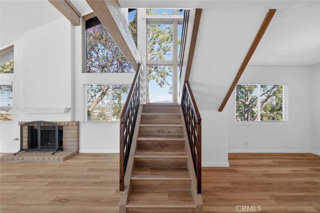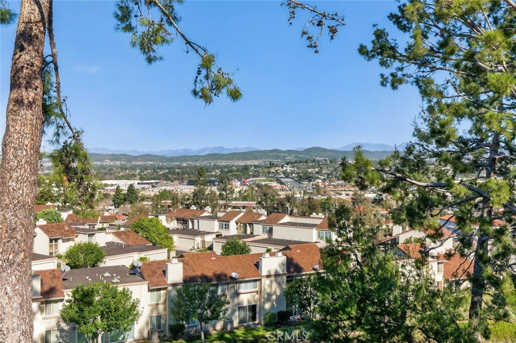 Beautifully remodeled home with 180 degree views of the Santa Ana mountains. Anaheim Hills This Rancho Yorba home offers almost 1600 square feet of living space, with floor to ceiling windows, and views from every angle. Private courtyard entrance, open the front door to very inviting living room, complete with cozy fireplace. Dining Room space, downstairs half bath, and then the WOW kitchen. The view from your kitchen sink is amazing! The kitchen is completely new, cabinets; counters and appliances, as are the baths/ vanities. New laminate flooring throughout, new baseboards, new paint. Double pane windows and sliding glass door. The kitchen has a large eating/ living/ office space attached. Up the staircase with floor to ceiling windows to the Primary bedroom and one other spacious bedroom. Two car attached garage with access to the courtyard. Even the garage has a view! The community includes a pool and clubhouse, close to schools, shopping, restaurants, parks and fwys. This is an attached single family residence that is an end unit and has only one attached wall. Anaheim Hills living at it's best!