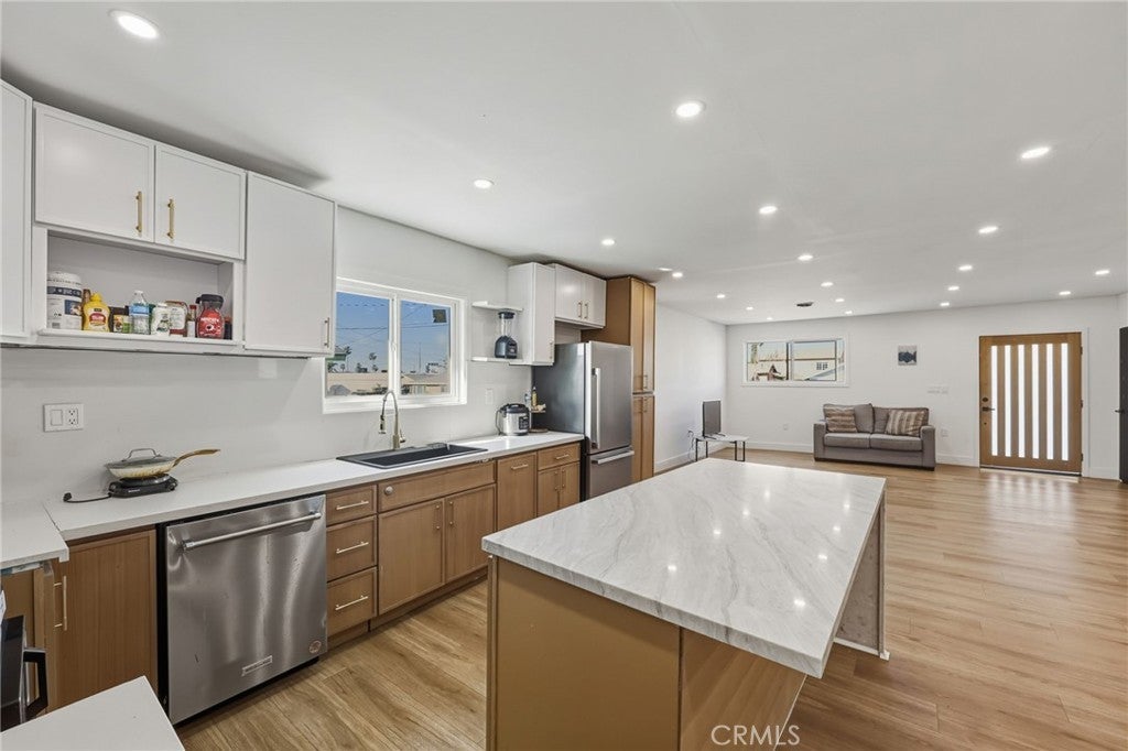 This property has new upgrades. Fully upgraded Kitchen, and bathroom, new interior and exterior paint, new roofing, upgraded recessed lighting, new laminate flooring and updated plumbing. It has an open concept with lots of natural lighting, including an indoor laundry room, spacious living area and private back deck yard ideal for all your barbecues. This property offers potential for an ADU, very spacious for RV parking and no HOA. Conveniently located near the 91 freeway, schools, shopping centers and great amenities.