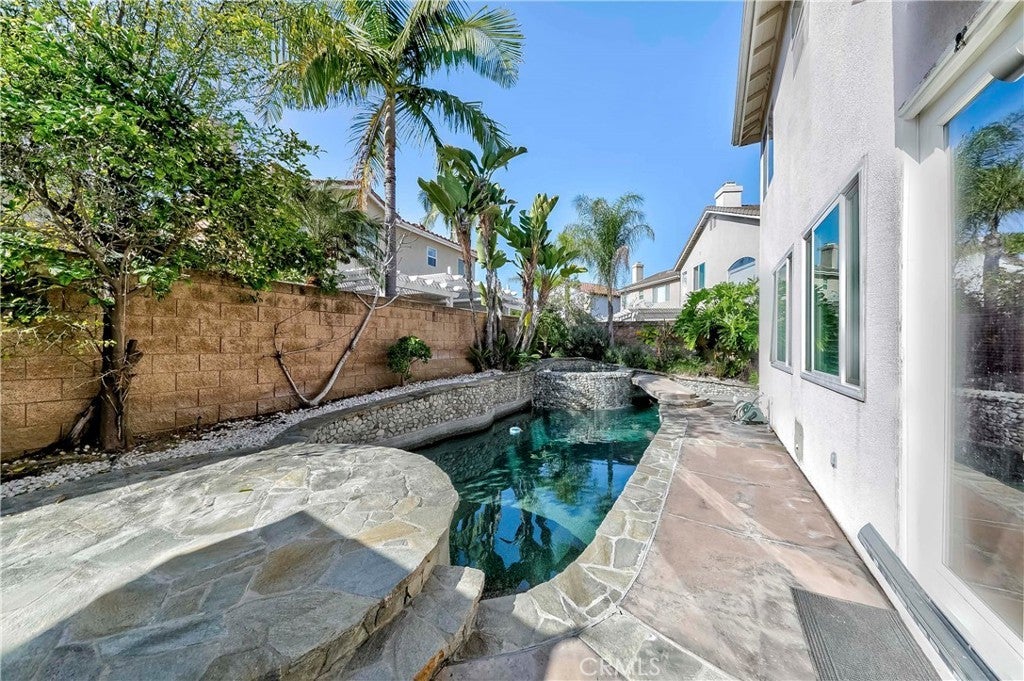 Beautiful 2-story home in the prestigious gated "Hillsborough Collection". Featuring 5 bedrooms and 3 full baths, including a downstairs bedroom and bath ideal for guests or multi-gen living. Open floor plan with wood flooring, vaulted ceilings, and a cozy fireplace. Upgraded kitchen with granite countertops and stainless steel appliances. Freshly painted interior with plush carpeting upstairs. Private backyard with custom pool and spa, plus mature fruit trees. 3-car garage with extended driveway. Conveniently located near shopping and dining. Move-in ready and a must-see!