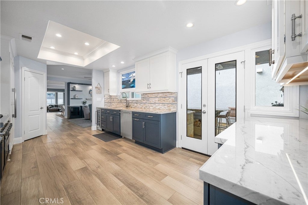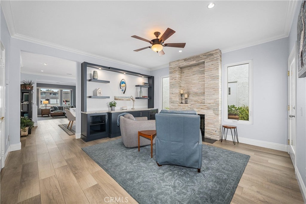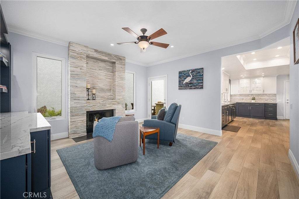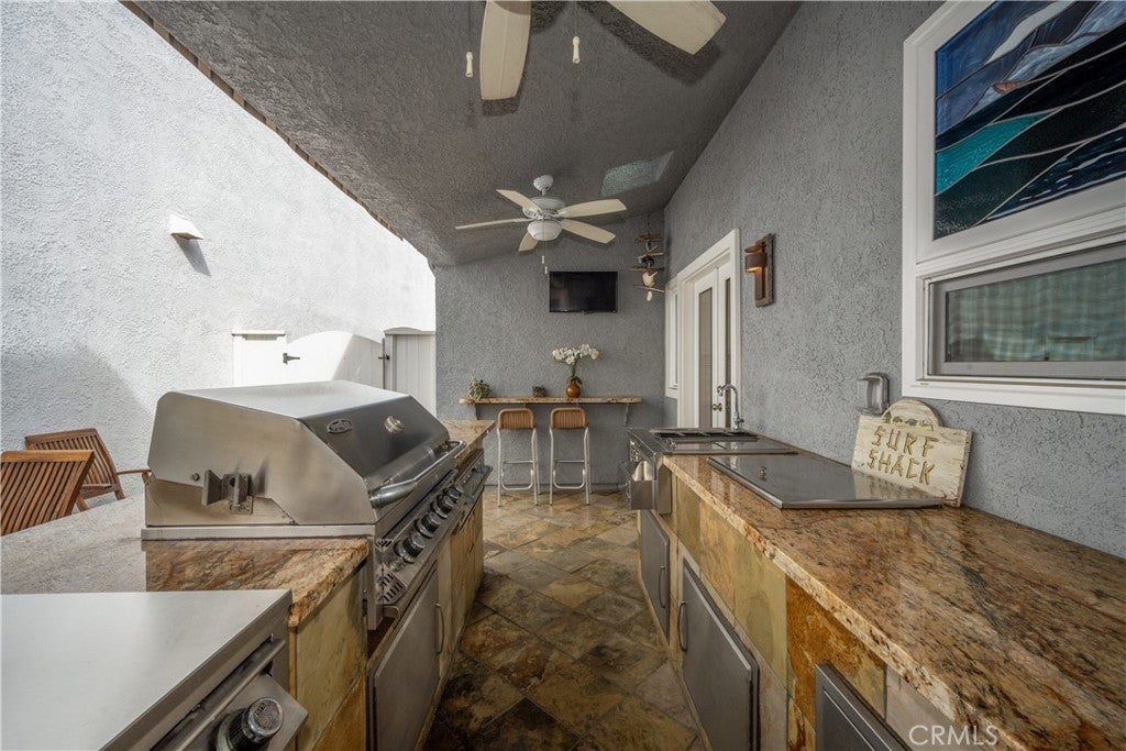 Just steps from the sand in the heart of Old Town Seal Beach, this exceptional coastal residence captures the essence of luxury beach living—where ocean breezes, walkable Main Street charm, and refined design come together in one remarkable home. Spanning approximately 2,848 square feet on a 3,080 square foot lot, this four-bedroom, three-and-a-half-bath residence has been thoughtfully upgraded to deliver both elegance and comfort, creating the perfect setting for relaxed coastal living and effortless entertaining. Inside, custom coastal influences—including stained glass accents, rich finishes, and two fireplaces—create warmth and character throughout. The remodeled gourmet kitchen serves as the centerpiece, featuring custom shaker cabinetry, a built-in refrigerator, premium Thermador appliances including a six-burner range and oven, wine cooler, and a striking stacked stone backsplash. The kitchen flows seamlessly into expansive living and dining areas designed for both everyday living and hosting. Adjacent spaces include a welcoming den with a floor-to-ceiling stacked stone fireplace and custom built-ins, while the main living room offers a second fireplace and motorized blackout blinds. New flooring, carpet, and dual-pane windows enhance both style and efficiency. The roofline has been extended to create a covered outdoor patio with a retractable awning, enhancing indoor-outdoor living. The backyard is an entertainer’s dream, featuring a fully equipped outdoor kitchen and BBQ area with cooktop, refrigerator, wet bar, granite counters, and elegant teak furnishings—perfect for enjoying warm coastal evenings. Recent upgrades include fresh exterior paint, a new roof, and a new balcony. Upstairs, the primary suite offers custom built-ins, walk-in closets, and ocean views. The third-floor viewing deck provides a stunning setting for sunset gatherings, complete with a fire pit and dining area—ideal for relaxing or entertaining under the stars. A secondary bedroom includes an ensuite bath, and upstairs laundry adds convenience. Ceiling fans throughout capture ocean breezes, with central air conditioning available when needed. Located just moments from Seal Beach’s iconic pier, boutique shopping, and local cafés, this home offers a rare opportunity to experience the relaxed coastal lifestyle of Old Town. Selected furnishings may be offered separately.