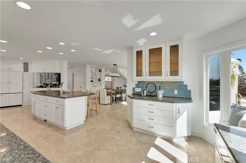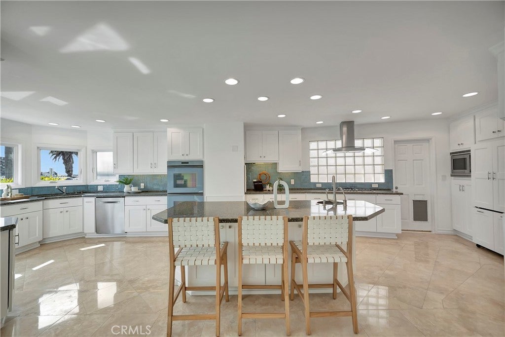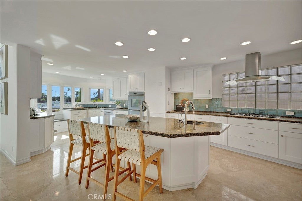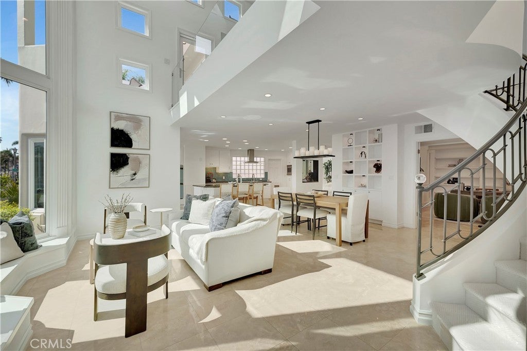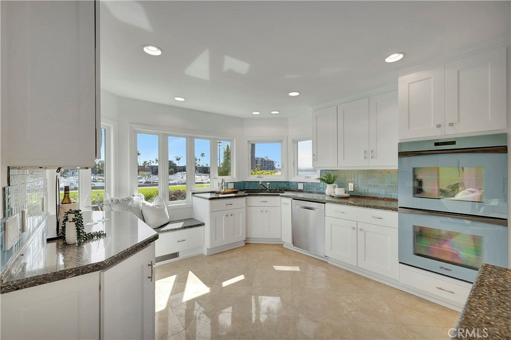 265 Bay Shore | Belmont Park is a RARE ONE … Exceptional waterfront living with sweeping 360 views of the bay, ocean, Catalina and snow-capped mountains, including a private oversized two-sided dock accommodating a large yacht and additional watercraft, plus HUGE 4-car garage and additional parking. A dramatic two-story wall of glass showcases the waterway, filling the home with natural light.____This multi-generational residence offers 5 en-suite bedrooms, including a studio suite with private entrance, kitchenette, bath, deck, and dedicated garage—ideal for guests or extended family. Open-concept living features an island kitchen with abundant seating and storage, flowing to dining and living areas overlooking a vibrant fish sanctuary. A loft-style family room with coffee bar and balcony enhances the flexible layout_____Enjoy 180° water views from multiple balconies, a playground-sized second-level deck, attached 4-car garage, and additional exterior parking— ALL RARE BEACH CONVENIENCES.____Upgrades include central HVAC, owned solar with battery backup, updated baths, custom closets, windows, plumbing, and electrical systems. Prime location near beaches, shops, dining, top-rated schools, and cherished community events. MUST SEE!