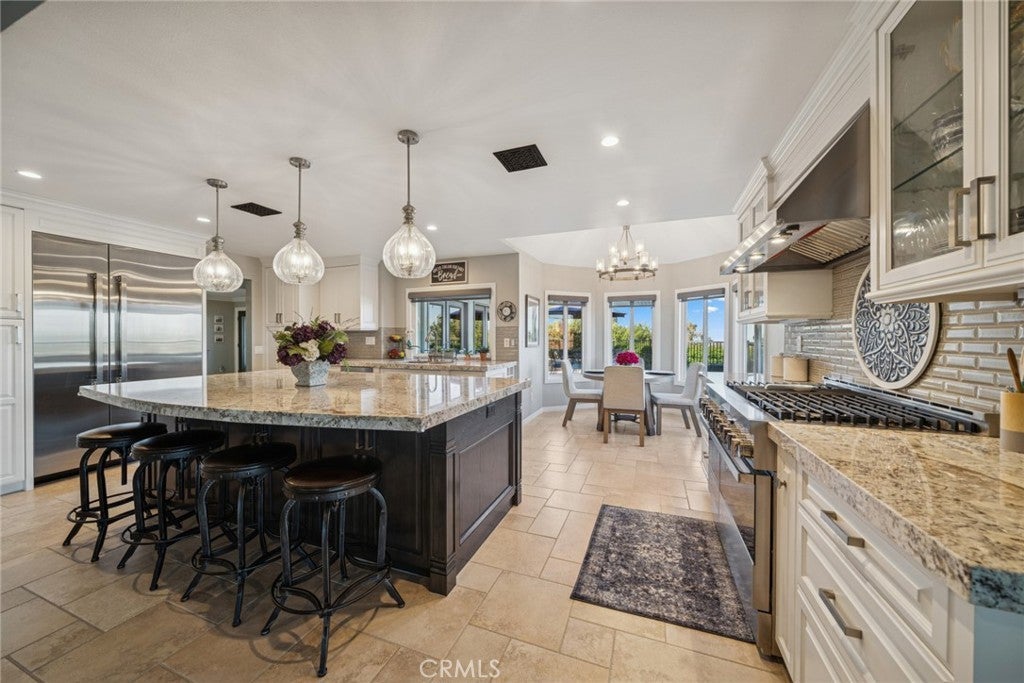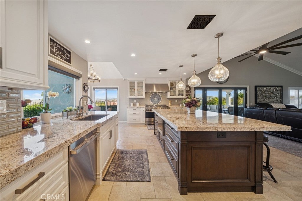 Welcome home to a truly special single-story retreat, tucked away on a peaceful cul-de-sac with beautiful views. Completely upgraded from floor to ceiling, this 4-bedroom, 2-bath residence blends timeless elegance with modern comfort in every detail. Sunlight pours through the home, highlighting Italian Versailles-pattern tile flooring, designer finishes, and thoughtfully curated spaces. The heart of the home is the stunning kitchen, featuring stainless steel appliances, granite countertops, two-tone cabinetry, an oversized island, pendant lighting, and a classic subway tile backsplash—perfect for hosting gatherings or enjoying quiet mornings at home. Relax and unwind in your spacious living areas, each centered around a custom-designed fireplace, with beautiful built-ins and floating shelves that add warmth and character. Both bathrooms have been fully remodeled with high-end finishes, creating a spa-like experience you’ll enjoy every day. Step outside to your own private oasis with a covered patio, barbecue, custom brickwork, artificial grass, and a private spa—an ideal setting for entertaining, relaxing, and taking in the view. This is more than a home—it’s a place to gather, recharge, and create lasting memories in a turn-key, beautifully upgraded setting.