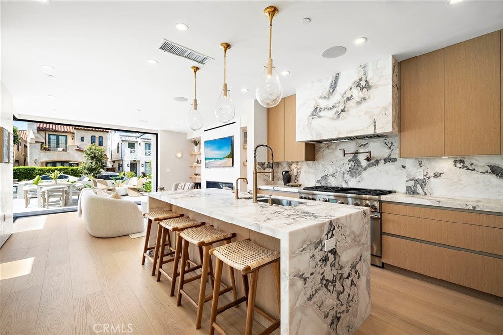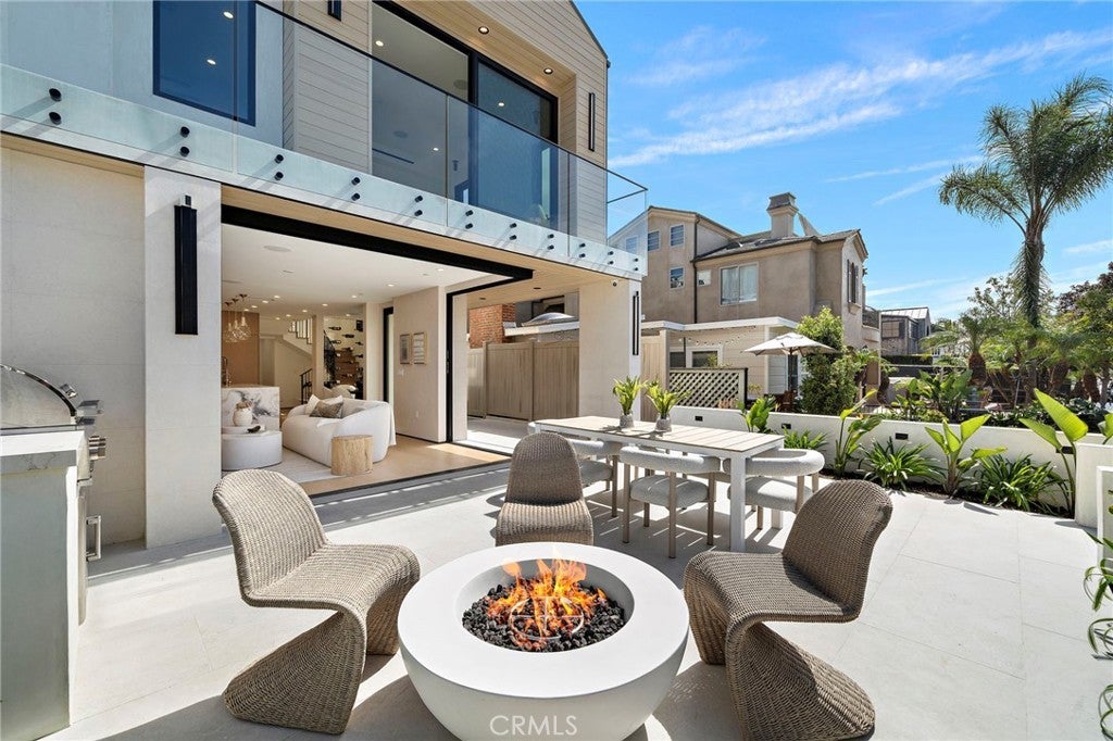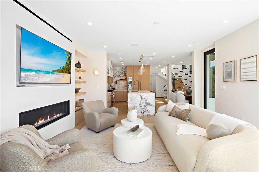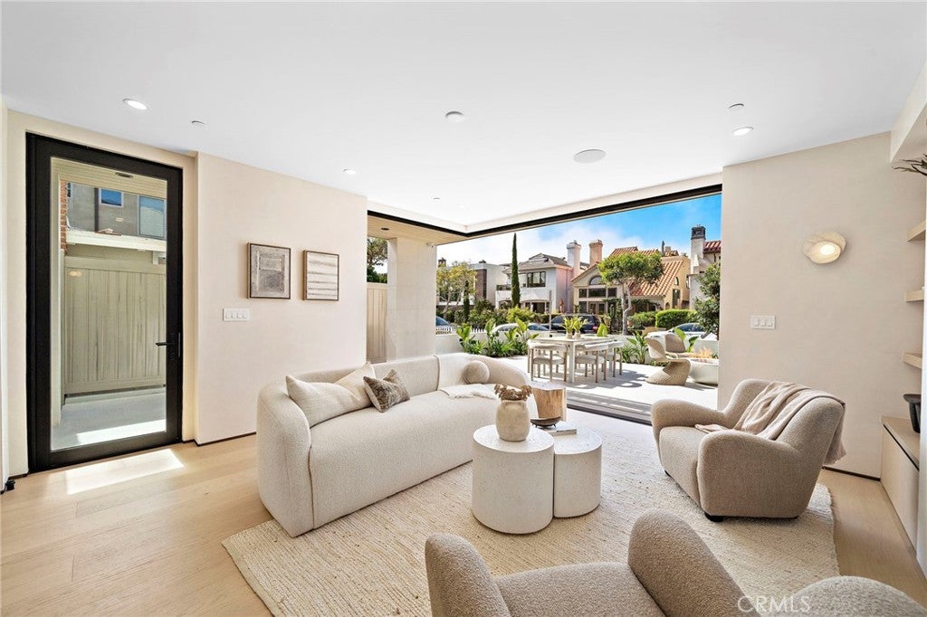 Brand new 2026 construction on one of the most desirable no pass-through streets in Corona del Mar’s coveted Flower Streets. Just moments from the beach and within walking distance to Begonia Park, shops, and restaurants in the Village, this front residence offers the ideal blend of privacy, walkability, and refined coastal living. Designed by acclaimed architect Mark Teale, built by AmPro Construction with interiors by KFR Design, the home offers approximately 1,769 square feet of thoughtfully designed living space with elevated finishes throughout. Inside, walls of glass and sliding doors create a seamless connection between indoor and outdoor spaces while filling the home with natural light. Solid wood flooring runs throughout, complementing the open-concept layout and clean architectural lines. The living area features beautiful designer upgrades, including a striking wine wall that serves as a focal point. The chef’s kitchen is beautifully appointed with a 48-inch Thermador Professional range, column refrigerator and freezer, built-in microwave drawer, wine refrigerator,Custom European cabinetry, natural stone countertops, and high-end designer finishes continue throughout the kitchen and all bathrooms, reflecting quality craftsmanship and thoughtful attention to detail. All bedrooms are en-suite, offering privacy and comfort throughout. The second level features the primary suite along with an additional bedroom suite. The primary retreat feels like a spa-inspired sanctuary, complete with a freestanding soaking tub, Kohler Purist brushed bronze fixtures, and carefully selected stone finishes. The third level includes another private bedroom suite that opens directly to the rooftop deck, creating a seamless indoor-outdoor experience and an exceptional space for entertaining or relaxing in the coastal breeze. Outdoor living is equally impressive. The fully landscaped front patio one of the larger front patios for new construction in the Flower Streets is finished with porcelain tile, a built-in BBQ, firepit, and beautiful landscaping. Combined with the generous rooftop deck, the home offers multiple outdoor living areas rarely found in new construction at this size. A rare opportunity to own a brand-new, design-driven residence in one of Corona del Mar’s most sought-after coastal neighborhoods.