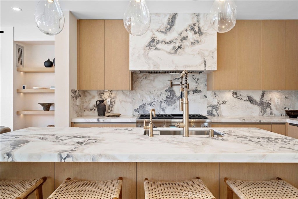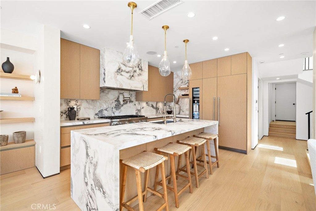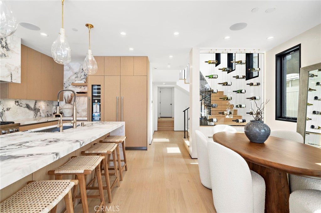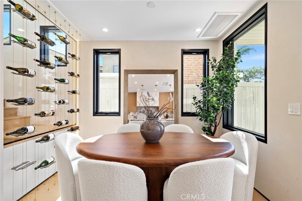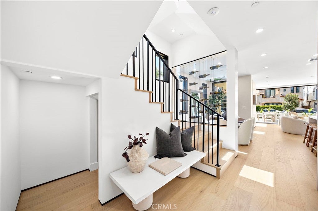 Brand new 2026 construction on one of the most desirable no pass-through streets in Corona del Mar’s coveted Flower Streets. Just moments from the beach and within walking distance to Begonia Park, shops, and restaurants in the Village, this front residence offers the ideal blend of privacy, walkability, and refined coastal living. Designed by acclaimed architect Mark Teale, built by AmPro Construction with interiors by KFR Design, the home offers approximately 1,769 square feet of thoughtfully designed living space with elevated finishes throughout. Inside, walls of glass and sliding doors create a seamless connection between indoor and outdoor spaces while filling the home with natural light. Solid wood flooring runs throughout, complementing the open-concept layout and clean architectural lines. The living area features beautiful designer upgrades, including a striking wine wall that serves as a focal point. The chef’s kitchen is beautifully appointed with a 48-inch Thermador Professional range, column refrigerator and freezer, built-in microwave drawer, wine refrigerator,Custom European cabinetry, natural stone countertops, and high-end designer finishes continue throughout the kitchen and all bathrooms, reflecting quality craftsmanship and thoughtful attention to detail. All bedrooms are en-suite, offering privacy and comfort throughout. The second level features the primary suite along with an additional bedroom suite. The primary retreat feels like a spa-inspired sanctuary, complete with a freestanding soaking tub, Kohler Purist brushed bronze fixtures, and carefully selected stone finishes. The third level includes another private bedroom suite that opens directly to the rooftop deck, creating a seamless indoor-outdoor experience and an exceptional space for entertaining or relaxing in the coastal breeze. Outdoor living is equally impressive. The fully landscaped front patio one of the larger front patios for new construction in the Flower Streets is finished with porcelain tile, a built-in BBQ, firepit, and beautiful landscaping. Combined with the generous rooftop deck, the home offers multiple outdoor living areas rarely found in new construction at this size. A rare opportunity to own a brand-new, design-driven residence in one of Corona del Mar’s most sought-after coastal neighborhoods.