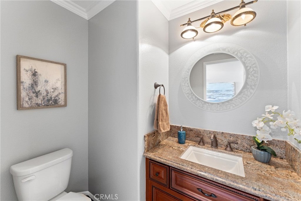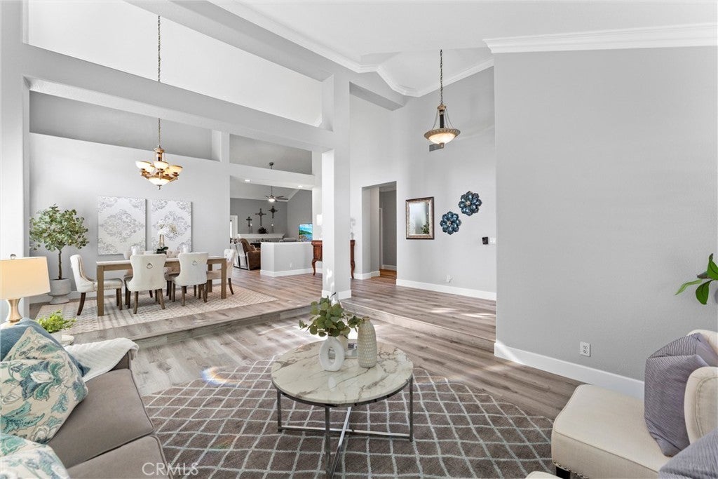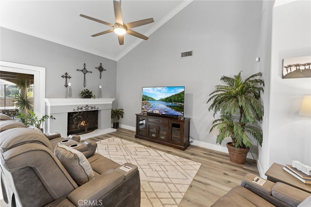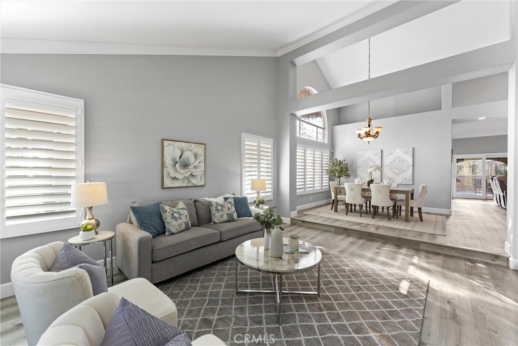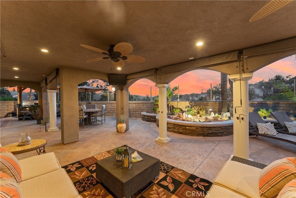 This one truly checks all the boxes. Nestled on a quiet cul-de-sac, this beautifully maintained single-level home offers 2,421 square feet of thoughtfully designed living space, featuring 4 bedrooms, 2.5 bathrooms, and a 3-car garage plus RV parking potential—the perfect blend of comfort, functionality, and timeless style. A backard oasis perfect for entertaining with a pool/spa combo with waterfalls and jets, covered patio and palapa with built in bbq and bar area. Curb appeal shines with a brick front porch and entry, welcoming you through double doors with stained glass, a grand chandelier, and an elegant arched window. Inside, light-filled living spaces showcase vaulted and cathedral ceilings, crown molding, and plantation shutters throughout. The formal living room features soaring vaulted ceilings, while the formal dining room impresses with cathedral ceilings, a statement chandelier, and a large arched window with secure glass and plantation shutters—ideal for entertaining. The chef’s kitchen boasts vaulted ceilings, crown molding, quartz countertops, stainless steel appliances including a double oven, stainless sink, ceiling fan, plantation shutters, and custom shades. The kitchen opens to the adjacent family room, complete with a ceiling fan and a gas fireplace with mantle and hearth, creating a warm and inviting gathering space. The primary suite is a private retreat featuring vaulted ceilings, crown molding, mirrored closet doors, plantation shutters, and French doors leading to the backyard. The spa-inspired primary bathroom includes a soaking tub, large walk-in shower with travertine and mosaic inlay tile, dual sinks with granite countertops, a custom built-in vanity, upgraded fixtures, and a walk-in closet. Secondary bedrooms are generously sized, each with ceiling fans, crown molding, and mirrored wardrobe doors. The secondary bathroom offers dual sinks, quartz countertops, a tub/shower combo, crown molding, and newer fixtures. A stylish powder room features travertine floors and a built-in vanity with granite countertops. Additional highlights include an indoor laundry room with utility sink, abundant storage, and a highly desirable single-story floor plan in one of Yorba Linda’s most sought-after neighborhoods. A rare opportunity to own a turn-key home where location, layout, and upgrades come together seamlessly.
