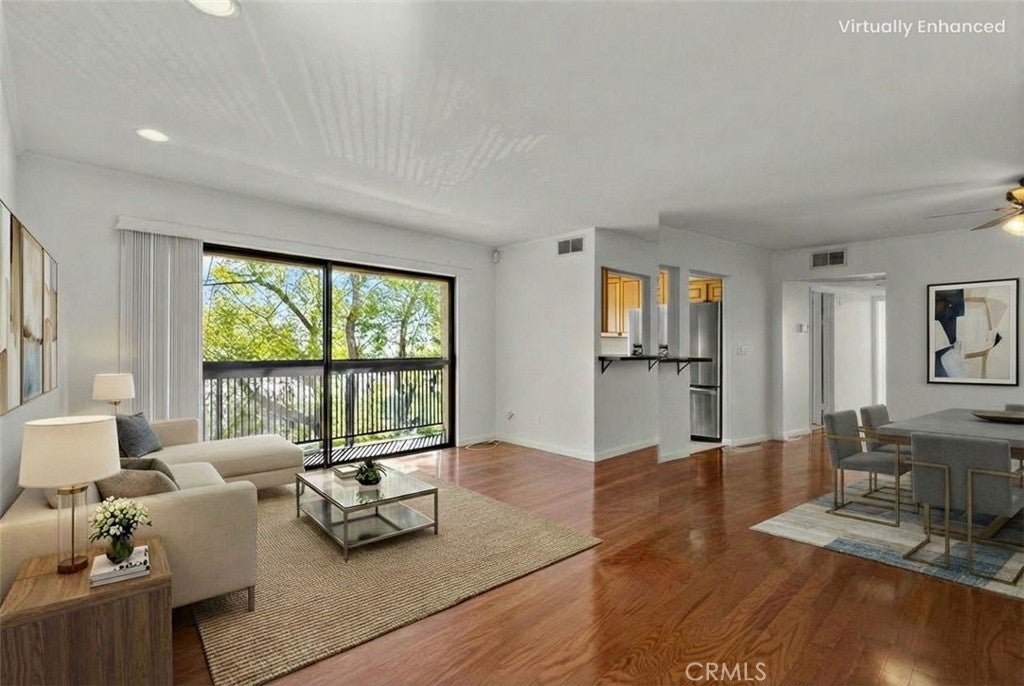 Top-floor privacy and great natural light highlight this inviting Allen Springs end-unit condo.** The 2-bed, 1.75-bath home features new carpet, fresh paint, updated recessed lighting, and a bright living area opening to a private balcony overlooking tree-lined street. **Please note: Third-floor unit with stair access only.** The kitchen offers granite counters, stainless steel appliances, and ample cabinetry, with a separate dining area. Bedrooms include generous storage, a walk-in closet in one and dual closets in the primary suite with its own ensuite bath. Additional conveniences in-unit laundry capability for a combo washer/dryer, two parking spaces, and private storage. Only one shared wall and no one above add to the quiet and privacy. Walkable to dining, cafés, and neighborhood shopping. A bright, low-maintenance home with low HOA fees in a desirable Glendale location.