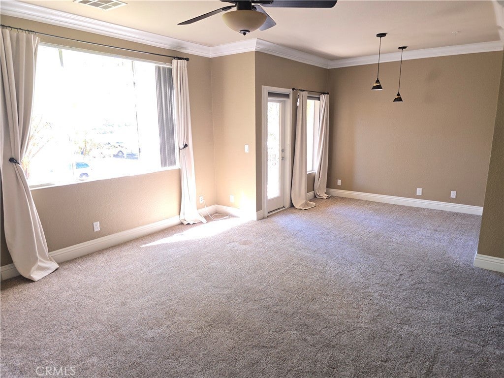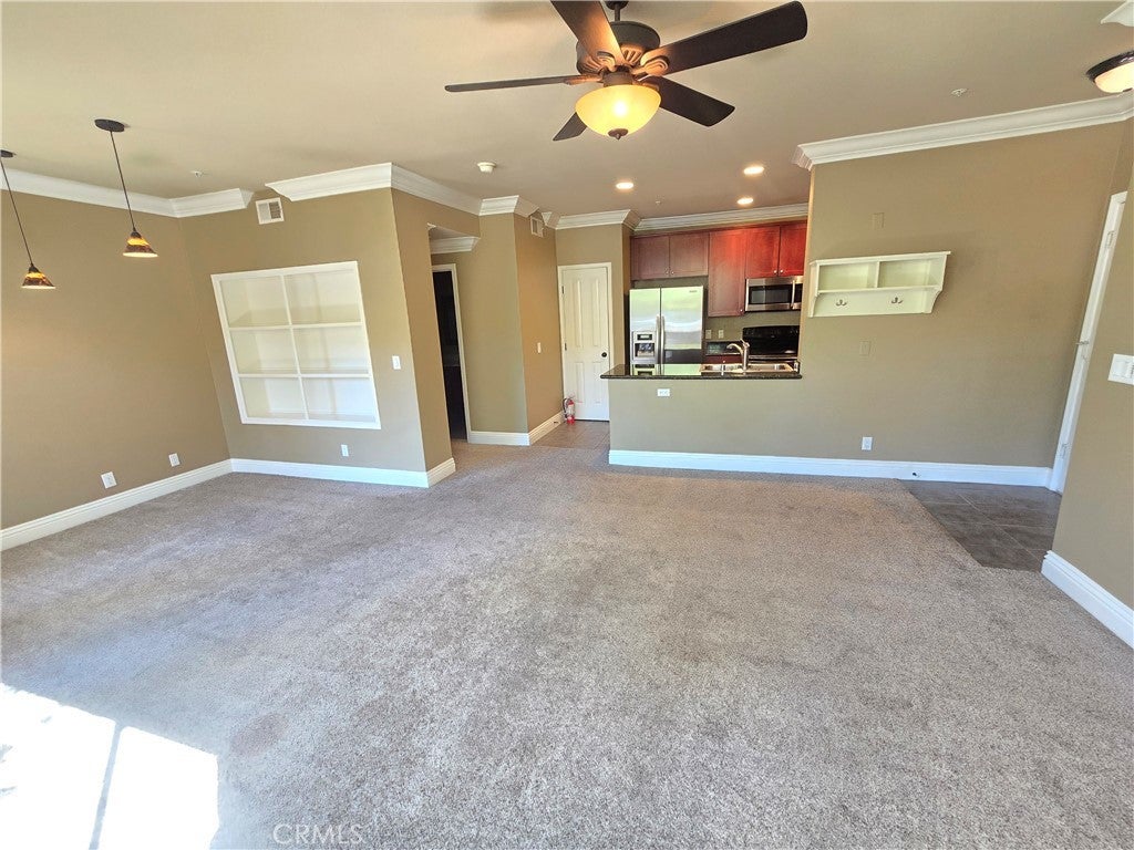 Beautiful 2nd floor view condo in Canyon Point Community. Approximately 792 sq. ft., 1 bedroom, 1 bathroom, full size laundry, open floor plan. The kitchen opens to the large living room with its romantic stone fireplace and scenic views. The living room flows right into the dining room with more views and custom pendant lighting and built in cabinets. The bedroom is large with views. The bedroom also has a large walk-in closet with custom closet organizers. The long patio spans the living room and bedroom. The bathroom is oversized and fully remodeled. The kitchen has granite slab counter tops, stainless refrigerator, stainless oven and microwave. The kitchen also has dishwasher, pantry with washer and dryer in a separate room. This home also features A/C, high ceilings, crown moldings, plush carpet, recessed lighting, ceiling fans in the bedroom and living room. This home comes with one assigned parking space. The community has a pool, spa, clubhouse, gym and many local hiking paths. We are located near Soka University and the 73.