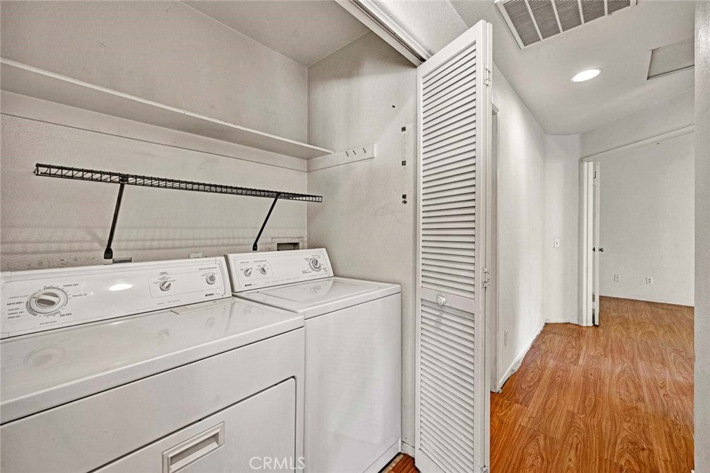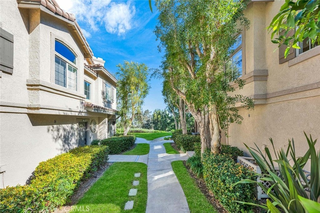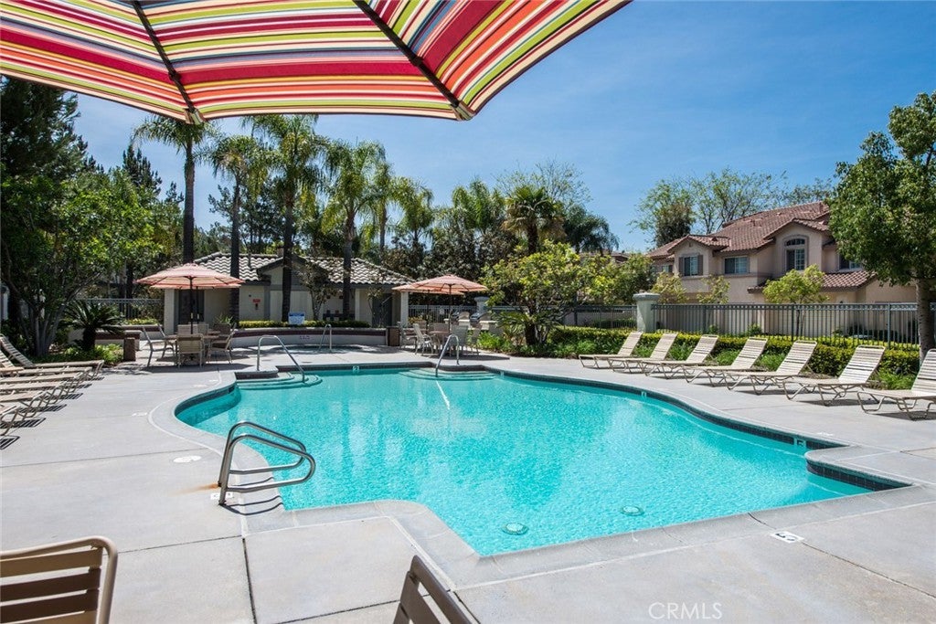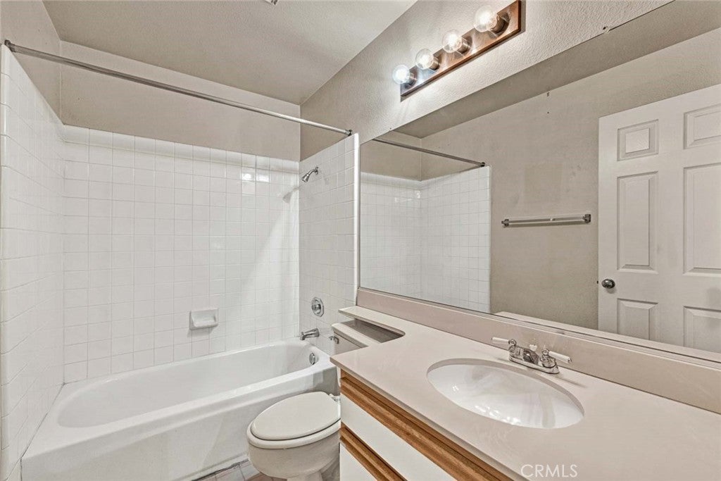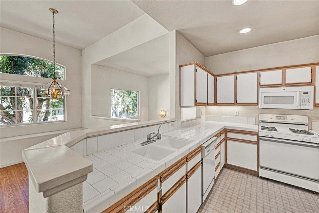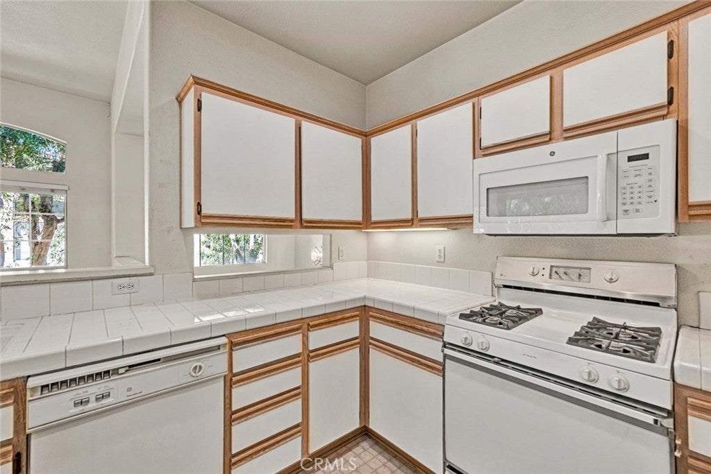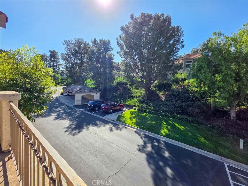 Upper-level 2 bedroom, 2 bathroom end unit in the gated community of Viewpointe North, ideally situated on Viewrim Drive, a peaceful single-loaded street with no neighbors directly across. This carriage-style residence offers no one above or below, with all living space located on the second level above the garage. Owned by the same owner for nearly 30 years, the property is priced well below market to reflect its current cosmetic condition, presenting an exceptional opportunity for buyers to update and customize while gaining instant equity. The open floor plan features a spacious kitchen open to the living and dining areas, a dining room with a charming window seat, and a living room with fireplace and private balcony. Peekaboo views are enjoyed from the side windows, along with serene greenbelt and mature tree views throughout the community. The primary suite offers double-door entry, two closets, and a generous bathroom with dual-sink vanity, walk-in shower, and private toilet area. Sizable guest bedroom and full guest bathroom with bathtub-shower combo. Additional highlights include an indoor laundry closet for full-size washer and dryer, a one-car garage with direct access, plus a one-car covered carport. Viewpointe North is a gated Anaheim Hills community perched near one of the area’s highest elevations, featuring two pools, five spas, and a clubhouse, surrounded by mature landscaping and tranquil walking areas. A rare value opportunity in a highly desirable community — ideal for buyers seeking location, layout, and upside potential.