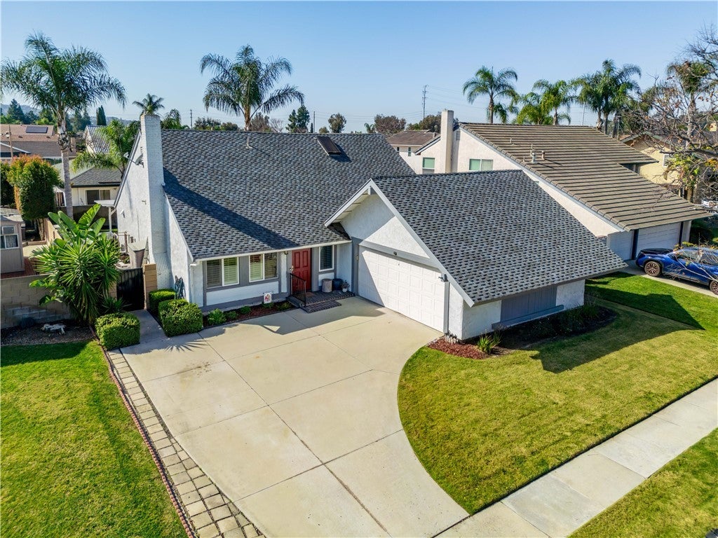 Expanded and thoughtfully upgraded, this beautifully maintained 4 bedroom 3 bathroom home offers 2,060 sq ft of mostly single level living on a generous 6,000 sq ft lot in one of Anaheim Hills’ most established and desirable neighborhoods. The open concept floor plan is bright and welcoming, featuring hardwood and travertine flooring, a spacious great room with fireplace, and an updated family kitchen with granite countertops, stainless steel appliances, ample cabinetry, and clear sightlines to the backyard. Dual pane windows, recessed lighting, and ceiling fans throughout enhance both comfort and energy efficiency. Three bedrooms, including the primary suite, are conveniently located on the main level, while a private upstairs bedroom with full shoawer bath provides ideal flexibility for guests, a home office, or multigenerational living. Outdoor spaces are designed for everyday enjoyment and entertaining, with a covered patio pergola, a large grassy yard, mature landscaping, a dedicated side yard garden area, and a detached storage shed for added functionality. The wide curved driveway offers abundant parking with potential RV or boat space in addition to the attached two car garage. Washer, dryer, and refrigerator are included. Ideally located near parks, hiking and biking trails, shopping, dining, and highly rated schools, with easy freeway access and the added benefits of no HOA and no Mello Roos, this home combines space, flexibility, and the relaxed lifestyle that defines Anaheim Hills living.