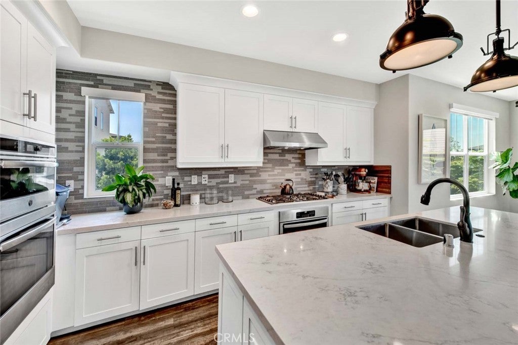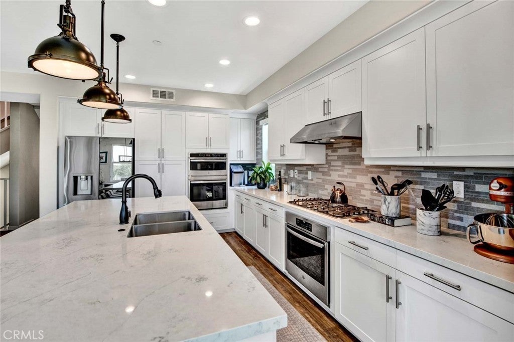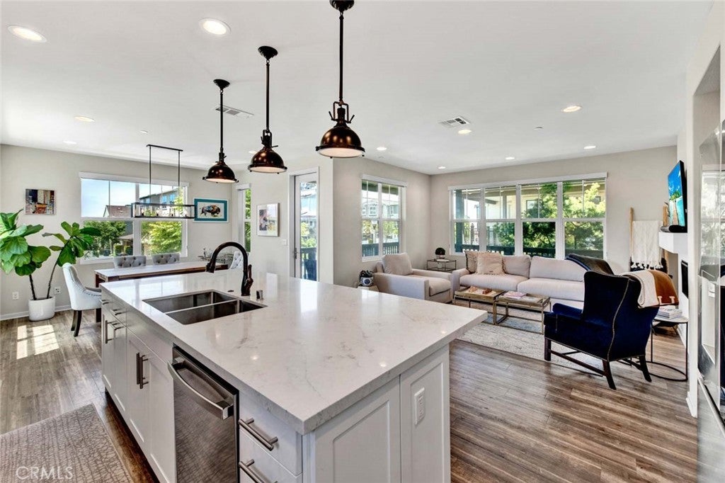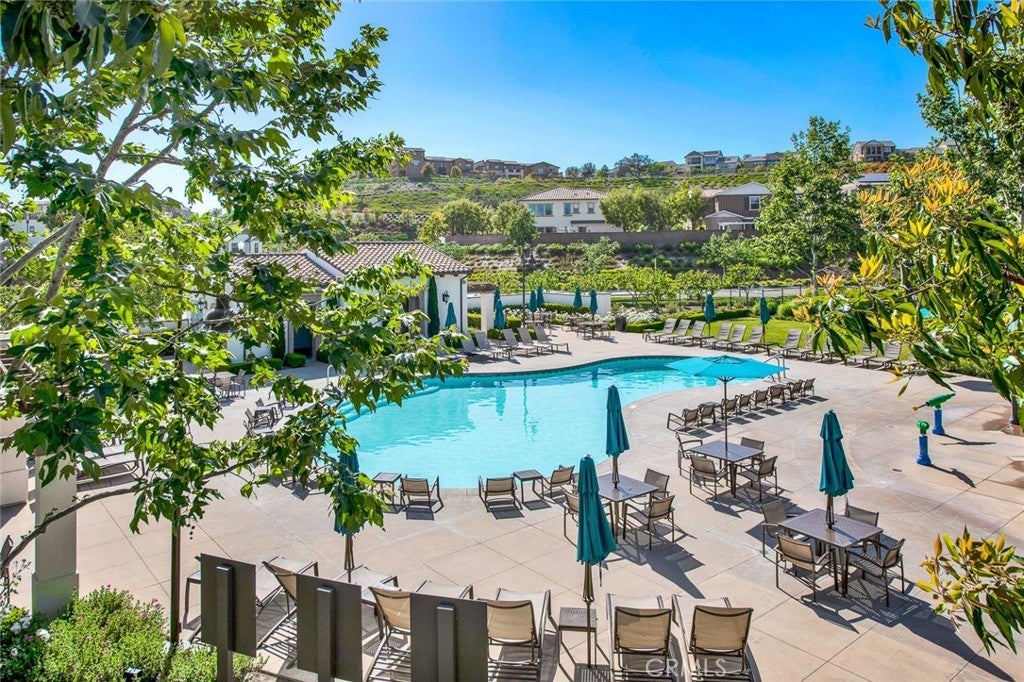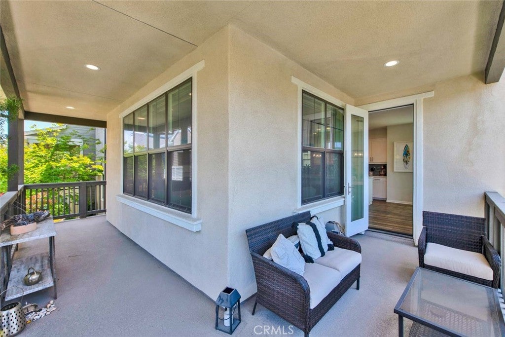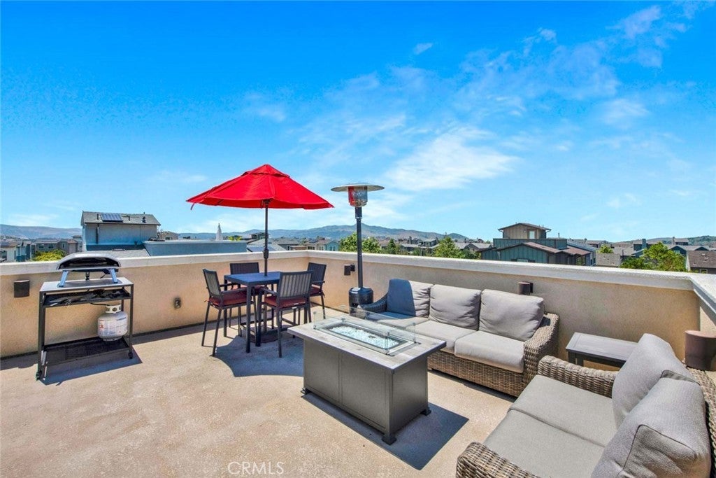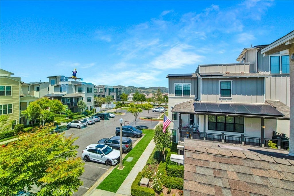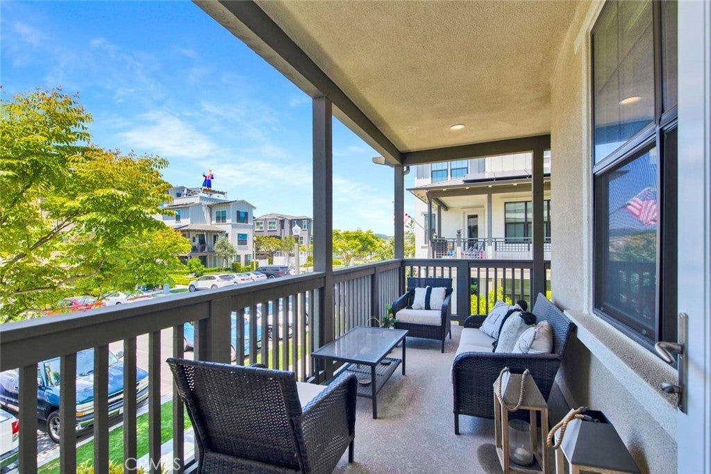 Fabulous multi-level home crowned with a huge roof top deck! In the Esencia development of Rancho Mission Viejo, this luxury living opportunity awaits! Fantastic amenities include Esencia Sports Park with baseball diamonds, soccer/football field & sports courts, several pools, clubhouses, parks, playgrounds and so much more! The entry of the home faces a lushly landscaped walkway between 2 rows of homes. There's a big porch at the entry that opens to a foyer with a bonus room or living area to the right and just beyond is ensuite bedroom currently used as an office. This can be a full living suite with a living area, bedroom suite with private bath with walk-in shower, a separate entrance and access to the yard with a putting green through double French doors. On the second level, you find an open concept living area with a grand gourmet kitchen with a large island offering bar seating for four. Stainless steel appliances include a 5 burner gas cooktop, 2 gas ovens, microwave oven, dishwasher and a French door refrigerator with water in the door. The kitchen also features pristine white Shaker style cabinets topped with quartz counter tops with a random pattern tile strip backsplash. There's a spacious dining room with a contemporary chandelier and access to the wrap around balcony. The adjacent living room has a fireplace and overlooks the wrap around front balcony. There are also powder and laundry rooms on this level. On the third level, there's a sumptuous owner's suite with a huge walk-in closet and an opulent private bath featuring a walk-in shower, double vanity, luxurious soaking tub and a privacy door to the commode. There are also 2 spacious secondary bedrooms with ample closet space that share a full bath. Another flight of stairs takes you to a wonderful roof top patio with an indoor wet bar, and abundant space for an outdoor seating area and a dining area, plus plenty of room for your outdoor appliances. There are 2 ground level patio areas including the putting green off the main floor suite and a lush garden area on the opposite side. The attached 2 car garage has direct access to the ground level foyer and an EV charger. For families with school age children, Esencia K-8 is within the development, and Tesoro High School is less than 10 minutes away! Nearby shopping & dining is also just minutes away. With so many things to do in your own neighborhood,you'll never want to leave! This is a wonderful place to call home. Come make it yours!