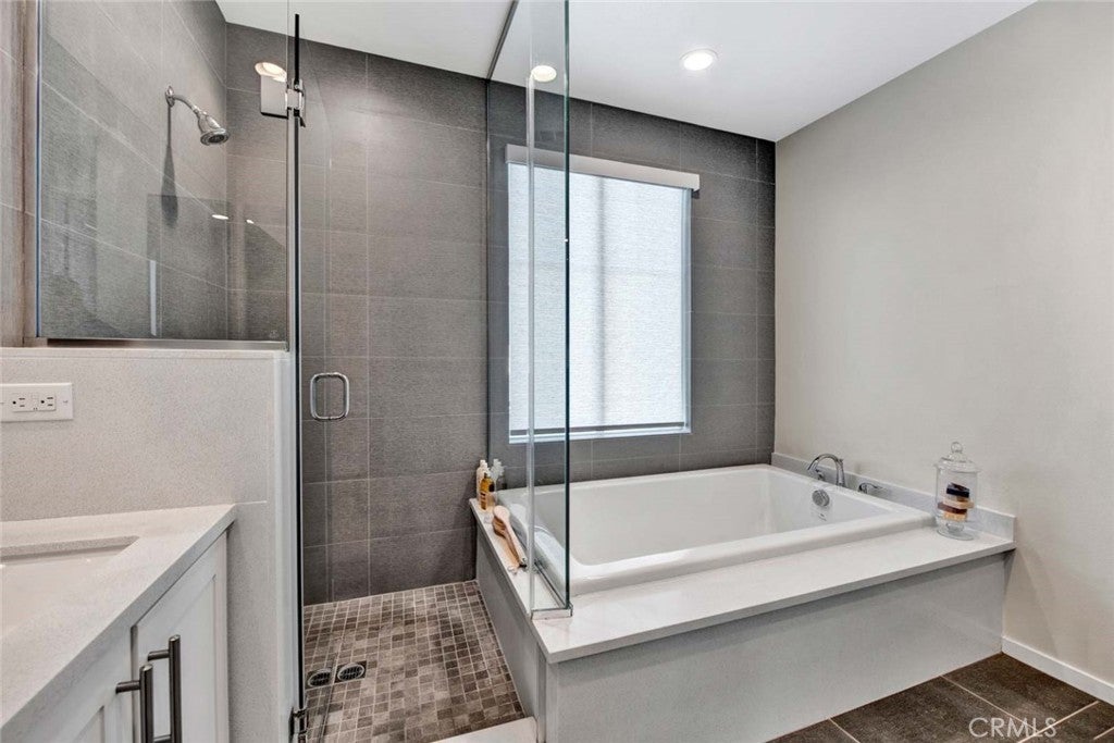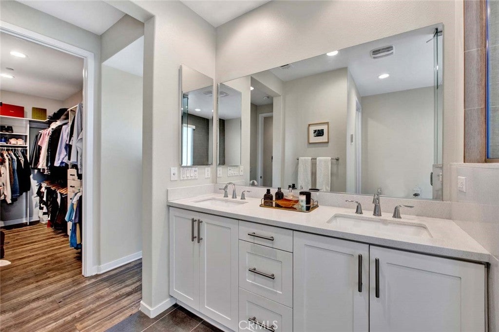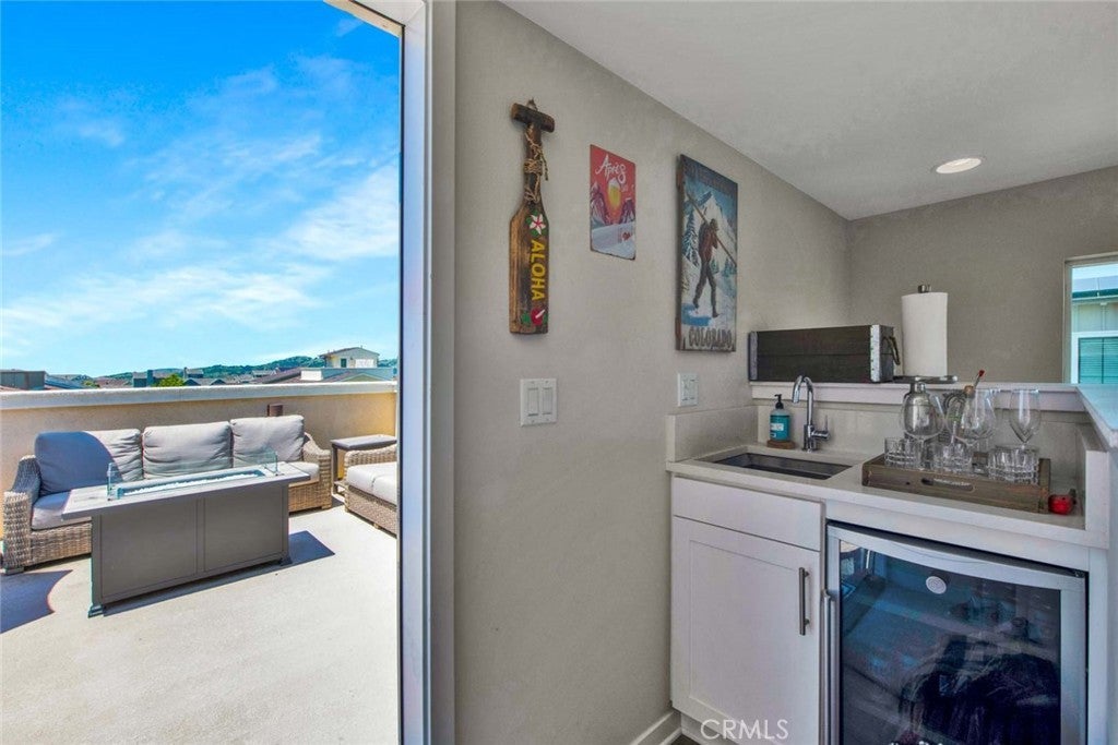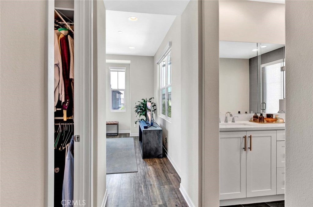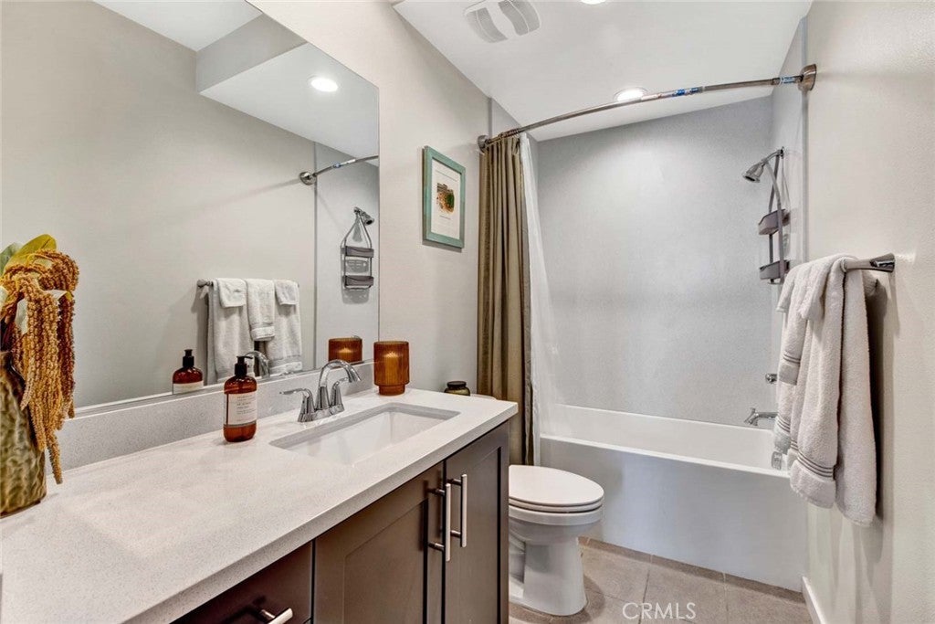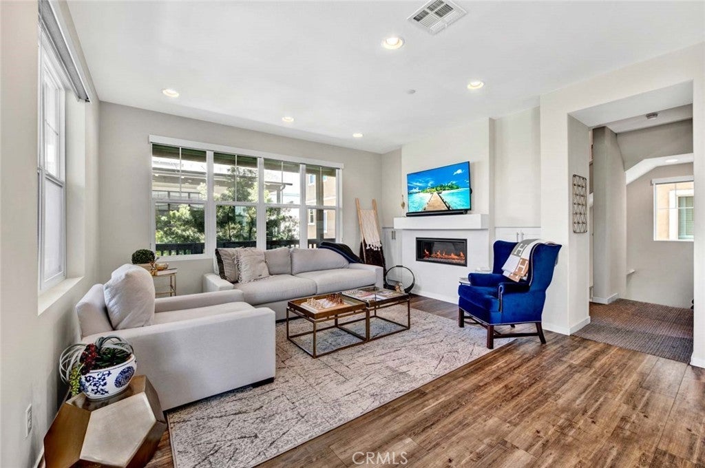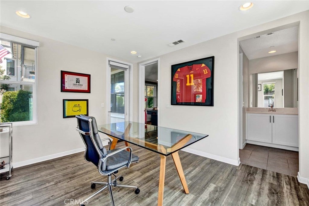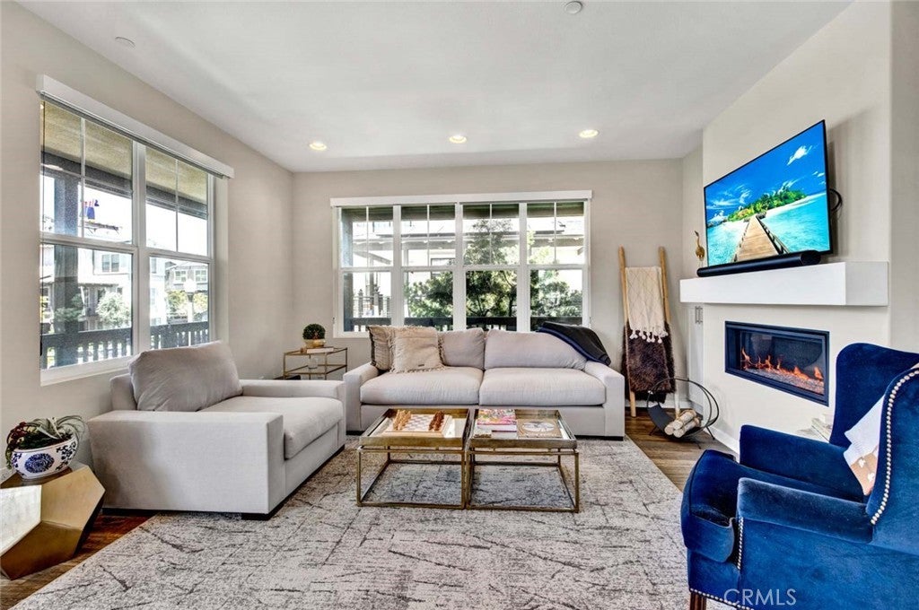 Fabulous multi-level home crowned with a huge roof top deck! In the Esencia development of Rancho Mission Viejo, this luxury living opportunity awaits! Fantastic amenities include Esencia Sports Park with baseball diamonds, soccer/football field & sports courts, several pools, clubhouses, parks, playgrounds and so much more! The entry of the home faces a lushly landscaped walkway between 2 rows of homes. There's a big porch at the entry that opens to a foyer with a bonus room or living area to the right and just beyond is ensuite bedroom currently used as an office. This can be a full living suite with a living area, bedroom suite with private bath with walk-in shower, a separate entrance and access to the yard with a putting green through double French doors. On the second level, you find an open concept living area with a grand gourmet kitchen with a large island offering bar seating for four. Stainless steel appliances include a 5 burner gas cooktop, 2 gas ovens, microwave oven, dishwasher and a French door refrigerator with water in the door. The kitchen also features pristine white Shaker style cabinets topped with quartz counter tops with a random pattern tile strip backsplash. There's a spacious dining room with a contemporary chandelier and access to the wrap around balcony. The adjacent living room has a fireplace and overlooks the wrap around front balcony. There are also powder and laundry rooms on this level. On the third level, there's a sumptuous owner's suite with a huge walk-in closet and an opulent private bath featuring a walk-in shower, double vanity, luxurious soaking tub and a privacy door to the commode. There are also 2 spacious secondary bedrooms with ample closet space that share a full bath. Another flight of stairs takes you to a wonderful roof top patio with an indoor wet bar, and abundant space for an outdoor seating area and a dining area, plus plenty of room for your outdoor appliances. There are 2 ground level patio areas including the putting green off the main floor suite and a lush garden area on the opposite side. The attached 2 car garage has direct access to the ground level foyer and an EV charger. For families with school age children, Esencia K-8 is within the development, and Tesoro High School is less than 10 minutes away! Nearby shopping & dining is also just minutes away. With so many things to do in your own neighborhood,you'll never want to leave! This is a wonderful place to call home. Come make it yours!