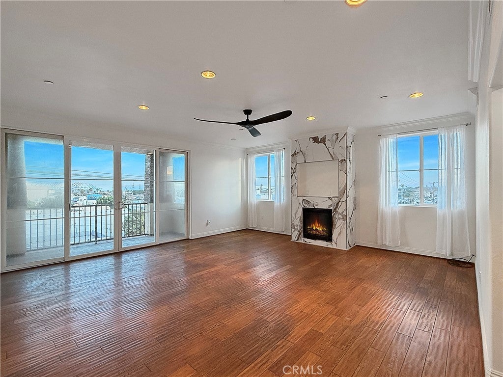 HERE'S THE TROPHY OF THE NEIGHBORHOOD: BEST BUY FOR A 2 BEDROOM 2 BATH CONDO IN SAN PEDRO, 2 SIDE BY SIDE GARAGE SPACES AND NO LAND LEASE! This Condo is Perched on the Top Floor and it features show-stopping coastal ocean views, elevated finishes, and a lifestyle that feels straight out of a luxury magazine. Spanning approximately 1,090 sq ft, this freshly painted 2-bedroom, 2-bath condominium is drenched in natural light and finished with rich wood and Italian tile floors, recessed lighting, and a striking Italian ceramic tile fireplace. Step through the sliding glass doors onto your private balcony and take in calming views. The kitchen commands attention with granite counters and backsplash, stainless steel appliances, gas stove, and custom wood cabinetry, while both bathrooms feature tile flooring, granite finishes, and glass-enclosed tiled tubs. The primary suite impresses with a walk-in closet and built-ins. Complete with in-unit laundry, two side-by-side underground parking spaces, and a rooftop deck boasting panoramic views, workout space, and entertainment seating, this is not just a home - it’s the coastal upgrade you’ve been waiting for.