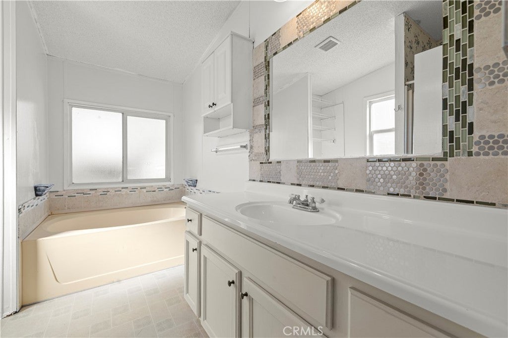 Great Opportunity to own this 3 Bedroom, 2 Bathroom House!! Built in 1999 Infinity Double wide Home in the distinguished area of Anaheim Mobile Estates. Featuring a NEW Roof , approximately 1,416 sq ft, an additional 2 BONUS ROOMS that can be used as a EXTRA BEDROOM, Office or reading room and if you need more space the house has an enclosed porch with laminated wood floors! This house is perfect for a family looking for extra room space. Upon entering, you are greeted by an expansive open floor plan accentuated by soaring cathedral ceilings and living room skylight. The spacious kitchen is both functional and stylish, featuring an island, formal dining area, a gas stove, and an abundance of cabinetry. The spacious Primary suite serves as a tranquil retreat, complete with a walk in closet, a private primary bathroom, separate shower and a SOAKING JACUZZI. The 3 bedrooms; each on the opposite side of the house offer a restful atmosphere. The Hall bath features a bathtub. The convenience of an inside laundry area with full-size washer and dryer adds to the home's practicality. The house has an outside 6'x8' shed for extra storage space. The Carport can accommodate up to 3 vehicles and there is additional marked guest parking throughout the park. Great location in Anaheim close to fine dining, shopping, entertaining and freeways. The Community amenities include a community pool, jacuzzi and clubhouse, enhancing the overall appeal of this beautiful property. Make this Spacious Mobile Home Yours Today!