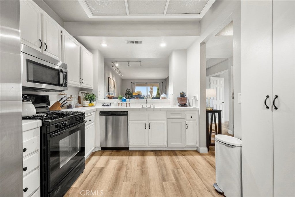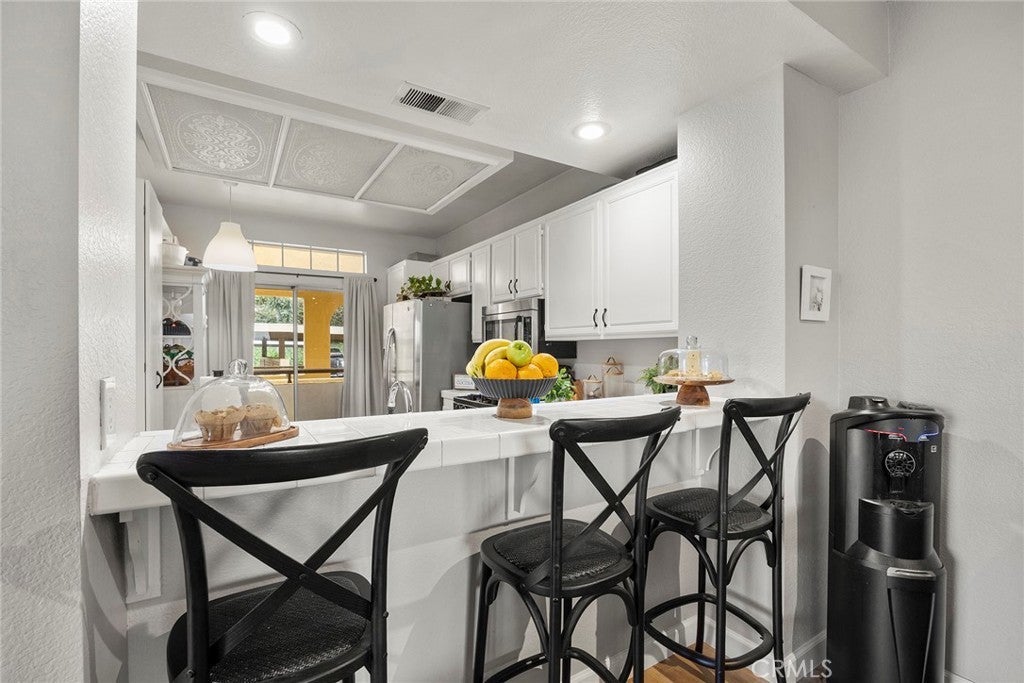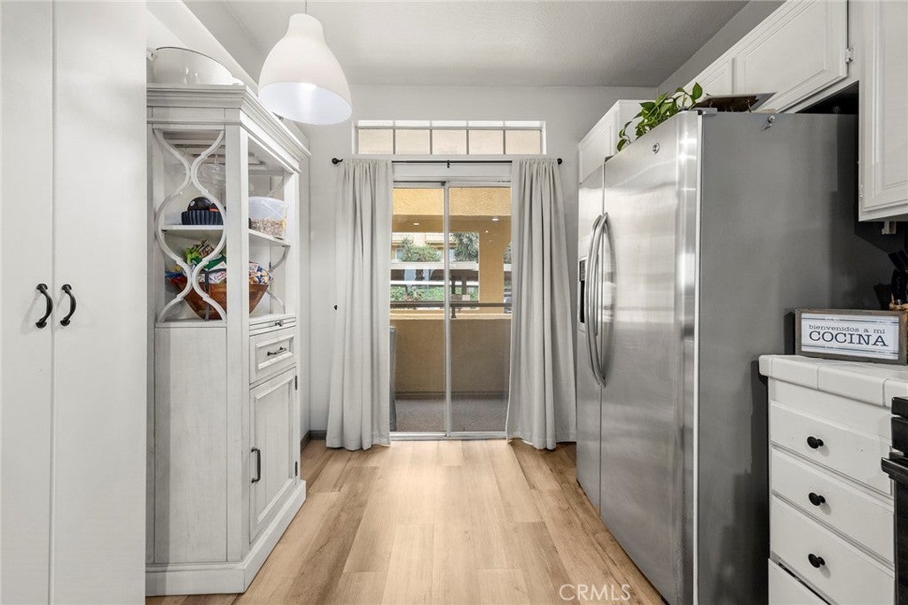 Welcome to the highly sought-after Spyglass Villas in Whittier, where comfort, style, and convenience come together in this beautifully upgraded 3-bedroom, 2-bathroom condo. Step inside to an inviting open layout featuring impressive 9-foot ceilings and an upgraded kitchen with crisp white cabinetry and countertops, and tasteful finishes that set the tone for the entire home. The second bathroom has been gorgeously remodeled with top-grade finishes. New luxury vinyl flooring creates a seamless flow throughout the living spaces, while the spacious living room—centered around a modernized fireplace—offers the perfect setting for relaxing or entertaining. The living room also opens to a private balcony with stunning sunset views. The spacious primary suite provides a touch of luxury with dual sinks and a gorgeous mirrored closet, while all three bedrooms are generously sized for comfort and flexibility. Additional highlights include indoor laundry, second and third balconies, and two dedicated parking spaces. Just steps away from your front door is a community pool and spa. Enjoy beautifully landscaped grounds and community recreational areas, ideally located near shopping, dining, entertainment, the Sycamore Canyon Trail--among others, and public transportation—just minutes from Uptown Whittier, Rio Hondo College and the 605 and 60 freeways. This home perfectly blends modern upgrades with everyday convenience—an exceptional opportunity you won’t want to miss.