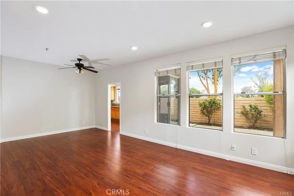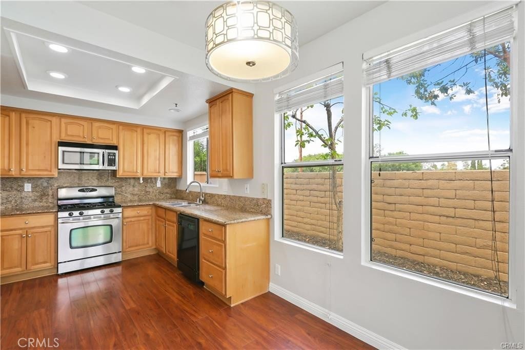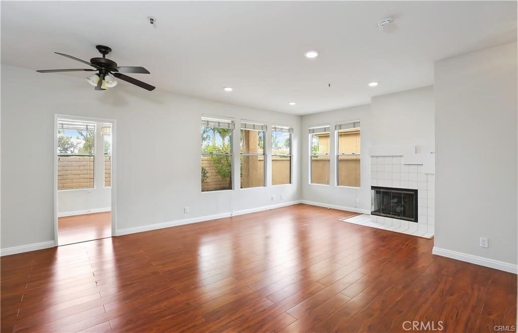 Welcome to Northwood Villas! This highly desirable 3 bedroom / 2 bathroom, one-level end unit offers a rare combination of comfort, privacy, and convenience. Situated in a private location backing to a lush greenbelt, this ground-level home features an oversized wraparound private backyard—perfect for relaxing, light gardening, or year-round BBQs. The spacious living room includes a cozy fireplace, ceiling fan, and peaceful views of the patio area. The backyard is accessible from both the kitchen and the primary bedroom, creating seamless indoor-outdoor living. The bright kitchen offers ample cabinetry, granite countertops with matching backsplash, and comes fully equipped with refrigerator, washer, and dryer included for tenant convenience. Adjacent is a sunny dining area ideal for everyday meals and gatherings. The spacious primary suite features dual vanities, an oversized soaking tub, and separate his-and-her closets. Two additional well-appointed bedrooms provide flexibility for family, guests, or a home office. Laminate flooring runs throughout most of the home. Inside laundry room with extra storage cabinets adds everyday functionality. Parking is a standout feature with a 2 car garage (1 direct-access attached garage + 1 detached garage space) plus ample guest parking nearby. Located in a highly convenient location, close to shopping plazas, restaurants, Irvine Valley College, and easy access to the 5 & 405 freeways. A wonderful opportunity to lease a private, single-level home in one of Irvine’s most sought-after communities!