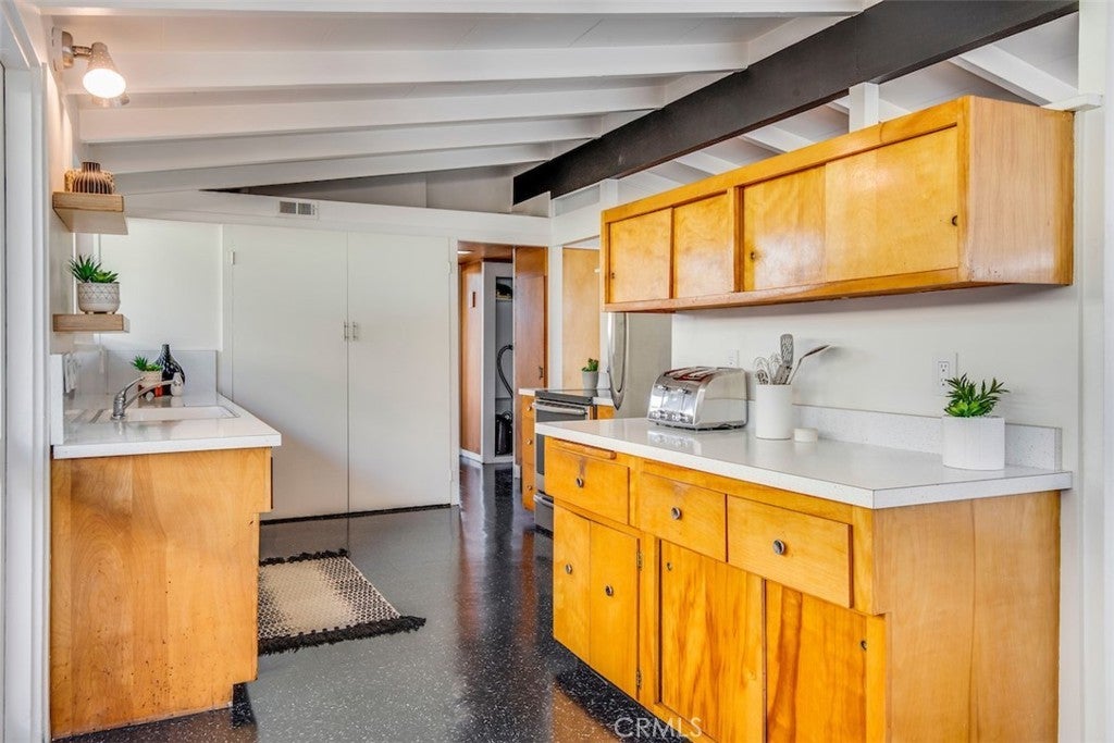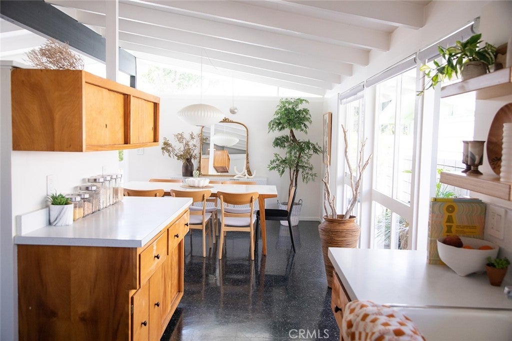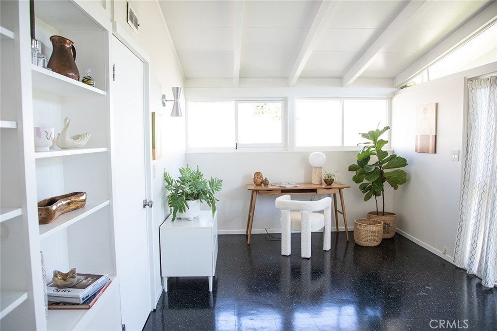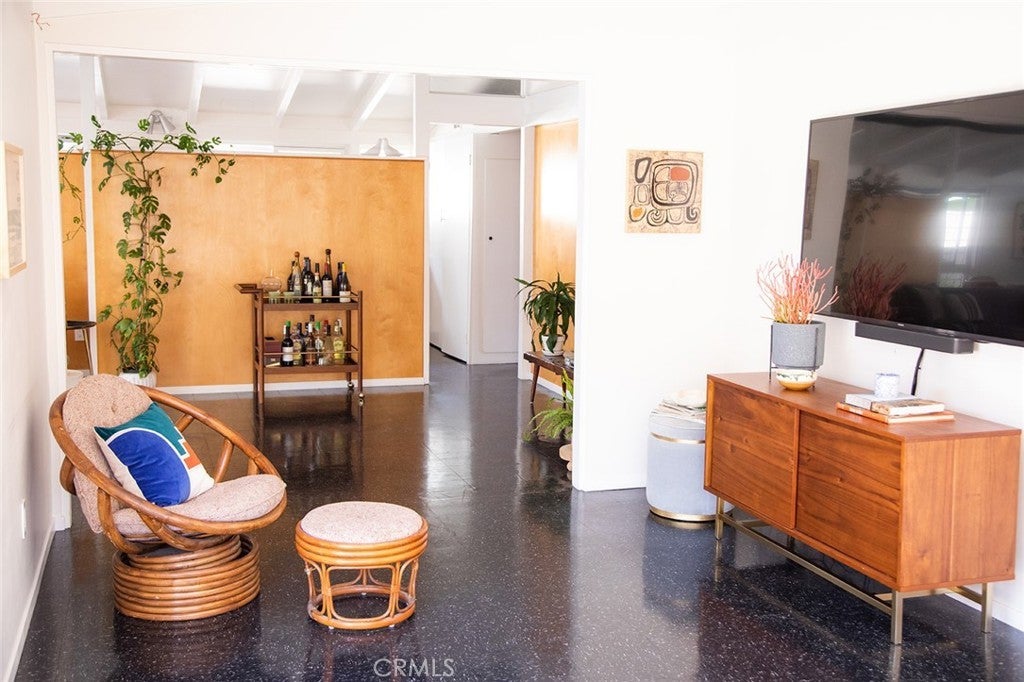 Enjoy the California dream in this fully furnished, Cliff May–designed Rancho residence, where signature open-beam ceilings, rich birch paneling, and walls of glass set the tone for easy indoor-outdoor living. Available for a 6 to 8 month lease, the home offers two bedrooms and two bathrooms, a generous kitchen, dining area, welcoming living room, and a separate family room or office—perfect for working remotely or curling up with a book. The expanded primary suite provides extra closet space and an enlarged bath, creating a private retreat within the home. Central heating and air conditioning offer modern comfort, while the home’s placement on a 6,120-square-foot lot extends the living area to private outdoor living zones, ideal for entertaining or quiet reflection. Located within the iconic Rancho Estates—known for its strong sense of community—the home is just moments from 800-acre El Dorado Park, offering access to golf, tennis, lakes, open green space, and a bike path to the beach.