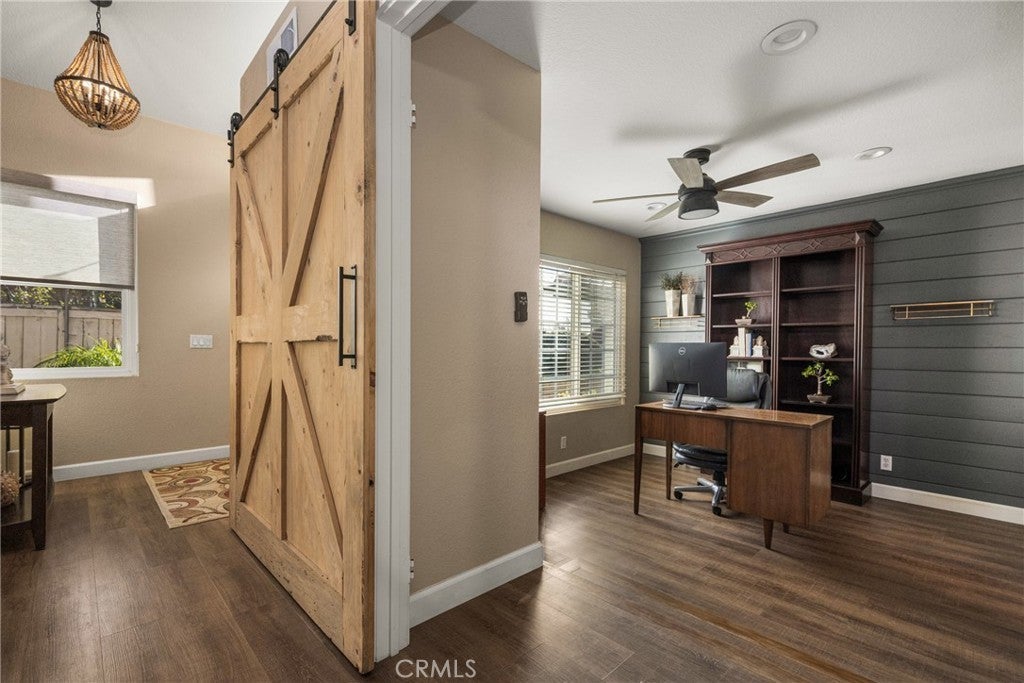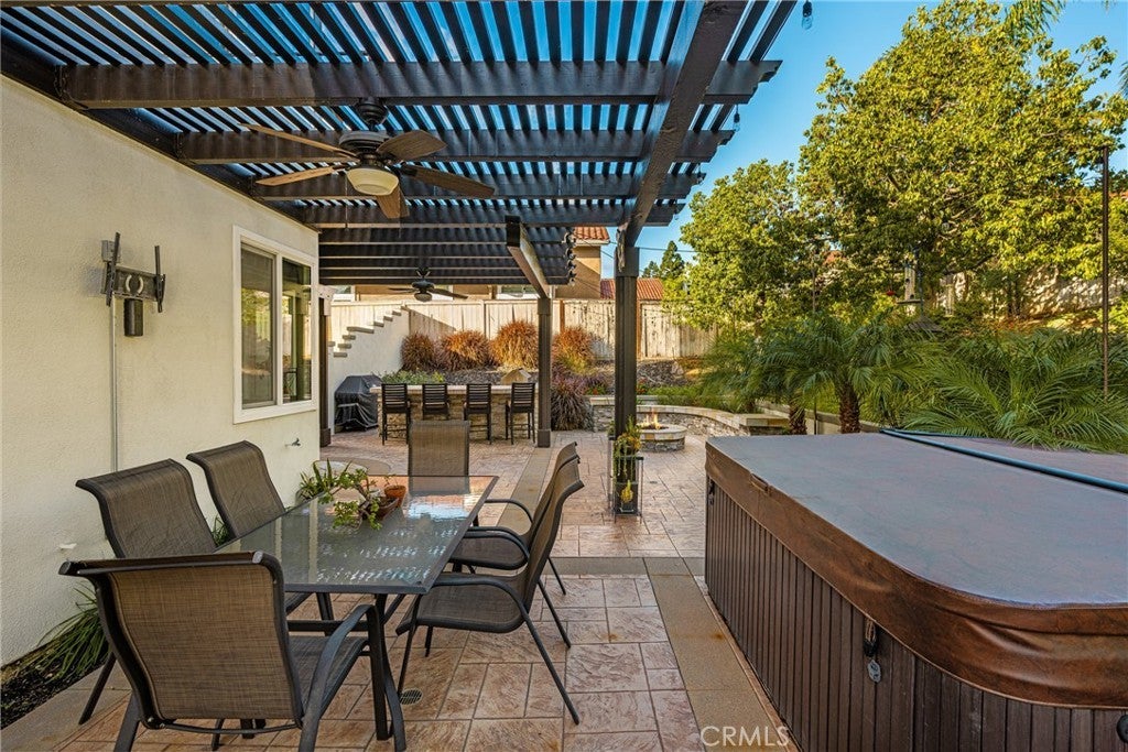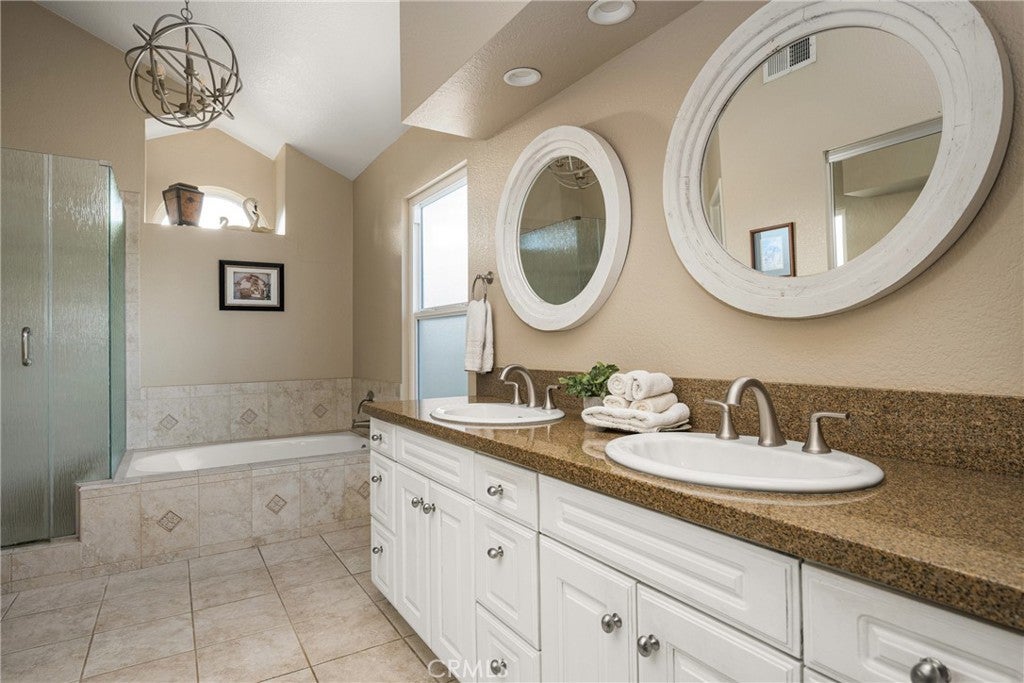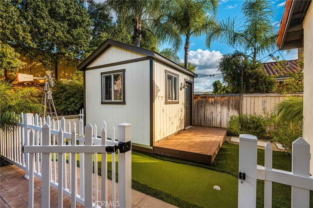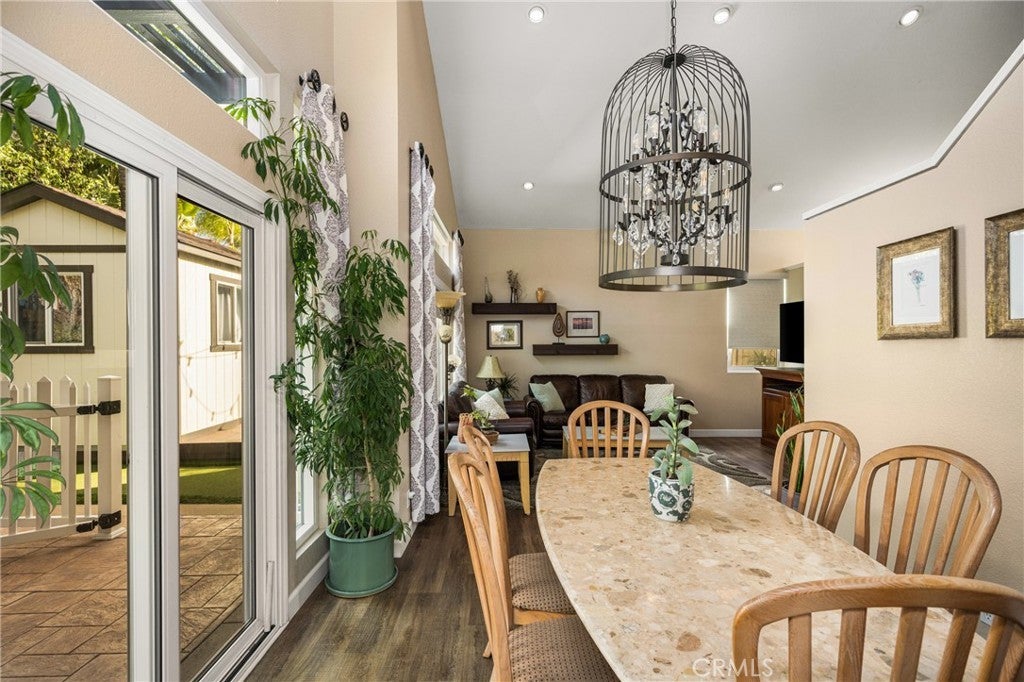 Come and check out this gorgeous home on a quiet street in the desirable Bryant Ranch area of Yorba Linda. This home is a must see for anyone looking to move into this sought after neighborhood. With an open floor plan boasting an abundance of windows and natural light, you walk in feeling at home. The 2203 sq ft., featuring 4 bedrooms and 3 baths, plus a fully finished 120 sq. ft. detached structure with AC that makes a great office or craft room. The 3-car garage also has ample storage space above and there is RV parking along the side with a sewage disposal. This home has been updated throughout with many great designer finishes. Waterproof vinyl plank flooring throughout. The beautifully updated kitchen has 10' ceilings, a large island that is great for entertaining, and white quartz countertops with thick countertop edges. The bathrooms have been updated with quartz and granite countertops. The recessed LED lighting comes equipped with smart color changing LEDs in some areas. There are also vaulted ceilings in the living room, dining room, and primary bedroom. The home offers a downstairs bedroom and bath. The spacious primary bedroom features a sitting area, large walk-in closet, double sinks, and separate tub and walk-in shower. There are also dual pane energy efficient vinyl frame windows throughout the entire house. There is a newer HVAC unit, a whole-house water softener system, and a newer water heater. This gorgeous backyard features stamped concrete, a large patio cover with ceiling fans, beautiful hardscape with stacked stone, artificial turf with putting green, above ground spa, fire pit, and a built-in BBQ with bar seating. The neighborhood also features Excellent Award-Winning Schools and is freeway close!
