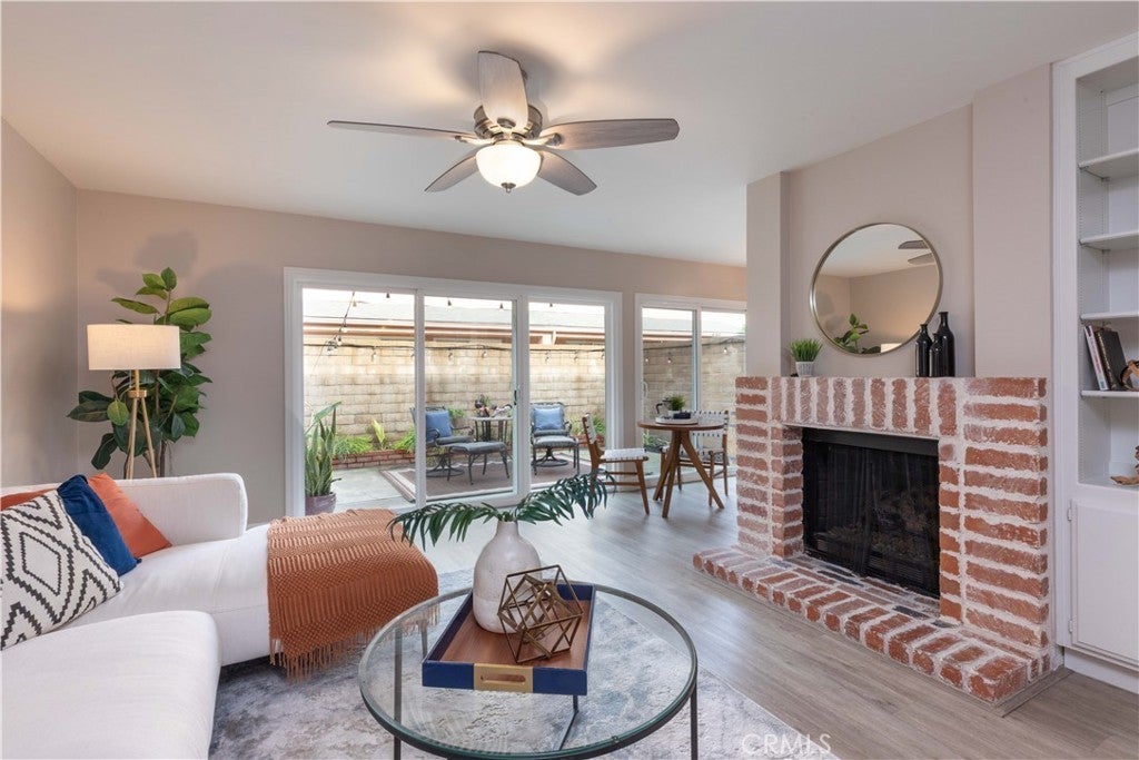 Wonderful opportunity to own this freshly painted, 3 bedroom, 2.5 bath townhome located in the highly desirable Northwoods Village community! This beautiful townhome offers a spacious living room with a wall of newer sliding glass doors which open to your private patio. The living room also features a brick fireplace and built in bookshelves which creates a lovely ambiance. (the gas has been capped off and the logs remain) The galley kitchen has plenty of storage with room for a cafe table at the end that overlooks the patio, with its own set of sliding glass doors. The other end flows into your dining room. 1459 square feet of living space is quite roomy and includes it's own laundry room with your side by side washer & dryer. Newer HVAC , upgraded windows, water heater, and more! Upstairs you will find an oversized primary bedroom with an open concept for a walk-in closet sporting it's own chadelier, and of course, your own bath room with an updated vanity. The additional 2 bedrooms have closet inserts allowing opportunity to stay organized! A full bath is also upstairs with a 1/2 bath on the first floor. The 2 car garage is not only private and attached to your home, it has direct access to your home! The complex has a pool, spa and club house. Conveniently located near the 91 and 5 freeways, churches, schools, shopping and public transportation. This is a fantastic place to call home! Don't miss out! Community pool & spa. Move in ready! New to the market.Don't Miss Out!!