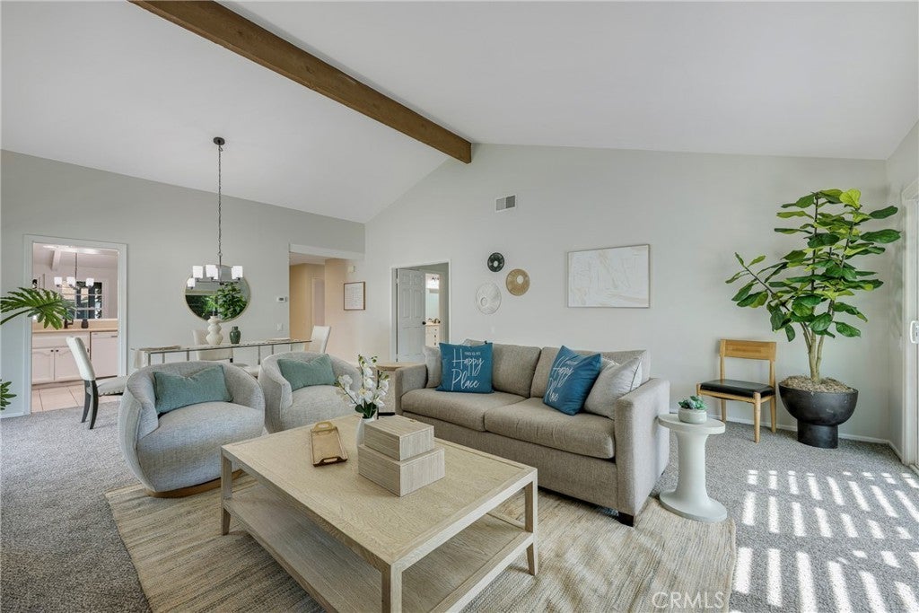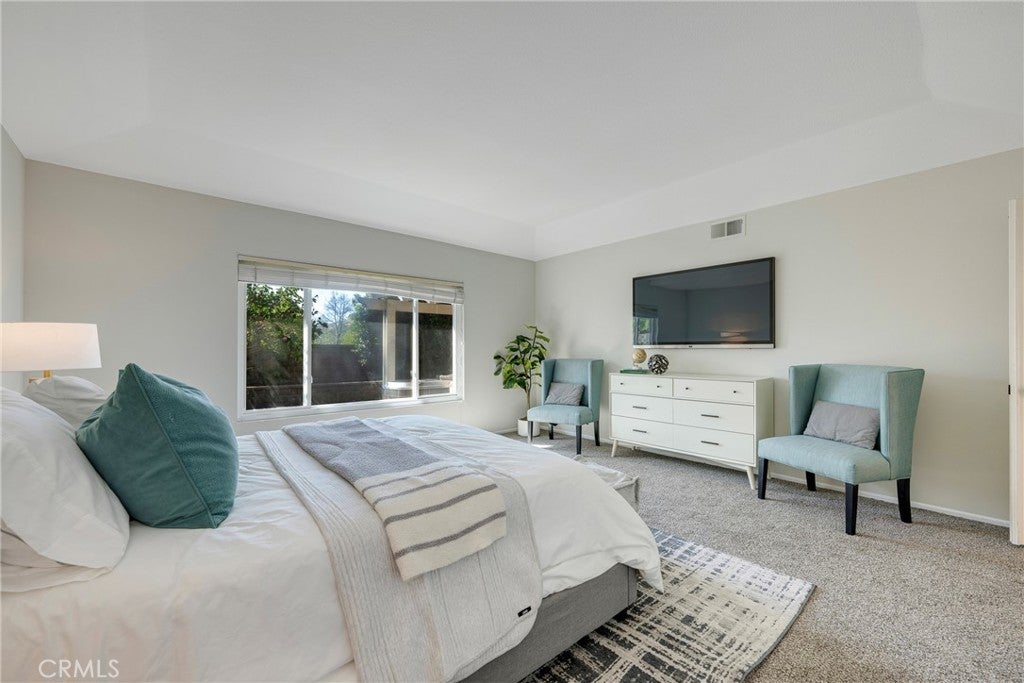 Located on a quiet cul-de-sac in the highly desirable Travis Ranch community of Yorba Linda, 21182 Via Este Drive offers a rare blend of privacy, natural beauty, and everyday comfort. With direct access to nearby walking trails and greenbelts, this neighborhood is known for its peaceful streets, scenic foothill surroundings, and a true sense of calm. Thoughtfully positioned to capture natural light, the home opens into spacious living and dining areas highlighted by vaulted ceilings, a cozy fireplace, and dual sliding glass doors that create an effortless indoor-outdoor connection. At the heart of the home, the light and airy kitchen features crisp white cabinetry paired with stone countertops, recessed lighting, a charming breakfast nook, and a convenient breakfast counter. A wall of windows overlooks the front yard, filling the space with soft morning light and views of the surrounding greenery. The primary suite serves as a tranquil retreat with high ceilings, generous proportions, dual closets including custom built-in storage, and a well-appointed en-suite bath complete with a soaking tub, separate walk-in shower, and dual-sink vanity with stone countertop. A spacious secondary bedroom offers exceptional versatility, easily accommodating guests, a home office, or creative space. The updated hall bath is finished with porcelain wood-grain tile flooring, a stone countertop, and a shower/tub combination. Step outside to a private backyard designed for relaxation and easy maintenance. Artificial turf, block walls, and an alumawood patio cover create a clean and inviting outdoor setting, while mature fruit trees offer a reminder of why Southern California living feels so special. With no neighbors directly behind, the space feels open and serene. Fresh new carpet, newer windows and doors, an updated HVAC system, and a whole-house water conditioner enhance comfort and efficiency throughout. Beyond the home itself, Travis Ranch is cherished for its quiet atmosphere, beautifully maintained greenbelts, and immediate access to walking and hiking trails through Yorba Linda’s foothills. Zoned for Travis Ranch Elementary and Middle School and conveniently close to parks, shopping, and commuter routes, the location balances tranquility with accessibility. This is more than a two-bedroom home, it’s an opportunity to live in one of Yorba Linda’s most serene and established communities. 21182 Via Este, You WILL LOVE Living Here!