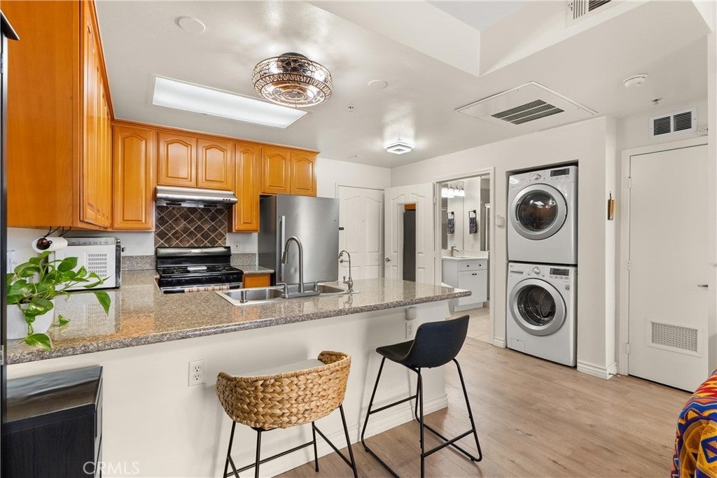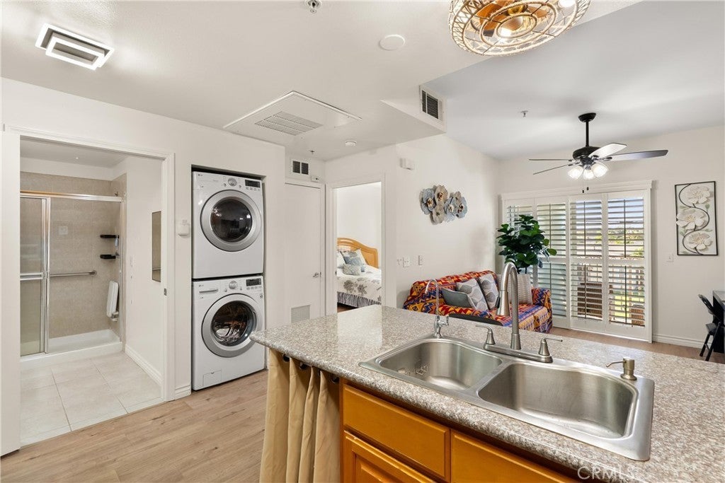 SENIOR COMMUNITY (55+) — Fully Furnished & Move-In Ready. Welcome to comfortable, low-maintenance living in this thoughtfully upgraded and fully furnished home, ideally located near 99 Ranch Plaza in Artesia. Designed to maximize every inch of space, this residence features smart additions and functional storage solutions rarely found in similar homes. The open living area flows to a private outdoor balcony, complete with two large storage units for added convenience. Inside, you’ll find a spacious primary bedroom furnished with a king-size bed and large walk-in closet. A beautifully updated bathroom with a walk-in shower and elegant vanity. Unique to this home is a modernized water heater closet featuring a tankless system that creates additional storage space. All appliances are included (refrigerator, washer, dryer, stove, microwave, toaster oven, dishwasher) making your move seamless and stress-free. Enjoy peace of mind within a gated community offering secured access, security cameras throughout each building, and a warm, welcoming atmosphere. Residents also benefit from a clubhouse, beautifully landscaped green spaces, and easy access to major freeways, dining, and shopping. Rent includes water, trash, internet, and HOA dues — providing exceptional value and convenience. Schedule your showing today and experience easy senior living at its best!