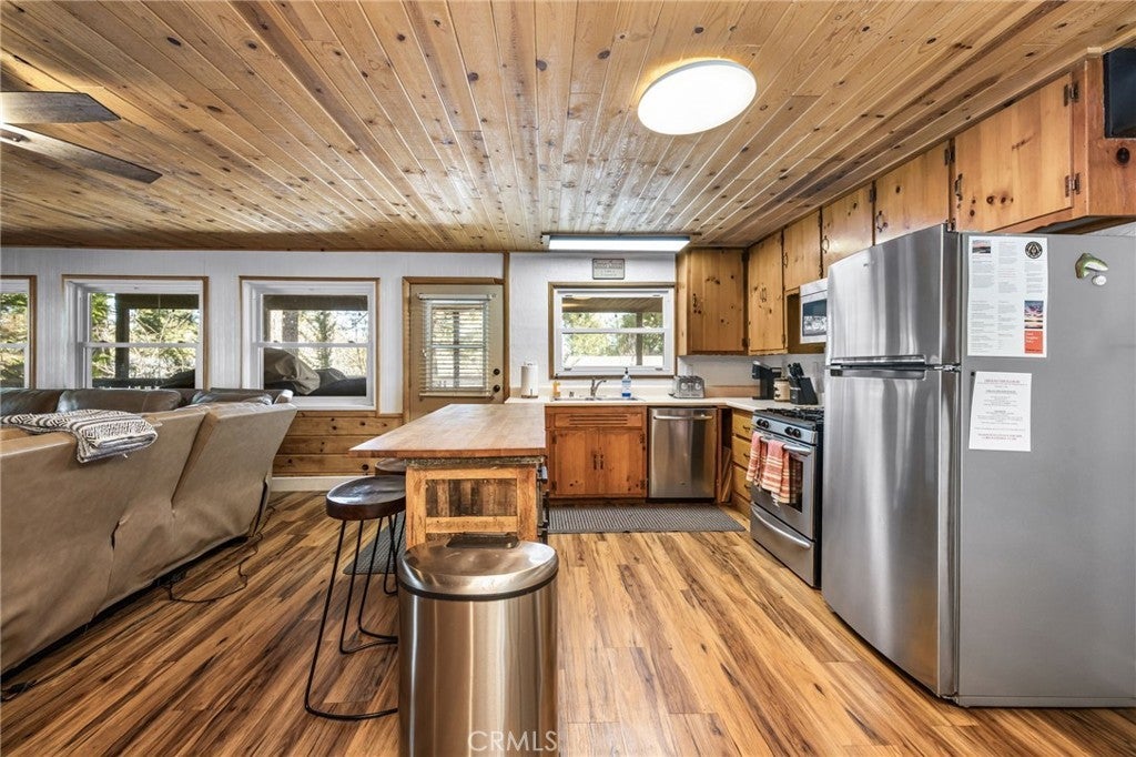 Welcome to your mountain retreat in the highly desirable Boulder Bay community of Big Bear Lake. Nestled among the beauty of the San Bernardino Mountains, this spacious cabin-style home offers 5 bedrooms, 3 bathrooms, and approximately 1,930 square feet of comfortable living space — perfect as a full-time residence, weekend getaway, or income-producing vacation rental. Step inside and enjoy the warm and inviting living area featuring a cozy fireplace, creating the perfect setting for relaxing after a day on the lake or slopes. The beautiful kitchen showcases stainless steel appliances and flows nicely into the main living and dining areas, making entertaining easy and enjoyable. Outside, the expansive front deck invites you to soak in the mountain air, host afternoon BBQs, or enjoy snowy winter days building memories with family and friends. Ideally located near the lake, this home offers the best of Big Bear living — outdoor adventure, peaceful surroundings, and year-round recreation right at your doorstep. Whether you’re looking for a serene mountain escape or a property with strong vacation rental appeal, this Boulder Bay gem captures the essence of cabin living in one of Big Bear’s most sought-after neighborhoods.
