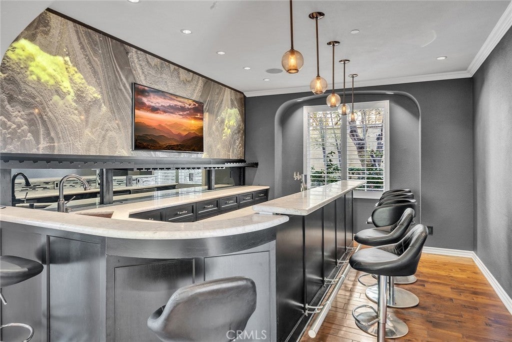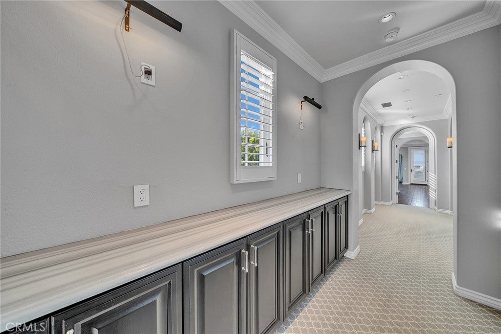 Beamed Ceilings, Wet Bar, Built-in Features, Balcony, Crown Molding, Separate/Formal Dining Room, Eat-in Kitchen, High Ceilings, Stone Counters, Smart Home, Wired for Sound, Jack and Jill Bath, Primary Suite, Walk-In Closet(s), Coffered Ceiling(s), Dry Bar