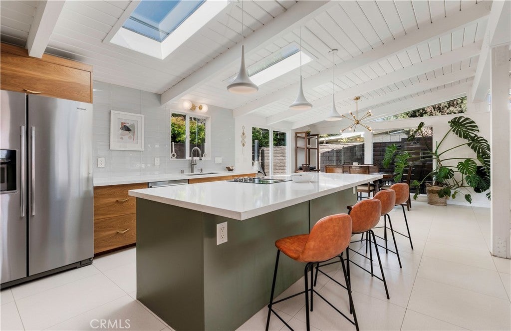 This is a furnished lease in the renowned Rancho Estates of Long Beach, a unique oasis of midcentury modernism in the greater landscape of Southern California. Privately situated behind a fenced yard, this serene residence designed by acclaimed architect Cliff May features three bedrooms, three bathrooms, a bright and open great room with island kitchen and breakfast bar, a living room that opens to a sparkling pool, and abundant natural light throughout. The residence was extensively upgraded by the owners to expand the living area and equip it with modern comforts, including central air conditioning and heat, a laundry room and pantry, improved insulation, modern appliances, and more. The lease also includes a bonus detached office/studio space in the west half of the garage that is equipped with its own bathroom with shower. The home is being leased with the furnishings, and will be available for move in at the beginning of April, 2026. There is secure off-street parking with room for multiple cars on the driveway behind the fence, which is accessed through an automated rolling gate. This is a unique opportunity to live in classic midcentury architecture in one of Southern California’s most renowned neighborhoods.