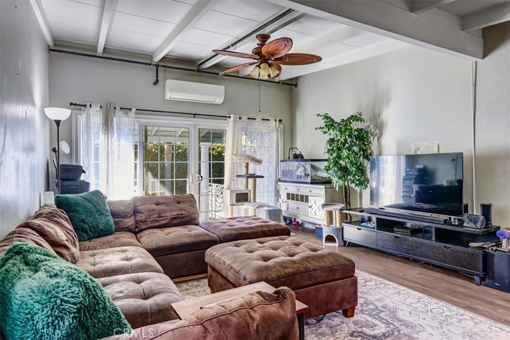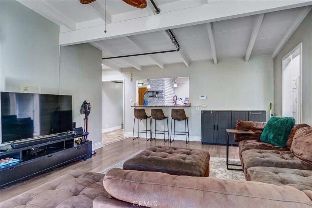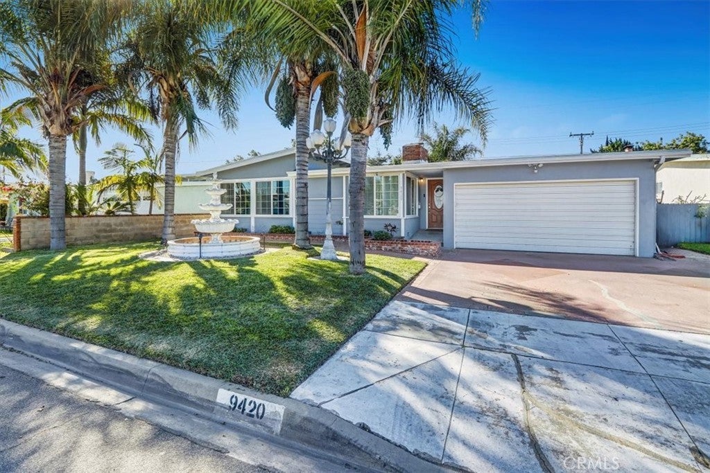 Wonderful Sprawling One-Story Ranch Rambler w/ Modern Updates in Walkable Area to St. John Bosco High School & Thompson Park ! Great Floor-Plan w/ Primary Bedroom & 2 Guest Bedrooms and Main Bathroom separate from the Family Room w/ Gas Fireplace, or could be Formal Dining Room, and Den ( used as a 4th Bedroom) in the Front of the Home. Beautiful Curb Appeal w/ NEW Exterior Paint & Stunning Fountain Front. Formal Entry leads right into the Family / Dining Room & Den/Office/or 4th Bedroom. Updated Kitchen straight ahead w/ Granite Counters, Garden Window, Stainless Steel Appliances and Lots of Maple Cabinets ! Large Laundry Room off of Kitchen w/ Utility Sink and Rear Door to Back Entertainment Patio. 2nd Bathroom w/ Shower located here too ! Main Living Room or GREAT ROOM off of Kitchen w/ Beamed Ceilings and Double Sliders & Cool A/C Mini-Split.... Updates thru-out home include Light Grey Laminate Wood Floors, Skylights, Dual-Pane Windows, Decorative Tiling, Designer Backsplash, Recessed Lighting AND Newer Electrical Panel ! Fenced in Rear Yard w/ Grass, Patio BBQ Area Entertainment Area too ! *** PREVIOUS OWNER PERMITTED HOME AS A "RCFE"- RESIDENTIAL CARE FACILITY FOR ELDERLY *** This gives MANY options for Handicap Accessible Floorplan ! Double Car Attached Garage and Pass-thru in rear to Covered Patio w/ Stamped Pavers ( Great for Car Enthusiasts ! ) There is even a TESLA NEMA 14-50 PLUG in Garage too ! All of this AND close freeway access to 91, 105 & 605 Freeways, Bosco High School & Kaiser Hospital Bellflower !