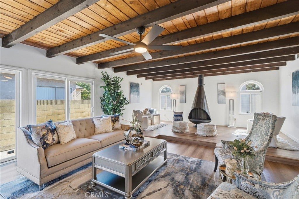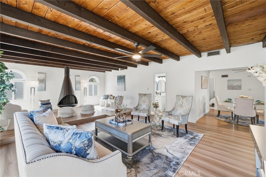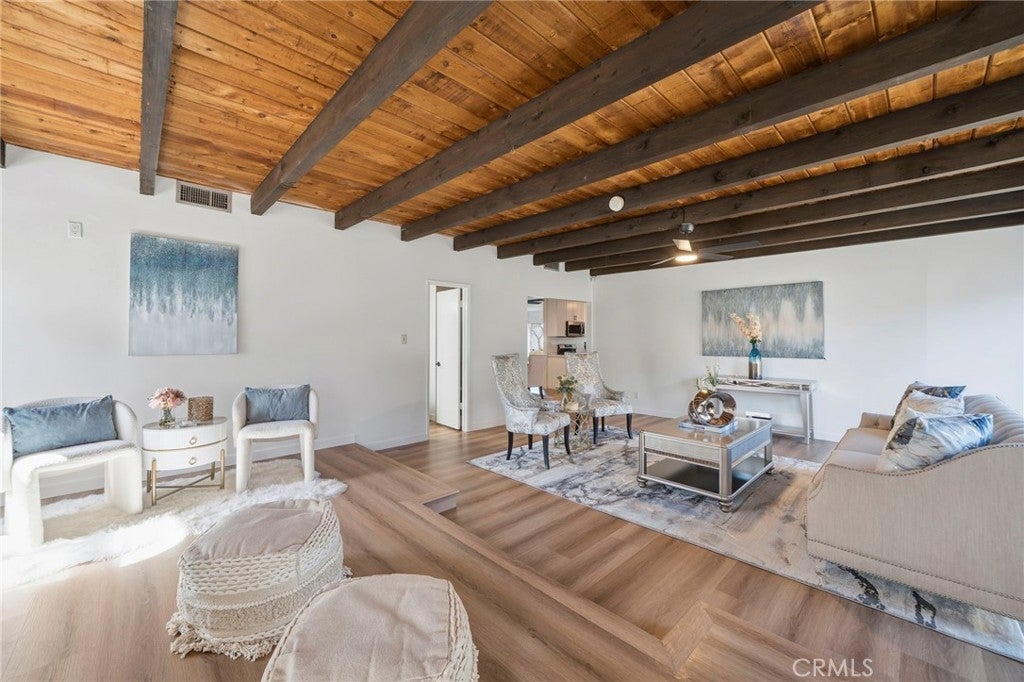 Cerritos: Newly Upgraded Single Level Home - Ideally situated on a quiet interior street, this beautifully upgraded 1,569 square foot single-story home offers three bedrooms and two baths. This residence has been extensively upgraded and thoughtfully refreshed throughout. Upon entry, you are welcomed by a formal living room with a cozy fireplace and adjacent dining area, creating an inviting space for both everyday living and entertaining. The home’s expanded family room is a standout feature, offering vaulted ceilings and a second fireplace. This generous area creates an open and airy atmosphere. Dual-pane sliding glass doors provide seamless access to the backyard and allow natural light to fill the space. The all-new kitchen showcases brand-new cabinetry, elegant quartz countertops, a new sink and fixtures, and stainless-steel appliances including a refrigerator, microwave, stove, and oven. Both bathrooms have been upgraded with new vanity cabinets and modern fixtures, adding a fresh and contemporary feel.Additional Upgrades: Brand new two-tone interior paint throughout. New custom carpet enhances the bedrooms, while wide-plank luxury vinyl-wood flooring extends throughout the main living areas, providing durability and style. Additional improvements include a brand-new roof over the extended family room and a brand-new 200 amp electrical panel, offering added peace of mind. The spacious backyard provides a wonderful setting for relaxing or entertaining guests. Located within walking distance to highly rated Nixon Elementary School, this home offers not only exceptional upgrades, but also an outstanding Cerritos location.