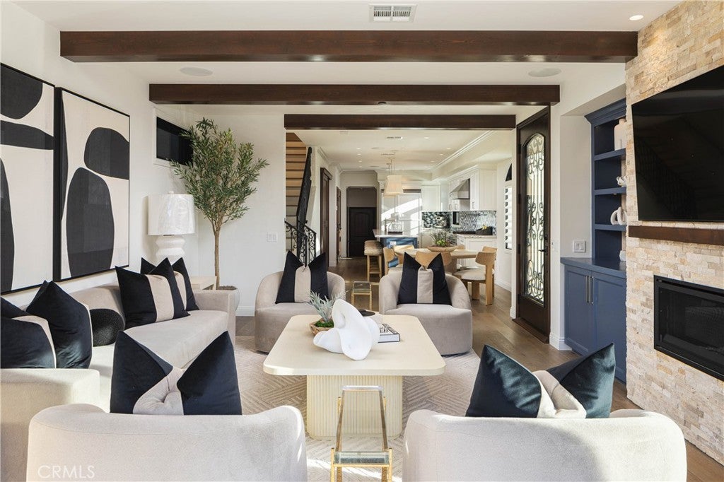 Elevated Coastal Living in the Heart of Huntington Beach. Located just two blocks from the beach, 302 3rd Street delivers newly built Modern Mediterranean style in an exceptional coastal setting. Crafted by Thomas Price Custom Builders, this multi-level residence offers approximately 3,747 square feet of interior space, a fully permitted private ADU, and nearly 1,900 square feet of elevated outdoor living with panoramic city views and glimpses of the Pacific. The home blends warmth and sophistication with French wire-brushed hardwood floors, custom millwork, Realstone Systems fireplaces, and a refined combination of Dolce Vita quartzite and Cambria quartz surfaces. Designer lighting and curated finishes add depth and character throughout. The primary suite is designed as a peaceful retreat, featuring heated floors, a floating vanity, spa-inspired bath, and private fireplace. The chef’s kitchen is equipped with a Viking 5 Series appliance package, warming drawer, ice maker, and tailored cabinetry suited for entertaining and everyday living. The detached ADU mirrors the quality of the main home with its own upscale kitchen and modern finishes, ideal for guests or flexible living arrangements. Outdoor spaces span multiple levels, including a third-floor terrace with a built-in kitchen, pizza oven, kegerator, beverage center, fireplace, and heaters. The rooftop deck, over 930 square feet, offers sweeping views, a 2024 Sundance Spa, fire features, and reinforced structural capacity for future enhancements. Additional highlights include a Control4 smart home system, multi-zone HVAC, whole-home audio, a five-stop elevator, and parking for five vehicles, including an EV-ready two-car garage. Moments from the Huntington Beach Pier, Pacific City, and Main Street, this home captures the essence of elevated coastal living.