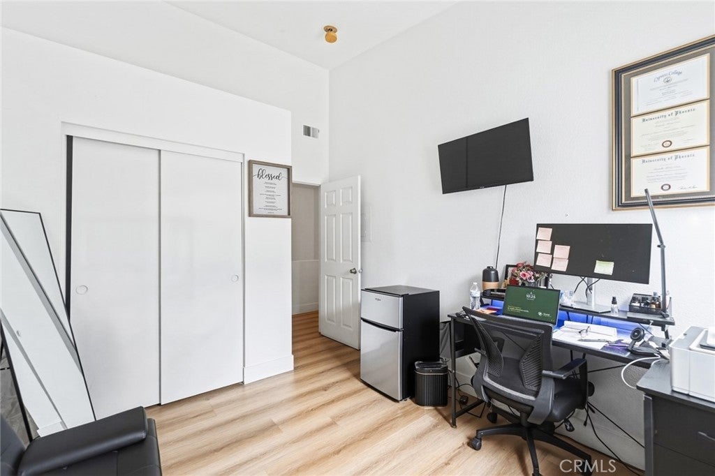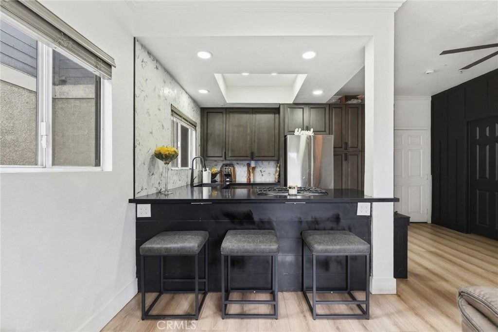 A fully remodeled kitchen anchors this three-bedroom multi-level home at 7361 8th Street, Unit 4, in the city of Buena Park, where new cabinetry, countertops, plumbing, and recessed lighting work together to create a cohesive and finished space. New vinyl flooring runs throughout the first floor, while updated flooring on the stairs and in the bedrooms carries the same sense of continuity upward through each level. Fresh baseboards and new door hardware bring a level of polish to the details that often get overlooked in a renovation. The living area includes a tiled fireplace, and fresh interior paint throughout ties the custom accent features and modern finishes together into a consistent look. The lower bathroom has been renovated as well, rounding out the upgrades across the home's multiple levels. At 1,201 square feet, the layout makes practical use of the space available, and with the work already done, this unit is ready for immediate occupancy.Conveniently located near schools, shopping centers, major freeways, and just minutes from Knott’s Berry Farm.