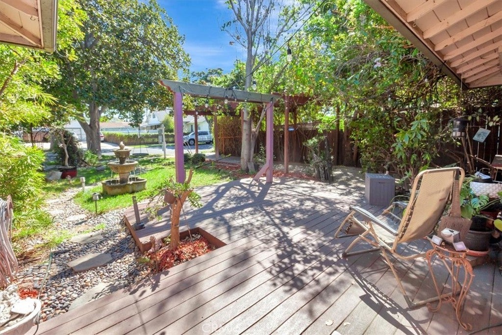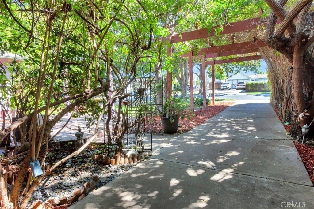Welcome home to your own private oasis of tranquility in the historic neighborhood of Park Santiago! SINGLE STORY! Situated on a huge 8360 SF lot, this home has 3 bedrooms and 2 baths in 1615 SF of living space. Artistic and original, experience the vintage vibes as soon as you enter the property! Curated with bubbling fountains, artwork, mature trees that provide shade, fruit and flowers, there’s so much to enjoy in the abundant outdoor patio spaces and deck, offering peaceful and private spots to read, relax, entertain or just watch nature in your own slice of paradise. There’s plenty of parking and ample space to entertain in this well-planned landscape. This home welcomes you inside with abundant natural light, gorgeous original hardwood floors, custom plaster wall finishes, and many vintage details, along with views of the fully landscaped garden from every room. The living and dining room offer an elegant space to entertain and include a wood burning fireplace and built in cabinetry. A flexible space located adjacent to the living room offers many options for use including a TV/Den, Office, Study or Craft Area. The kitchen and adjacent breakfast nook retain their original cabinetry and tile, adding a charming and cozy spot to cook and enjoy meals. The conveniently located rear “mud room” leads to the back yard and is outfitted with an extra deep set-tub style sink, washer and dryer space and storage cabinets. Two secondary bedrooms share a full bath, and offer plentiful storage in their original built-in closets. The primary suite is a true sanctuary with an attached bath, built in closets and beautiful views to the outdoors without sacrificing privacy. A private door leads outside to the covered patio and easy access to an authentic cedar hot tub located in a quiet private area of the back yard. Centrally located in one of Orange County’s most desirable communities, residents in historic Park Santiago enjoy a robust community spirit and is famous for its festive celebrations. Newly renovated 35-acre Santiago Park is walking distance and offers abundant outdoor activities and nearby downtown Santa Ana and Olde Towne Orange are close-by. Notable schools nearby include Orange County School of the Arts and Mater Dei. Transportation corridors also make this home convenient for travel outside of Orange County. Come see for yourself and be captivated by the magic of this special property, it is sure to please and won’t last long!