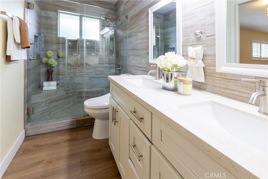 Located in the highly sought-after Walnut School District, this beautifully remodeled home offers some of the best views on the block. Thoughtfully designed for both comfortable living and entertaining, it features a spacious primary suite created by combining two bedrooms, with French doors opening to stunning views and a refreshing breeze. The home also includes fully paid-off solar panels for added value and efficiency. Upgrades include quartz countertops, stainless steel appliances, waterproof AquaGuard laminate flooring, updated bathrooms, recessed lighting, designer fixtures, and fresh interior and exterior paint. The generous front and backyard spaces provide beautiful views and room to relax or entertain. With central A/C, heating, and a security system, this home offers both style and peace of mind in a prime location. A must see!