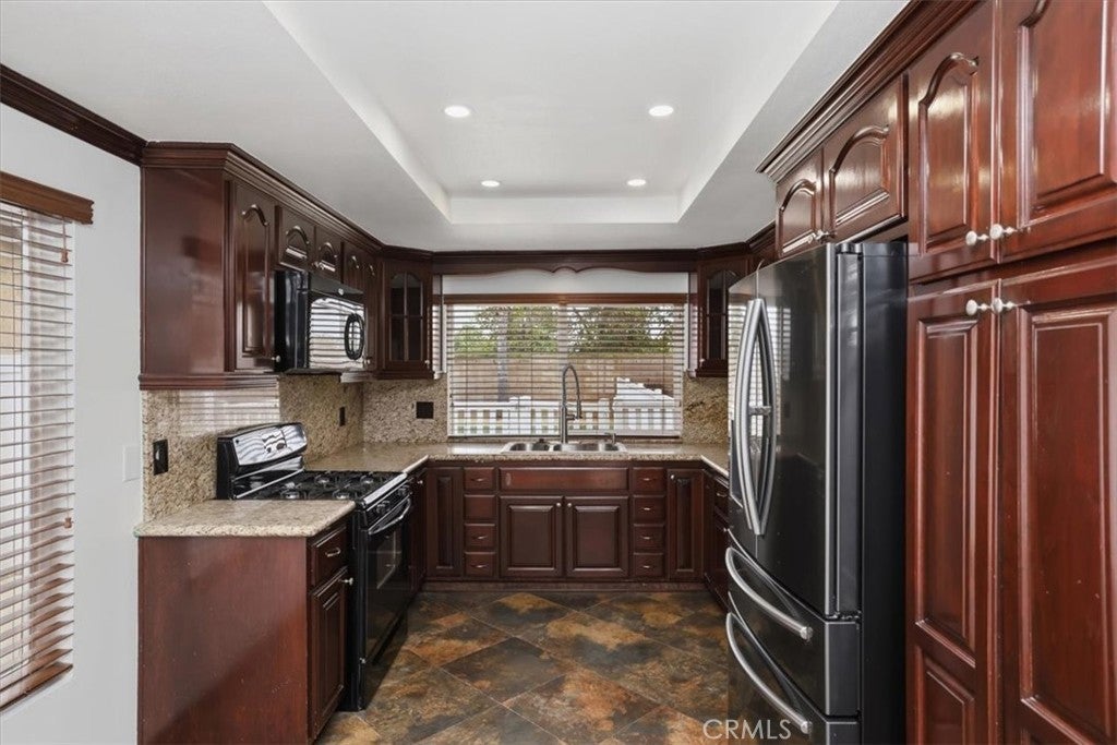Beautifully updated and thoughtfully designed, this spacious 4-bedroom, 3-bathroom home offers a versatile and functional floor plan in a highly desirable location. Featuring a rare downstairs bedroom and full bathroom, it’s ideal for guests, multigenerational living, or a private home office setup. Upon entry, you’re welcomed by soaring vaulted ceilings and an abundance of natural light flowing through the formal living and dining areas, complemented by fresh interior paint and newer flooring throughout both the main level and upstairs. The layout seamlessly connects to the inviting family room, creating a comfortable space for everyday living and entertaining. The kitchen is both functional and stylish, featuring granite countertops, stainless steel appliances, rich cabinetry, ample storage, and generous counter space, all positioned to overlook the main living areas and backyard, making it perfect for both daily living and hosting. Upstairs, the primary suite offers a relaxing retreat with a walk-in closet and a beautifully updated bathroom complete with newer tile work, quartz countertops, upgraded fixtures, and modern finishes. Secondary bathrooms have also been tastefully updated with refreshed vanities, tile showers, and contemporary details, providing a cohesive feel throughout the home. Additional improvements include dual-pane windows throughout and an updated air conditioning system, enhancing comfort, efficiency, and year-round livability. Step outside to a spacious backyard designed for year-round enjoyment, featuring a custom covered patio with recessed lighting and an exterior ceiling fan—perfect for entertaining, dining, or relaxing. The yard offers plenty of room for gatherings, play, pets, or future customization such as a pool, garden, or outdoor kitchen. The three-car garage has been upgraded with fresh paint and a durable epoxy floor, offering a clean, finished space ideal for parking, storage, hobbies, or a home gym, along with an extended driveway providing additional parking and convenience. Conveniently located near Indian Hills Golf Course, parks, shopping centers, dining, and local schools, this move-in ready home combines space, thoughtful upgrades, functionality, and an excellent location into one exceptional opportunity you won’t want to miss.