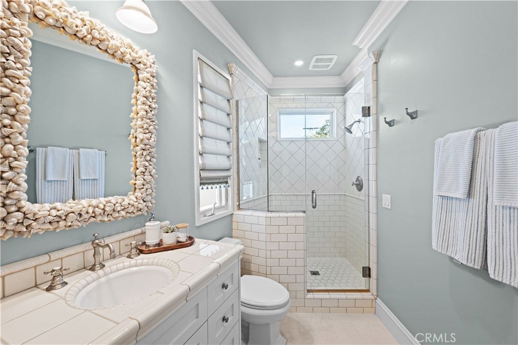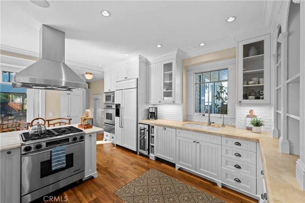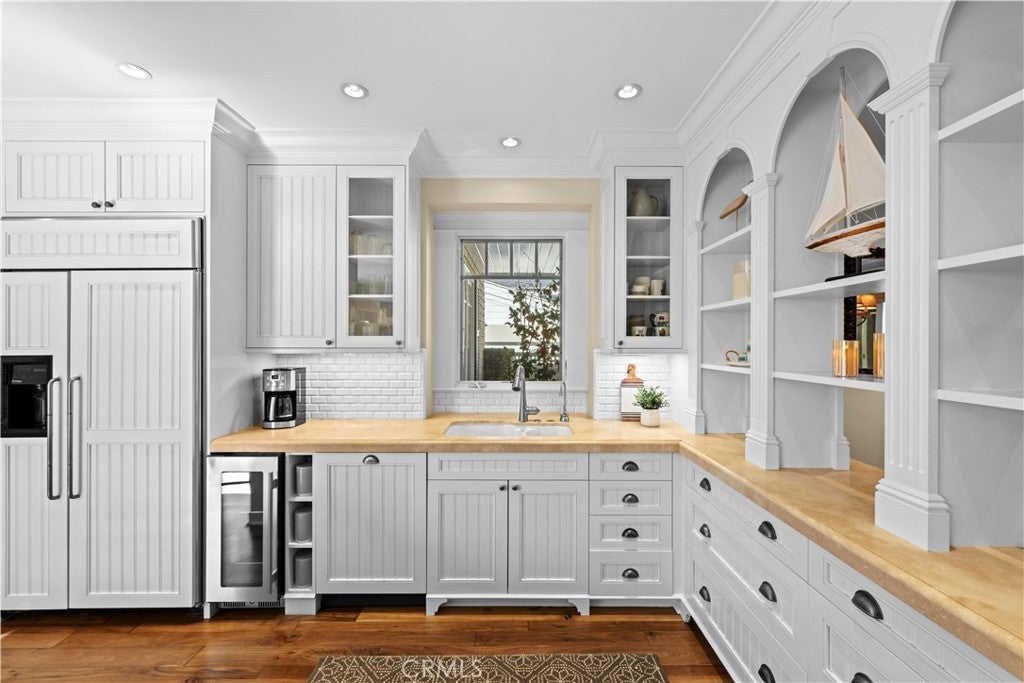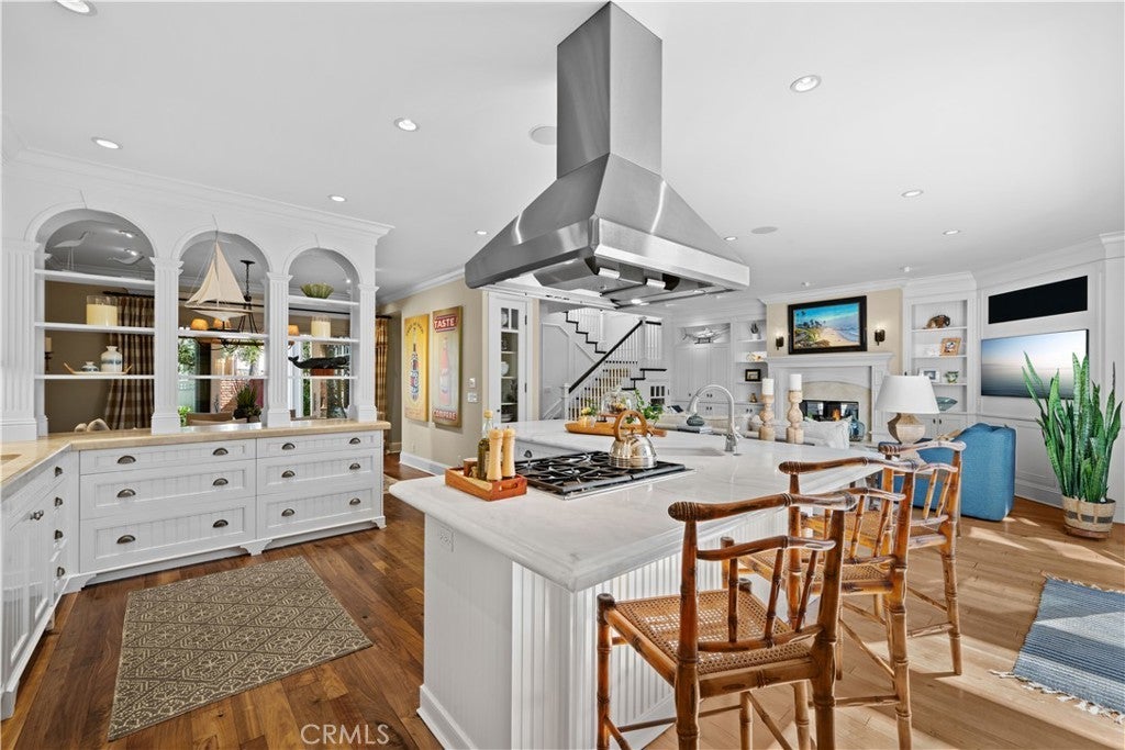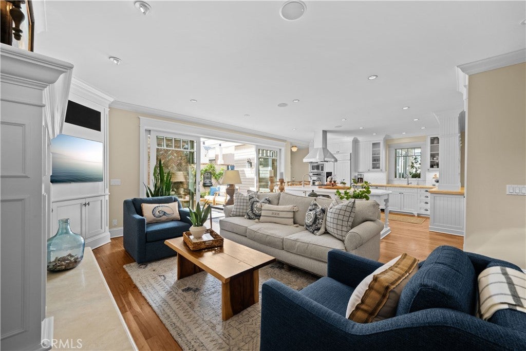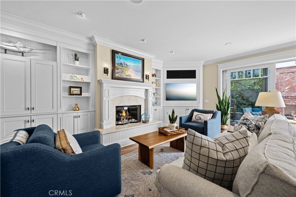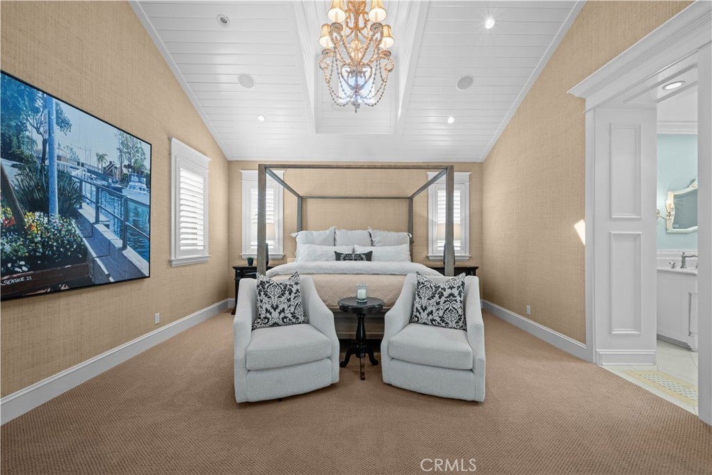 Extraordinary secluded residence completely rebuilt in 2008 by elite builder Craig Pettigrew, this stunning 3 bedroom / 4 bath Coastal Contemporary Cape Cod home is situated on the prestigious Treasure Island on an oversized corner lot. The home was further extensively upgraded over the past two years through the installation of a new Da Vinci slate roof with copper trim and downspouts, along with new custom window casings, trim, moldings and cedar siding – all adding to the alluring curb appeal. On the interior of the home, the current owners also added new grass cloth wallcoverings and updated the two guest bedrooms and various light fixtures. The enchanting, private back terrace features a magnificent brick fireplace, outdoor Viking BBQ and plenty of room to entertain year-round! A gated courtyard and charming porch lead to a lead-glass front door opening into a spectacular living room highlighted by vaulted ceilings, an abundance of windows and sumptuous wood floors. The adjacent great room features a warm and inviting family room with a focal point fireplace flanked by beautiful built-ins and a subterranean level wine and spirits cellar, a formal dining area with custom shelving and sliding door access to the courtyard, and a fabulous chef’s kitchen with professional appliances, Carrara marble and travertine counters and custom cabinetry. The home is set up with a surround sound system inside and outside with separate sound controls in each room for seamless music entertainment. The upper level features a serene primary bedroom retreat with fireplace surrounded with custom built-ins, vaulted ceilings, chandeliers, walk-in closet and spa-like bathroom. The two additional bedrooms are both ensuite with each of their own full baths, and an adjacent hang-out space with desk area and custom built-ins (plenty of storage) with a peek-a-boo view of the canals from the balcony. The residence is of unparalleled quality and craftsmanship with extensive custom wood panels, crown moldings and shutters throughout. The home is perfectly located between romantic Naples Canal and picturesque Alamitos Bay, and just a short distance to unique dining, world class shopping and nightlife! Enjoy the Indoor/Outdoor Lifestyle of Naples Islands and Treasure Island.