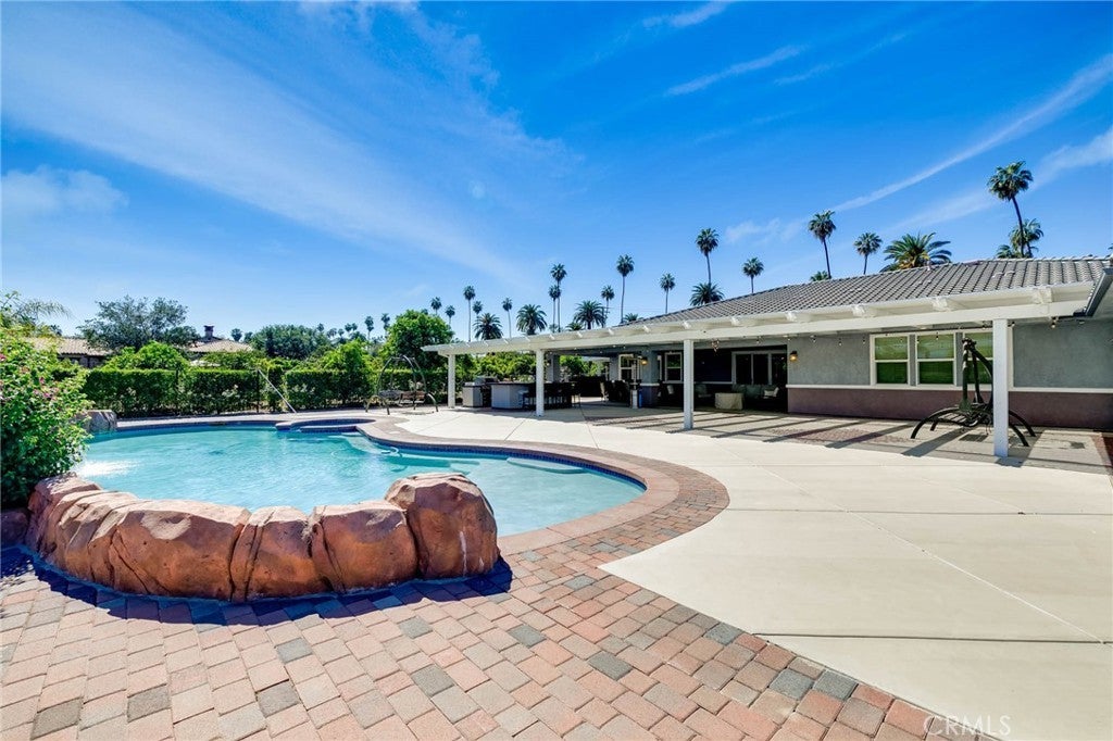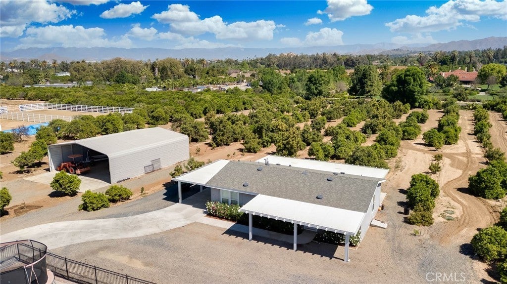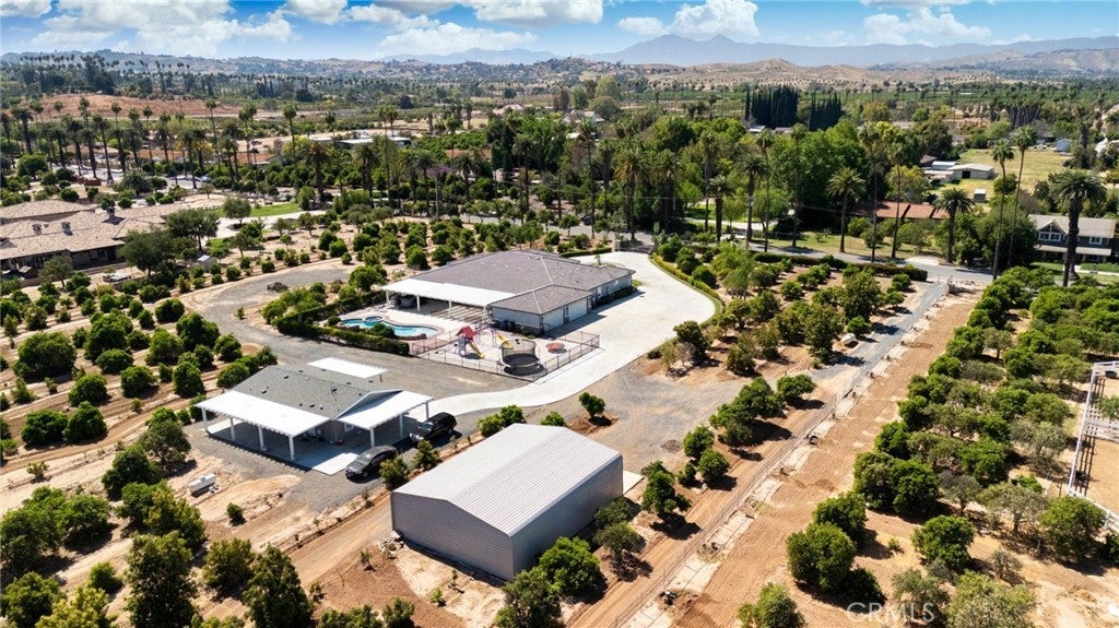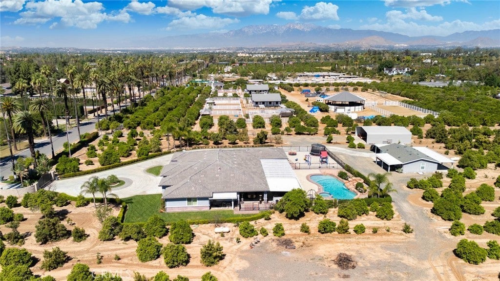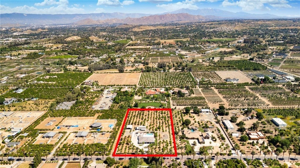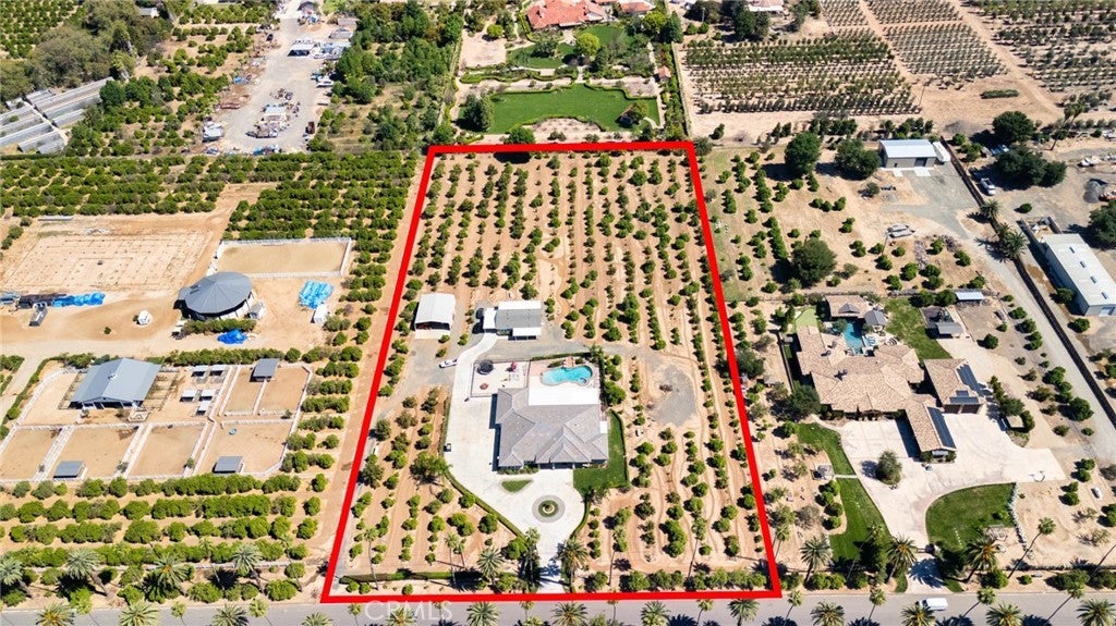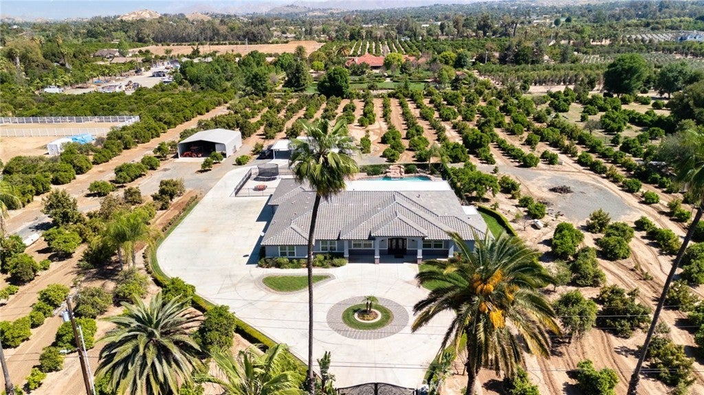 Two visionary dreams came to fruition in 2016. The first being that the owner wanted to purchase this private property. The second was to build a grand estate on this property for his family. This labor of love is nestled in the serene, sought after neighborhood of Arlington Heights in Riverside County. This expansive single story, 4500 square foot beauty sits proudly on 5 acres of land. Land that is shared with over 500 thriving naval orange and avocado trees! As you arrive you will be greeted by a long- gated driveway that leads to the main entrance. Large wrought iron double doors invite you in. Inside, high ceilings, luxury vinyl plank flooring and natural light create an open, airy atmosphere throughout. The expansive great room serves as the heart of the home; the living room boasts entertaining space with fireplace and the formal dining area is perfect for gatherings. Your eyes will travel to the impressive chef's kitchen that is fully equipped with top tier Viking and Subzero appliances. There is custom cabinetry, walk in pantry and large windows that provide endless views of the orange grove and grounds. The home offers 4 generously sized bedrooms, each with its own private full bathrooms providing ultimate comfort and privacy. There is an office with custom cabinetry and glass double doors. Additional conveniences include dedicated laundry room, multiple storage closets and a half bathroom thoughtfully located in the attached 4 car garage-perfect for pool parties, outdoor gatherings and guests. Sliding doors open to your private 5-acre paradise and your nose is tickled by the scent of sweet orange blossoms. The expansive outdoor covered patio features a lounging area, built-in BBQ island grill and refrigeration unit. Children will be thrilled to find their own private enclosed playground and sandbox off to the side. For resort like luxury there is a refreshing pool with waterfall perfect for those scorching California summers!For perhaps extended family, guests or tenants there is a 1200 square foot ADU (Accessory Dwelling Unit) complete with 2 bedrooms, 2 bathrooms and laundry room. A 3000 square foot shed is also located on the property. It is the perfect size for large recreational equipment and vehicles. This palatial property is truly a rare find and delivers the ultimate California dream. It’s ready for your family to call home.