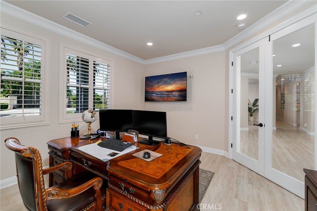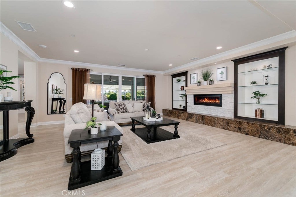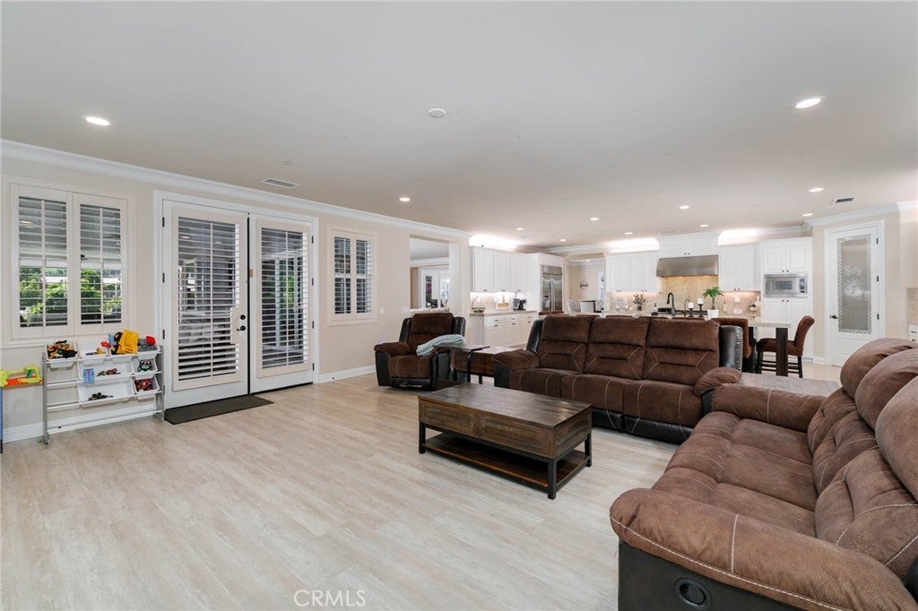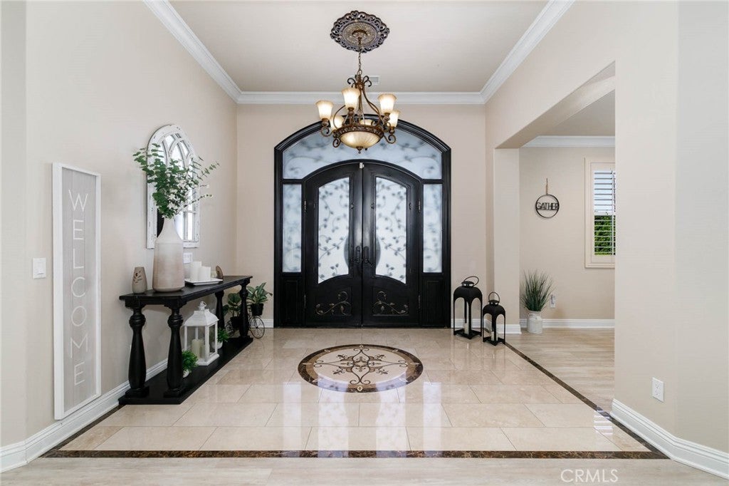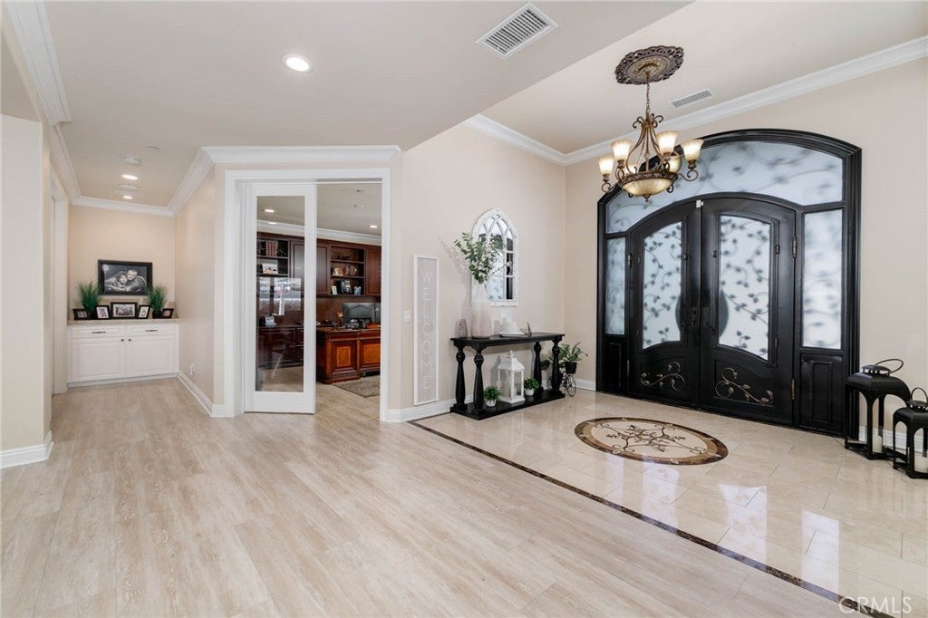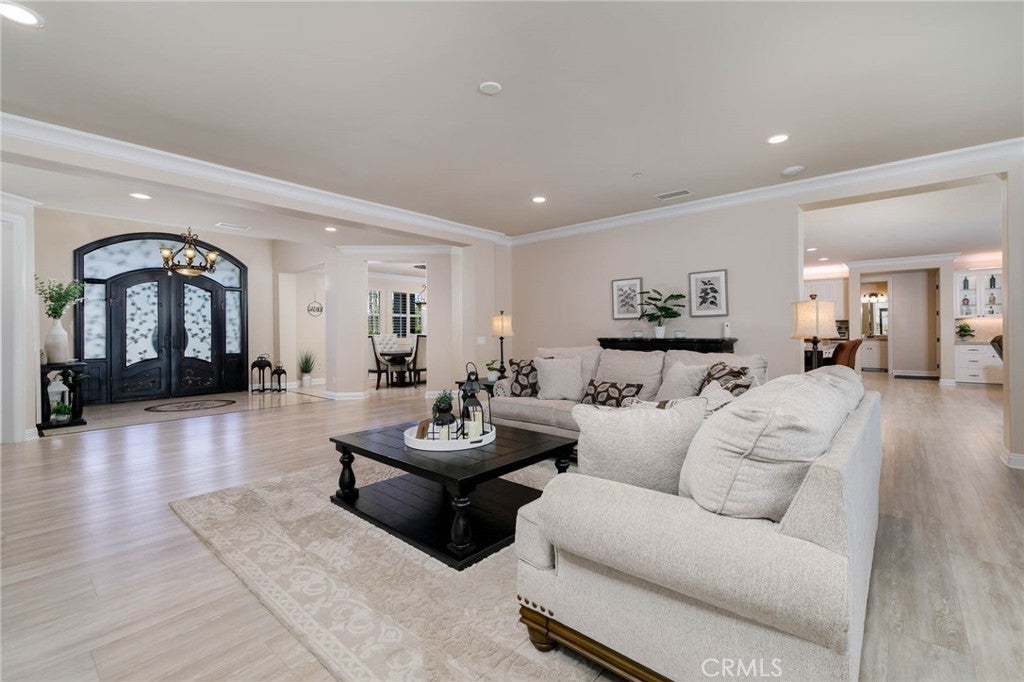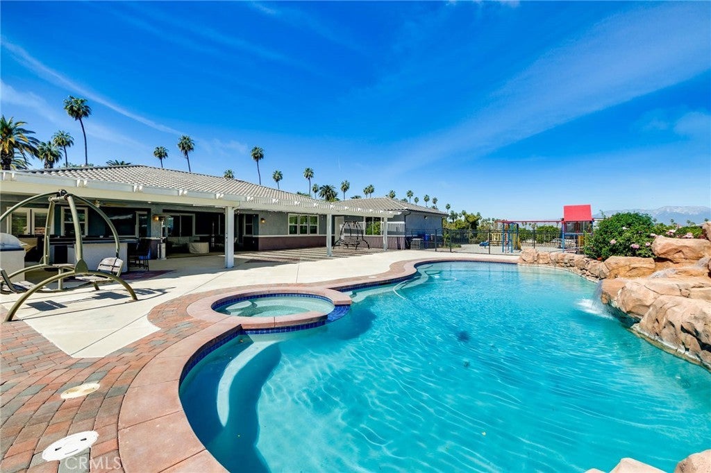 Two visionary dreams came to fruition in 2016. The first being that the owner wanted to purchase this private property. The second was to build a grand estate on this property for his family. This labor of love is nestled in the serene, sought after neighborhood of Arlington Heights in Riverside County. This expansive single story, 4500 square foot beauty sits proudly on 5 acres of land. Land that is shared with over 500 thriving naval orange and avocado trees! As you arrive you will be greeted by a long- gated driveway that leads to the main entrance. Large wrought iron double doors invite you in. Inside, high ceilings, luxury vinyl plank flooring and natural light create an open, airy atmosphere throughout. The expansive great room serves as the heart of the home; the living room boasts entertaining space with fireplace and the formal dining area is perfect for gatherings. Your eyes will travel to the impressive chef's kitchen that is fully equipped with top tier Viking and Subzero appliances. There is custom cabinetry, walk in pantry and large windows that provide endless views of the orange grove and grounds. The home offers 4 generously sized bedrooms, each with its own private full bathrooms providing ultimate comfort and privacy. There is an office with custom cabinetry and glass double doors. Additional conveniences include dedicated laundry room, multiple storage closets and a half bathroom thoughtfully located in the attached 4 car garage-perfect for pool parties, outdoor gatherings and guests. Sliding doors open to your private 5-acre paradise and your nose is tickled by the scent of sweet orange blossoms. The expansive outdoor covered patio features a lounging area, built-in BBQ island grill and refrigeration unit. Children will be thrilled to find their own private enclosed playground and sandbox off to the side. For resort like luxury there is a refreshing pool with waterfall perfect for those scorching California summers!For perhaps extended family, guests or tenants there is a 1200 square foot ADU (Accessory Dwelling Unit) complete with 2 bedrooms, 2 bathrooms and laundry room. A 3000 square foot shed is also located on the property. It is the perfect size for large recreational equipment and vehicles. This palatial property is truly a rare find and delivers the ultimate California dream. It’s ready for your family to call home.