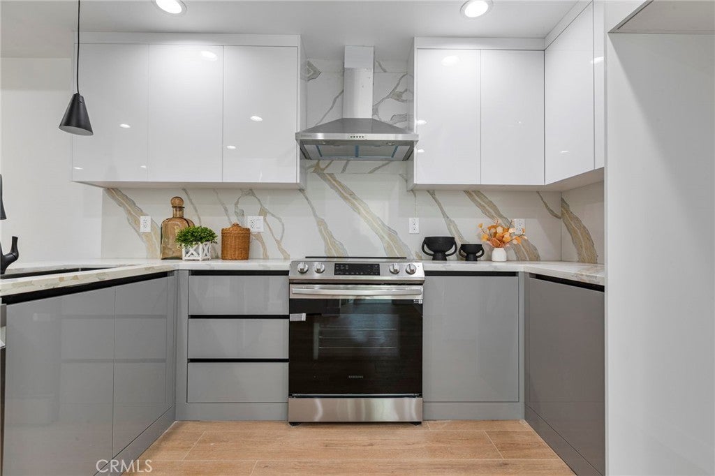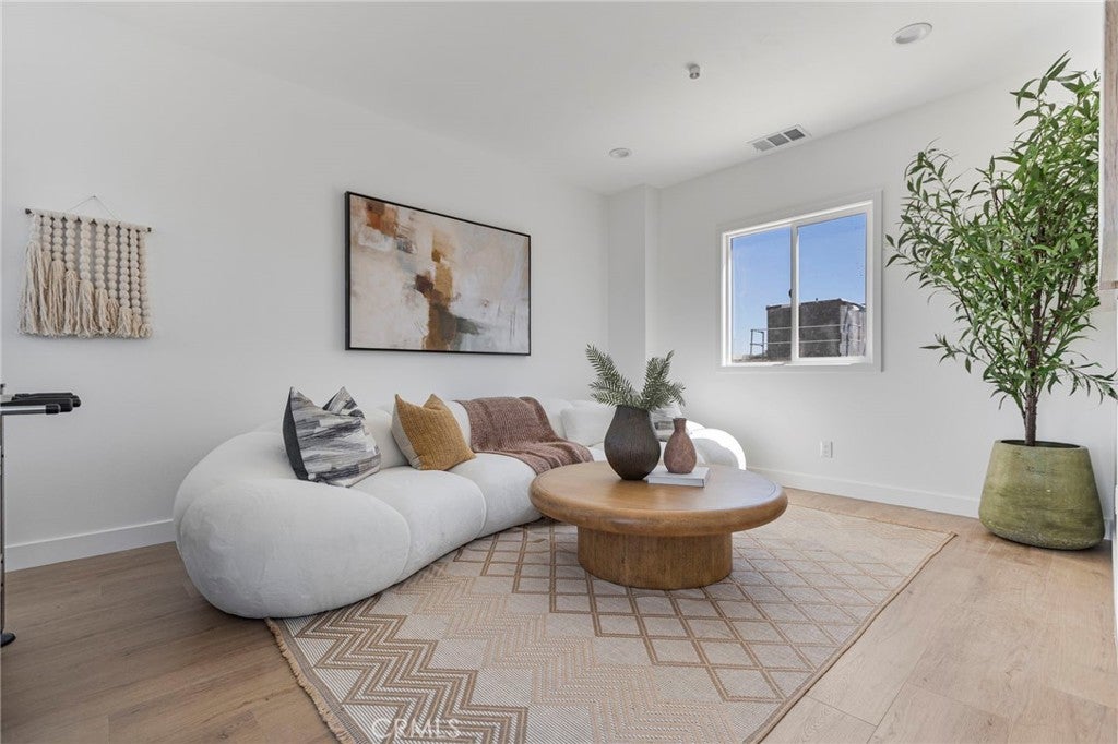 NEW CONSTRUCTION 3 bed, 2.5 bath, three-story townhome with sky deck at the GATED community, "Welkin 223". Gourmet kitchen with energy-efficient stainless steel electric range with hood + dishwasher, and designer cabinets. Upgraded laminate flooring throughout the home. Large primary suite with walk-in closet, balcony, and ensuite bathroom featuring an oversized glass shower and stand-alone tub. Welkin 223 is conveniently located near the 110 and 405 Freeways, providing quick access to neighboring cities, major employment centers, the beach, and beyond. The home is currently under construction and is expected to be complete in May 2026. Photos are of the model home, not that actual home being sold.