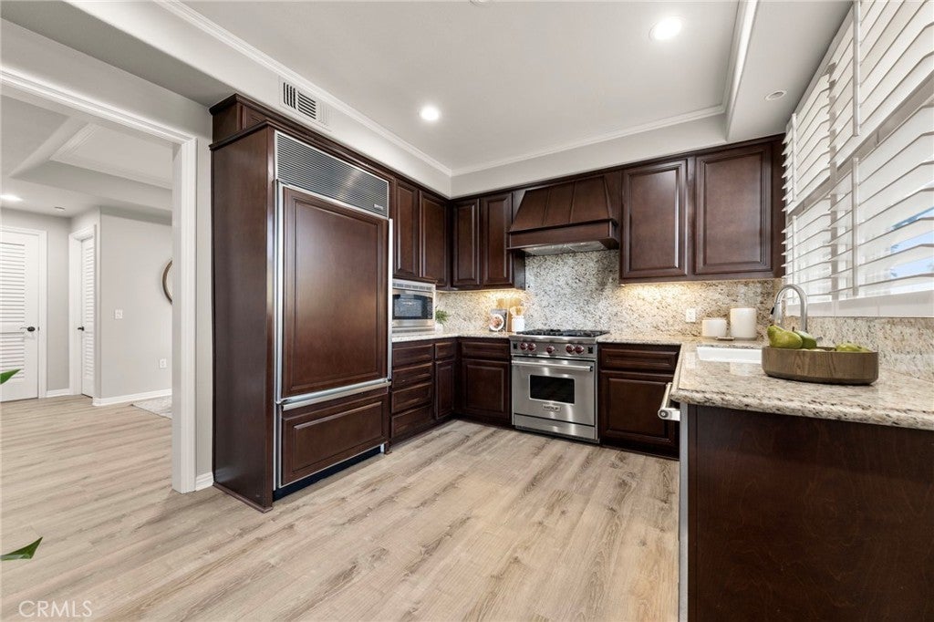 Welcome to Luxury Living in Costa Mesa! Step inside this beautifully remodeled 2-bedroom, 2.5-bathroom condo with a versatile loft, offering 1,755 sq ft of stylish living space. Walking in, you’re greeted by a spacious living room that flows seamlessly to a private balcony—perfect for relaxing or entertaining. The updated kitchen features built-in upgrades, including a Sub-Zero refrigerator, and opens to the dining area with high ceilings and a second balcony that brings in an abundance of natural light. Downstairs, discover a flexible loft area ideal for a home office, gym, or second living space. The generous guest bedroom includes mirrored closet doors, while the primary suite features dual closets—one walk-in and one standard—along with a spa-like bathroom offering dual sinks, a soaking tub, stand-up shower, and private toilet room. This move-in ready home includes brand-new laminate flooring, fresh paint, a new water heater, and an updated HVAC system for year-round comfort. Additional highlights include a 2-car garage and a secure, well-maintained community. Enjoy resort-style amenities including a pool and beautifully landscaped grounds—all just minutes from Triangle Square, Newport Beach, shopping, dining, entertainment, and most importantly—the beach! Don’t miss your chance to make this stunning Costa Mesa condo your own!