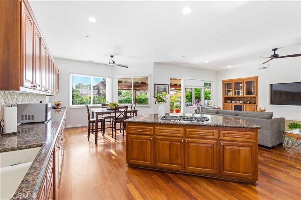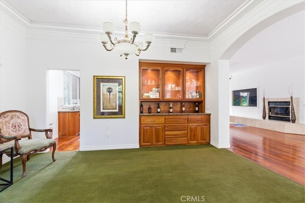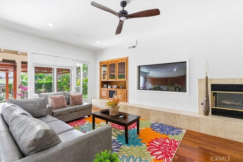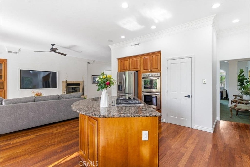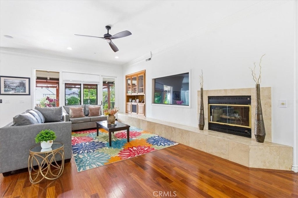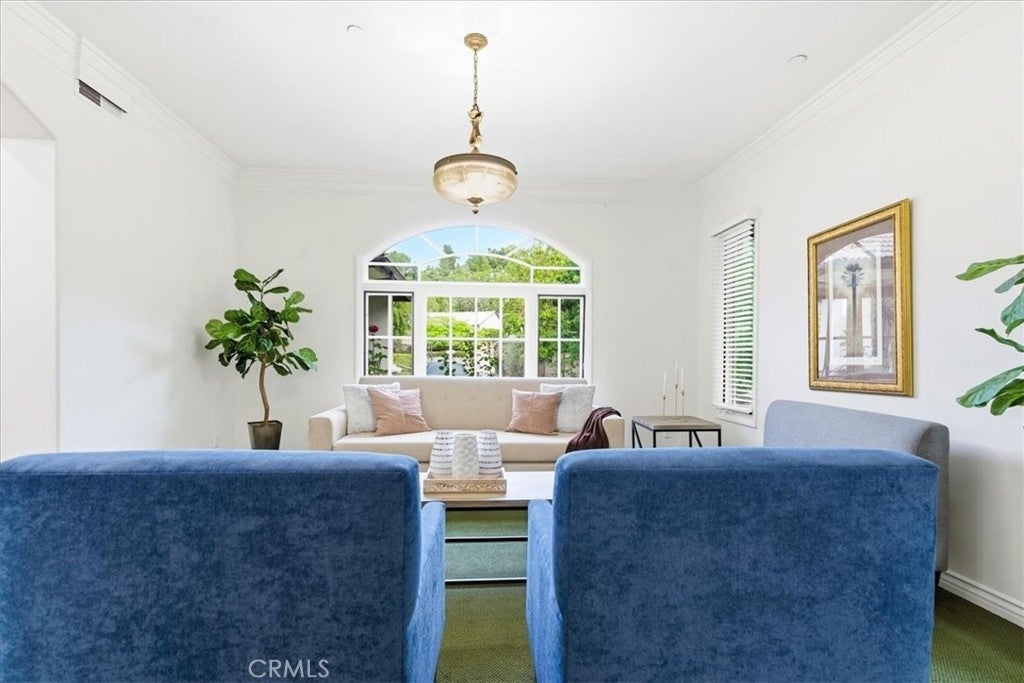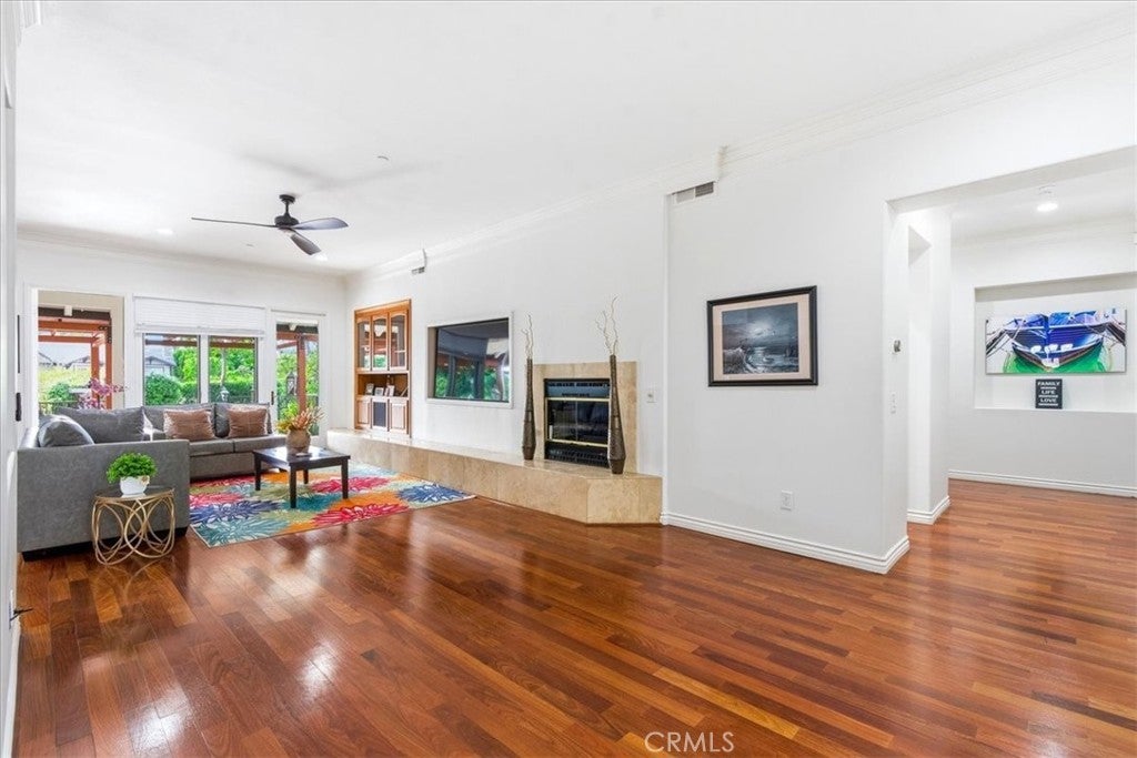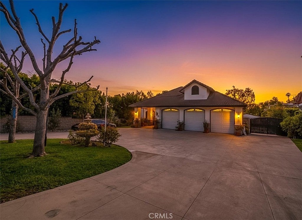 Welcome to 12831 Fairhaven Extension, a single-story home in the North Tustin area featuring a detached casita/ADU and extensive parking. Double-gated entry opens to a circular driveway with two RV parking areas, a three-car garage, and parking for up to nine vehicles. The main residence offers 4 bedrooms and 3.5 bathrooms with a functional layout including formal living and dining rooms and a spacious family room connected to the kitchen. The primary bedroom includes access to a private patio. Interior features include high ceilings, crown molding, marble countertops, hardwood flooring, and a fireplace. A detached 1-bedroom, 1-bath casita/ADU provides additional flexible living space for guests, extended living arrangements, or a home office. The backyard includes a covered patio, grassy yard, landscaped garden areas, and mature fruit trees. Nearby outdoor recreation includes Irvine Regional Park and Peters Canyon Regional Park.